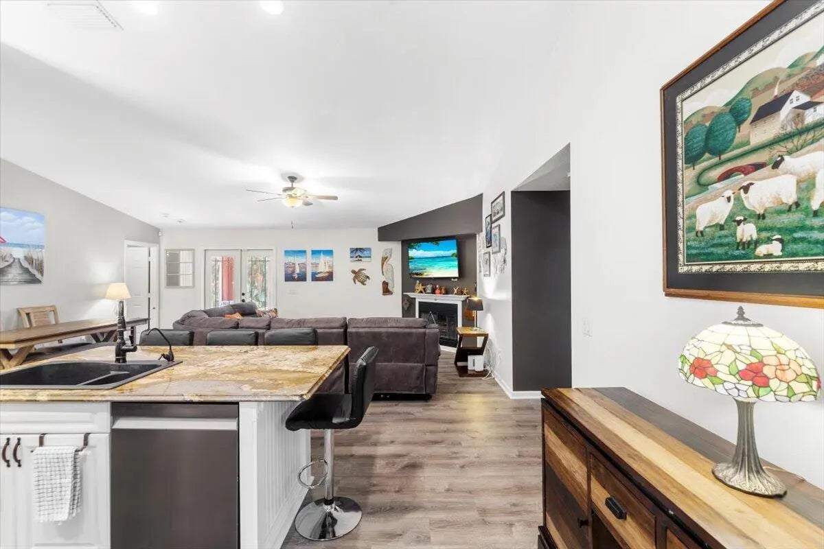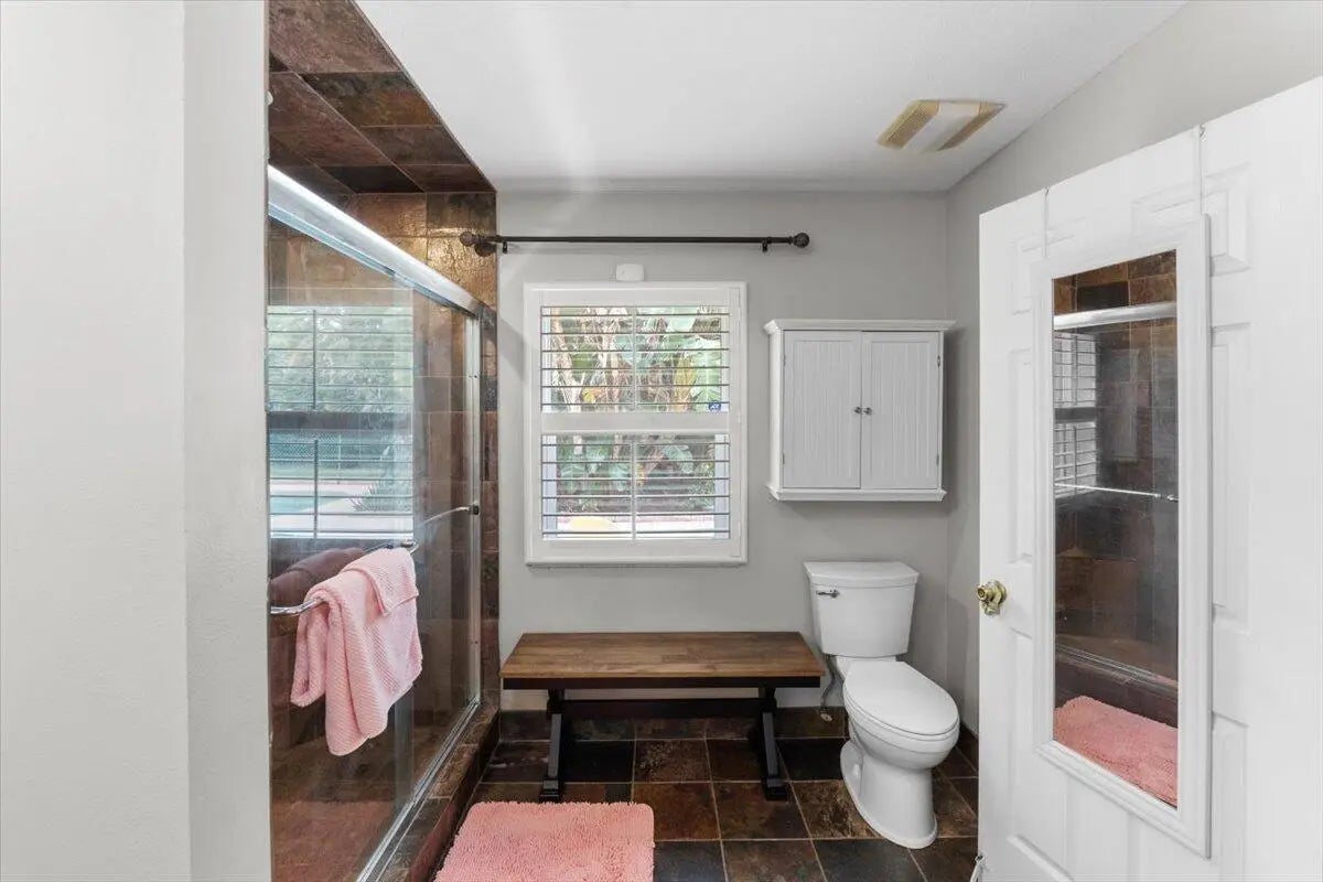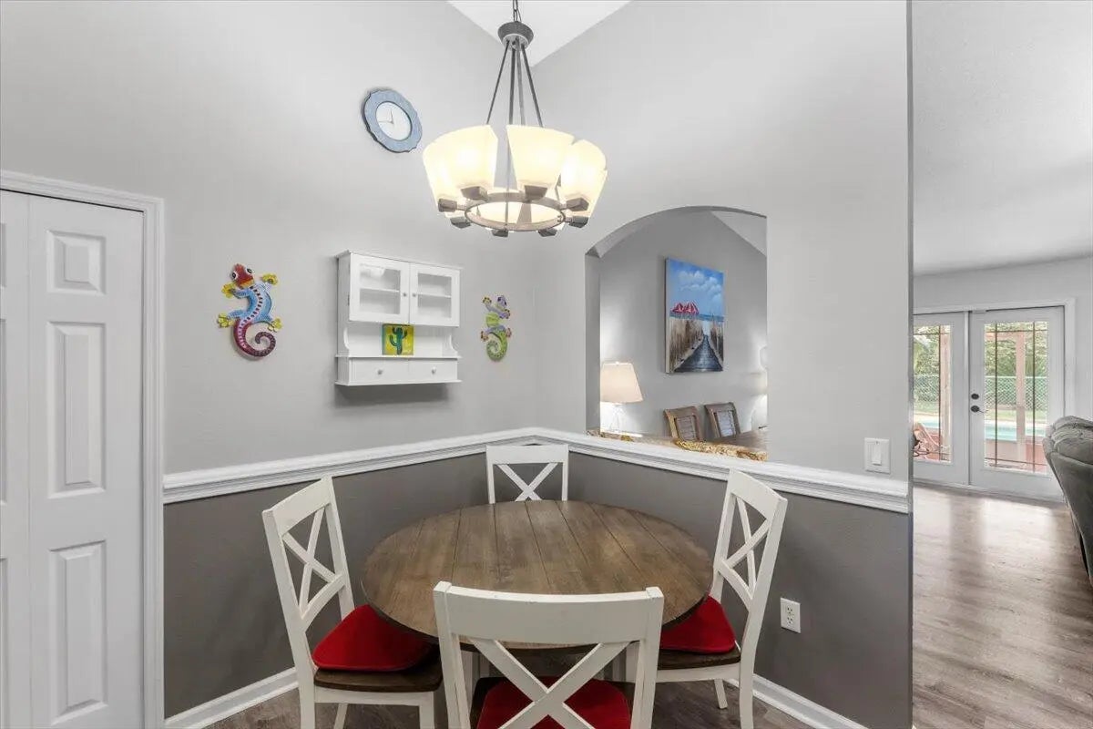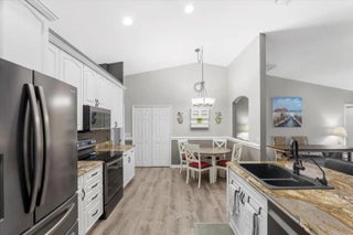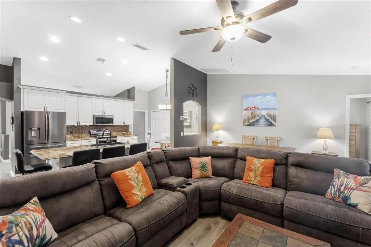 SELLER MOTIVATED- Seller is offering a $5,000 concession to buyer towards buyers closing costs, prepaids and rate buy down Beautiful three bedrooms, two baths CBS split floor plan POOL home in desirable Oak Hammock. Quiet neighborhood situated on .34 acres with mature, lush landscaping. Private fenced-in backyard. Spacious screened-in lanai with elegant French doors installed in 2019. New roof July, 2024! Large shed for storing tools or can be renovated into a mancave or she shed with minimal effort. Concrete saltwater separately fenced-in pool is lovingly maintained with brand new brickwork all around. Solar heating for the pool makes swimming a reality all year round. Comes with new robo pool cleaner. No HOA! Vinyl flooring installed 2018. Must see! White plantation shutters inthe master bathroom and bedroom and front rooms. Samsung appliancesBronze refrigerator, oven, dishwasher, microwave. Black large-capacity washer and dryer were bought in 2023. Master bedroom is larger than usual with a generous-sized bathroom and linen closet. Walk-in closet in the master. Other two bedrooms with ample closetspace are across the house with a bathroom and linen closet in betweencould be a separate suite! Each bedroom is a good size. Huge family roomeasily fits a large sectionalwith a fireplace and mantel to place your family treasures. Perfect space against the wall for a dining room table or even a grand piano!Kitchen has white cabinets and granite counters. Large island to have intimate breakfasts under a vaulted ceiling. Plenty of room for a small table and four chairs too. Large pantry and lots of cabinet space.Dining room and living room in the front of the house are very versatile; can be used as an office, gaming room, or even for guests. Two-car garage has rubberized flooring and air conditioning. Driveway easily fits four cars/vehicles. Private septic system has been serviced yearly, pumped and cleaned regularly as well as consistent enzyme additives used. Must see to truly appreciate ; beautiful home to live in!