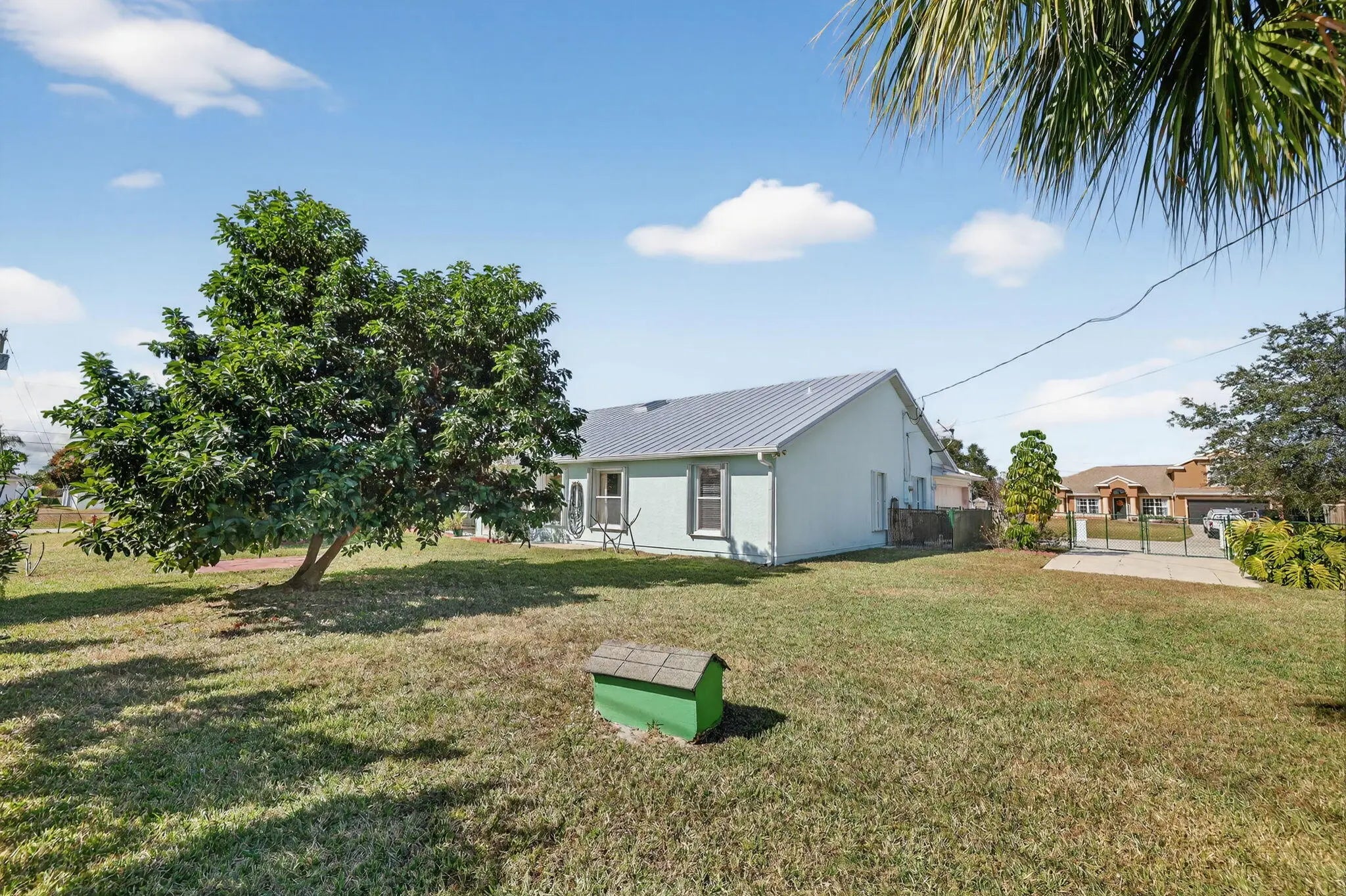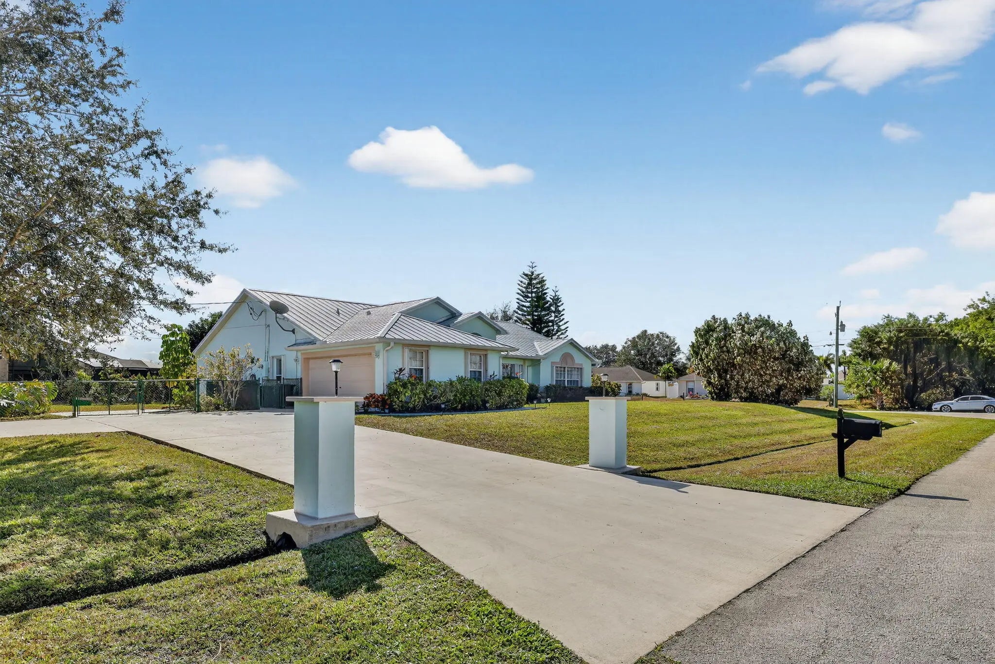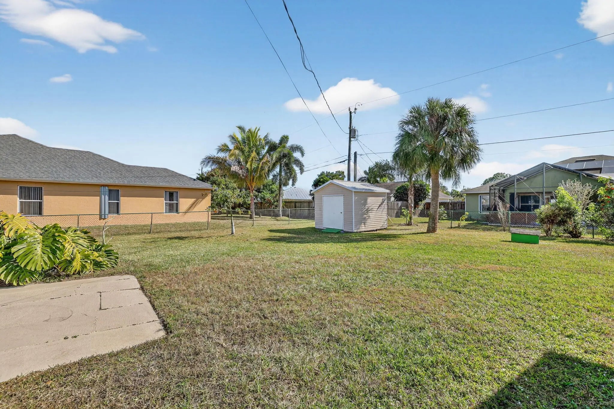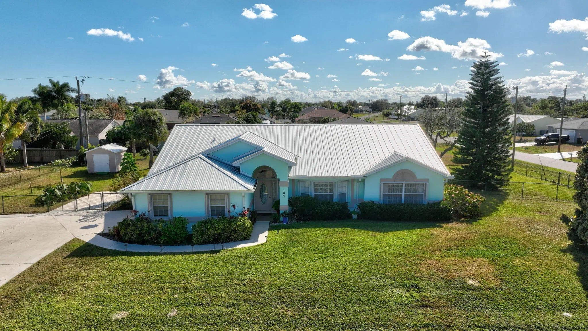Situated on an oversized DOUBLE ½-acre corner lot in Port St. Lucie, this beautifully maintained 3-bedroom, 2-bath, 2-car garage home offers the space, privacy, and flexibility today's buyers are searching for. With 2,090 sq ft of living, the open-concept floor plan features expansive living areas, formal living & dining rooms, and a spacious family room that flows seamlessly into the heart of the home -- a light-filled kitchen overlooking the main gathering spaces and out to the 300-sq-ft screened lanai, perfect for indoor-outdoor Florida living, morning coffee, or evening entertaining. Step outside to your tropical, fully fenced backyard oasis with ample room for a custom pool, detached garage, guest house, or workshop -- a rare find with this much land and corner-lot access. Bring all the toys! There's dedicated RV & boat parking plus a storage shed. Enjoy true peace of mind with major upgrades already completed: New metal roof (2022), Water heater (2020), Accordion shutters for full storm protection. Located just minutes from Tradition Square's shopping, dining, and events, Cleveland Clinic Tradition Hospital, and with quick access to I-95 & Florida's Turnpike, this home combines estate-style space with everyday convenience. No HOA. Room to grow. Room to play. Room for your Florida dream lifestyle.