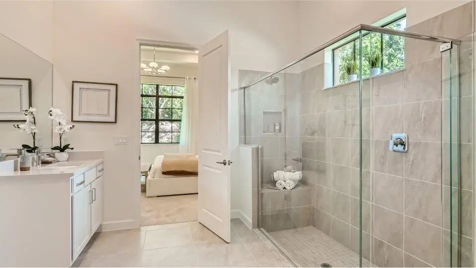 Upon entry, this single story home has a seamless open-concept layout is situated among the kitchen, dining room and living room, with a covered terrace. On the opposite side of the home, there are two secondary bedrooms split by a Jack-and-Jill style bathroom. In a private corner, the owner's suite provides a spa-style bathroom and walk-in closet.