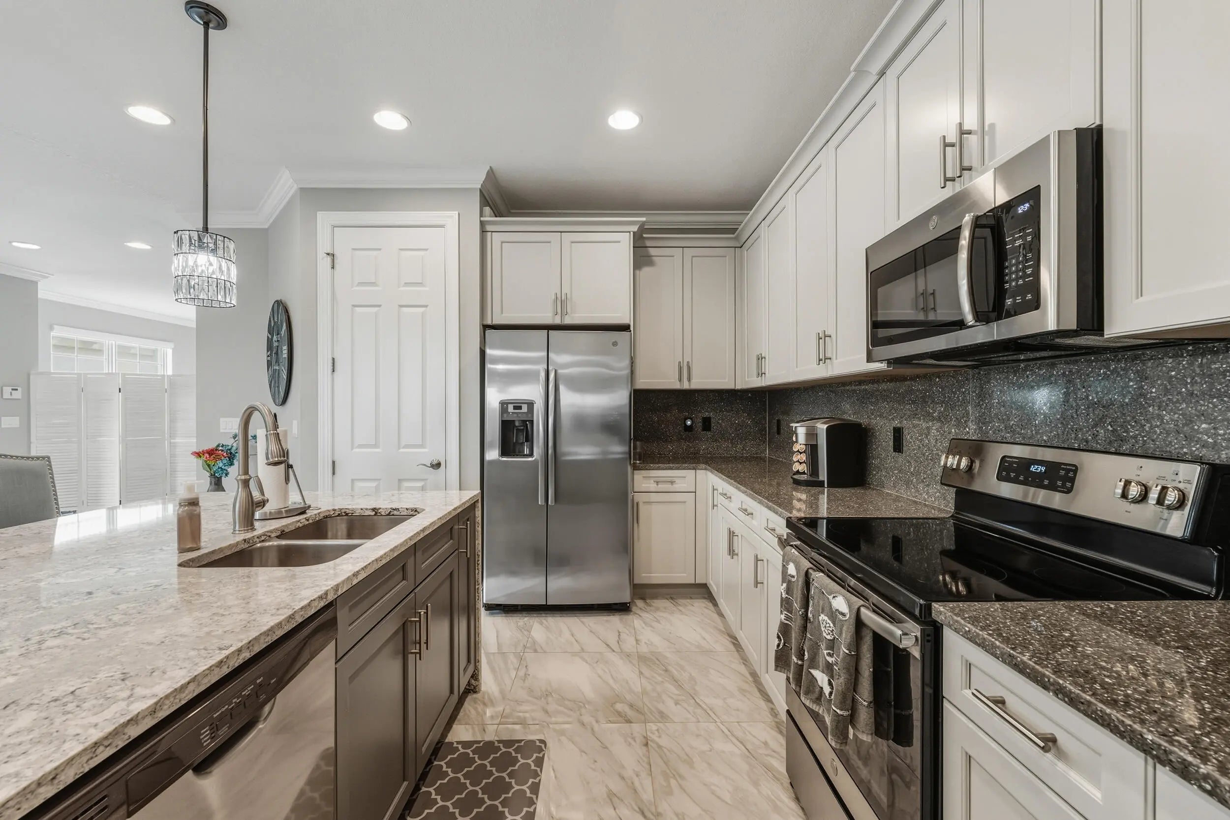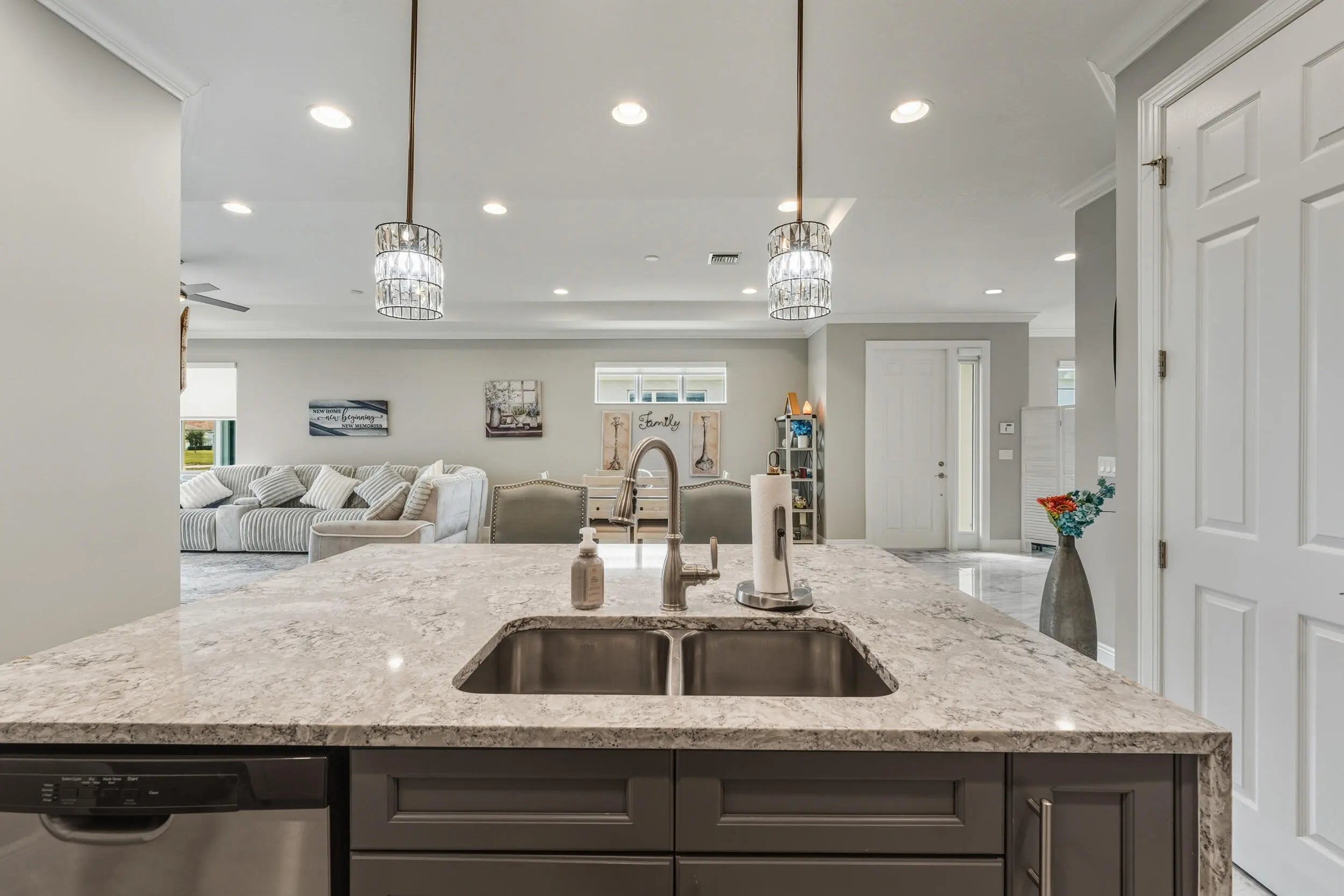 Here it is! This gorgeous completely upgraded waterfront 2 bed w/ DEN villa is stunning. The finishes are absolutely gorgeous and the extended patio is made for a morning beverage or a night cap. Some of the upgrades include the Quartz countertops with a waterfall edge and the two tone soft close cabinets are the perfect design choices. Cooking in this kitchen is really a place of happiness. The open concept floor plan has such a great feel with the primary suite situated in the back of home to overlook the water view. The primary bathroom is simply stunning with the tile details creating such a tranquil and spa moment. Impact glass throughout. The community has so much to offer including championship pickleball courts, indoor pool, resort pool, cabana seating, dog park, fitness & more!