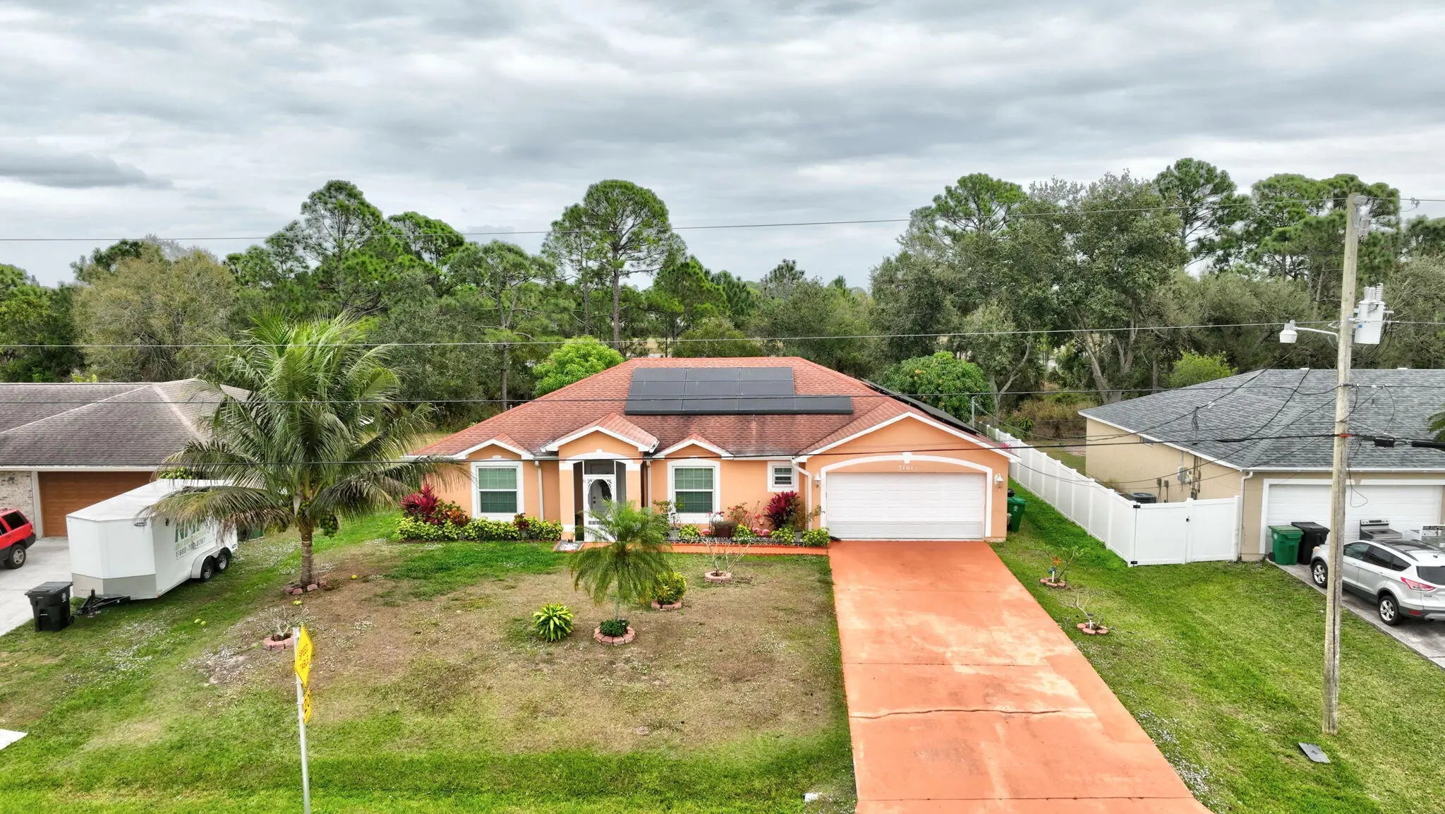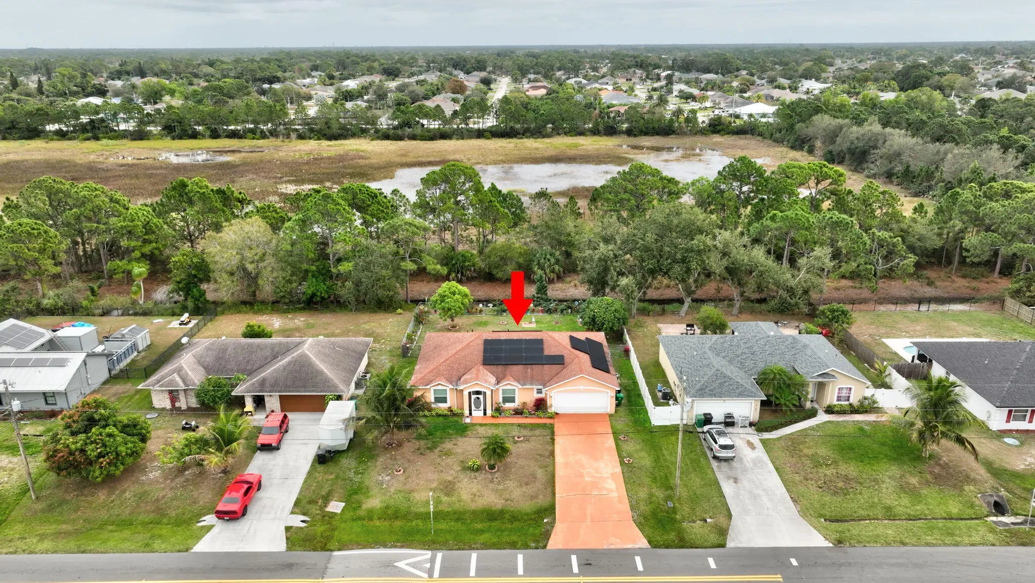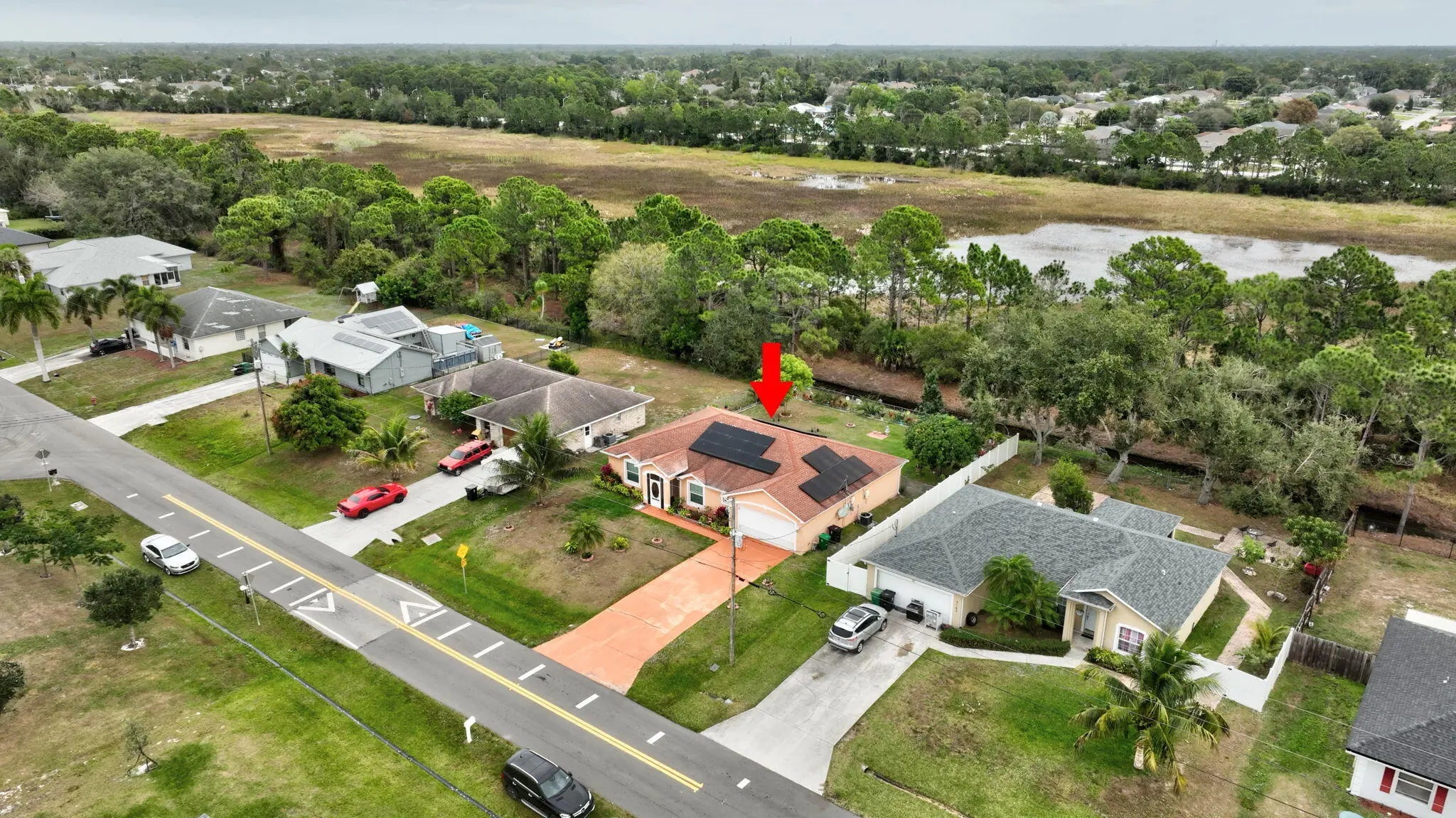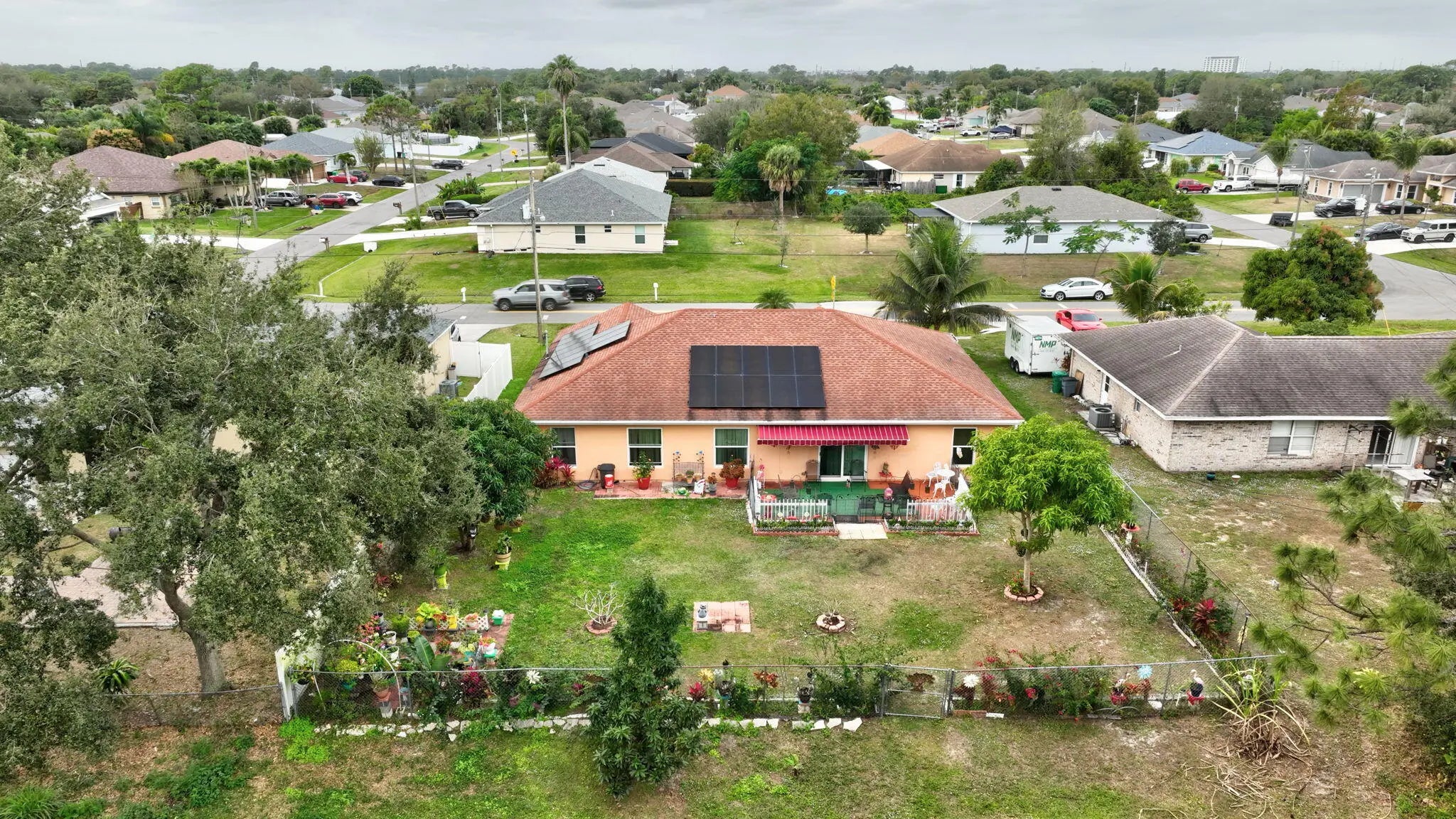 Wow, great location just off Gatlin/Rosser blvd near to Sam's Club; this 3/2/2 home shows pride of ownership, on a canal with a beautiful serene fenced back yard with Mangoes and Papaya trees. Roof replaced in 2020, solar panels installed 2024, hurricane impact glass windows, updated kitchen with granite counter tops, Stainless Steel appliances, New water heater and newer AC unit; upgraded bathroom, outside painted. Formal living and dining room. Large family room with eat in kitchen. Large back porch with awning, overlooking beautiful backyard.