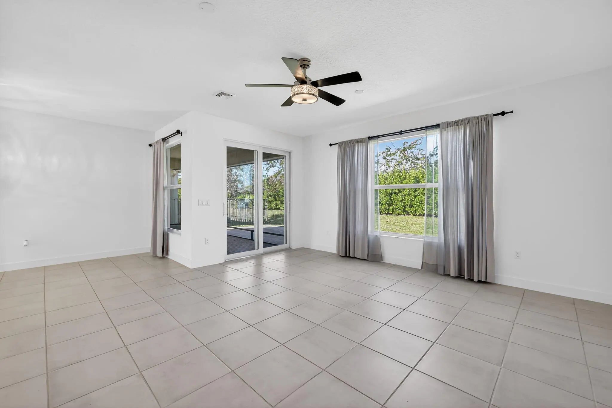 UNFURNISHED ANNUAL RENTAL in the highly sought-after 55+ community of Valencia Grove at Riverland in Port Saint Lucie. Welcome to this clean and well-maintained GL Homes Heron model - available now. Offering 1,716 square feet under air, this flexible 2-bedroom residence with a den/optional 3rd bedroom is perfectly designed for comfortable everyday living and entertaining. The open-concept layout features a spacious living area that flows seamlessly into the dining space and kitchen. The kitchen is well-appointed with granite countertops, stainless steel appliances, a gas range, and ample cabinetry, making it both functional and inviting. Additional gas utilities include a gas hot water heater and gas dryer, adding efficiency and convenience. Situated on an oversized corner lot, this home enjoys enhanced privacy and outdoor space. The expansive backyard is framed by a lush clusia privacy hedge and includes a screened patio, ideal for relaxing mornings, evening breezes, or entertaining friends outdoors. As a resident of Valencia Grove, you'll enjoy access to Riverland's award-winning lifestyle amenities, including a full-service restaurant with outside bar, resort-style pools, a state-of-the-art fitness center, pickleball and tennis courts, walking and biking trails, clubs, classes, and vibrant social activities. The community is ideally located just minutes from the Cleveland Clinic Hospital, Mets spring training, shopping, lots of local dining, and major roadwaysoffering both convenience and peace of mind. This home combines comfort, privacy, and an exceptional active-adult lifestyle in one of Port St. Lucie's premier 55+ communities.