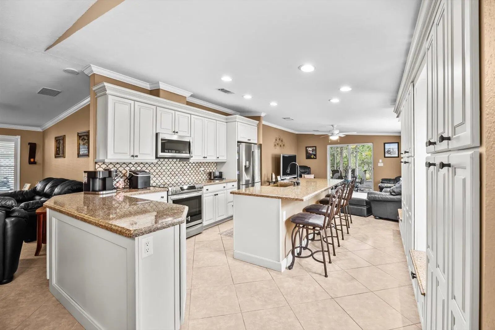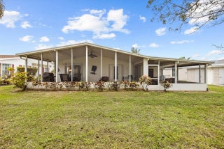 Welcome home to this beautifully maintained Presidents Choice model with 1,700 SF of living with 3BR's, 2BA's and situated on the Savannah's Preserve. This split-plan home features an updated kitchen with quartz, soft close doors and drawers, Samsung SS chef collection appliances, tankless HWH, tiled floors, irrigation well, panel shutters and interior planation shutters. The expansive 47' screened lanai provides the perfect setting to relax and enjoy serene preserve views and abundant wildlife. Located just minutes from two clubhouses, a 10,000 SF theater, recreation center, three pools, on-site restaurant, and an array of activities surrounded by Florida sunshine and a fun lifestyle. All measurements approximate, buyer to verify. Land Lease Property.