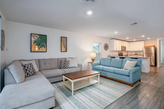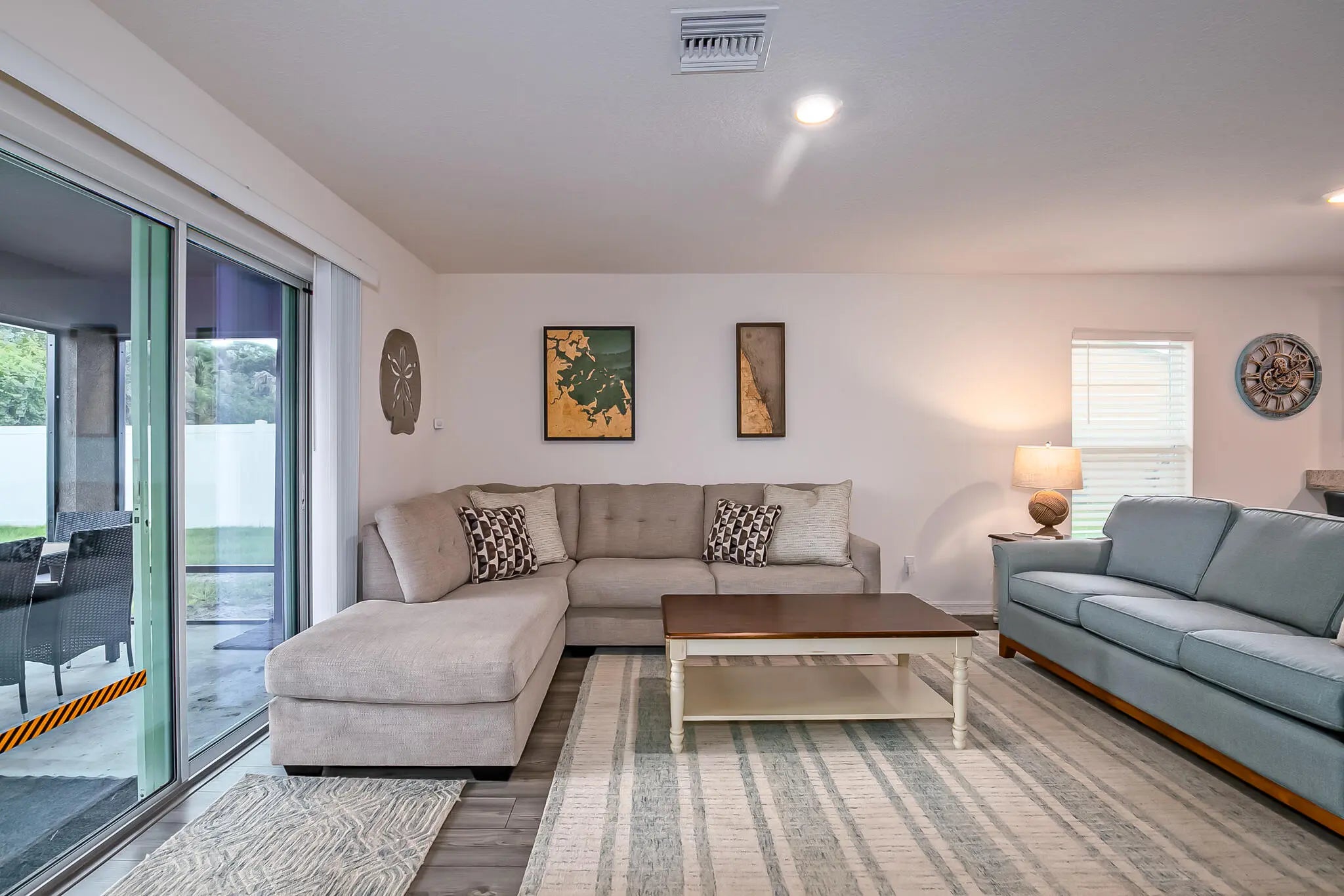This lightly lived-in, like-new 2023 built home is located in a desirable non-HOA community, offering flexibility, privacy, and modern comfort in a highly convenient location just approximately 15 minutes from the beach. The home features a well-designed layout with 4 bedrooms plus a den or flex room, ideal for a home office, guest space, or playroom. The bright and open floor plan is designed for today's lifestyle, creating a seamless flow between the main living areas. The spacious kitchen is equipped with white cabinetry, granite countertops, stainless steel appliances, pantry, and a breakfast bar that overlooks the great room, making it perfect for both everyday living and entertaining. The private primary suite is thoughtfully tucked away for maximum relaxation and features a spa-like bathroom with dual sinks, a soaking tub, a separate shower, and an oversized walk-in closet. Step outside to enjoy a large, fully fenced backyard with a screened patio and sprinklers, providing the perfect space for outdoor entertaining, pets, or creating your own private retreat. This home offers the rare combination of newer construction, no HOA restrictions, and close proximity to beaches, Jensen Beach Mall, shopping, and restaurants, making it an exceptional opportunity for buyers seeking space, comfort, and flexibility.