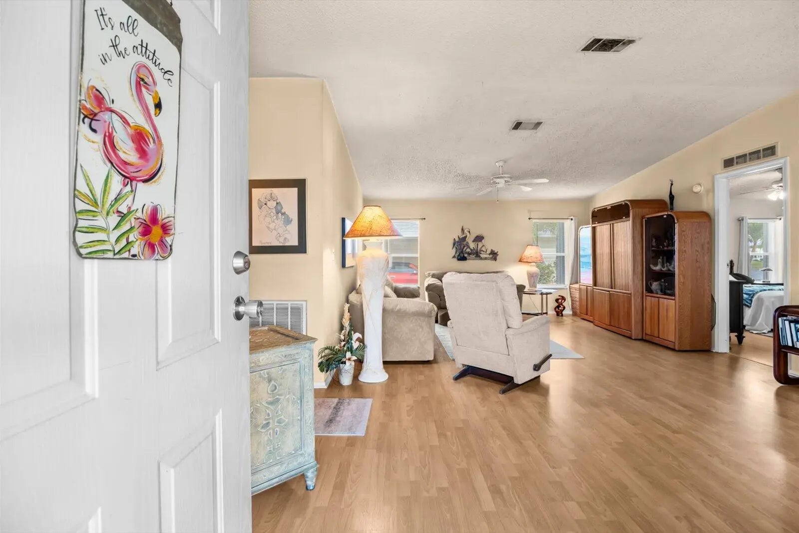 Enjoy lakeside living in this 3-bedroom, 2-bath home located in the desirable Savanna Club 55+ community. Featuring a 2021 roof and a popular split floor plan, this residence offers both comfort and privacy. The enclosed lanai provides the perfect space to relax and take in peaceful water views year-round. Conveniently situated just minutes from beautiful beaches, shopping, and medical facilities, this home offers the ideal blend of serenity and accessibility. Experience the best of 55+ living in a welcoming community designed for enjoying the Florida lifestyle. Land Lease Property