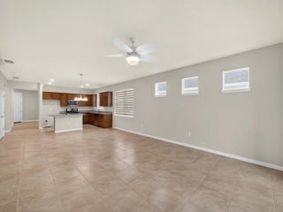 Welcome to this beautifully maintained 2-bedroom plus den, 2-bathroom villa in the highly desirable Del Webb at Tradition, a premier 55+ community. This home features an open and spacious floor plan filled with natural light, ideal for comfortable living and entertaining. Tile flooring throughout offers a clean, modern look and easy maintenance. The updated kitchen is the heart of the home, showcasing a granite center island, gas range, and ample cabinetry. The versatile den is perfect for a home office or guest space. Impact glass windows provide peace of mind and efficiency. Enjoy resort-style living at Del Webb at Tradition with a clubhouse, fitness center, pool, tennis and pickleball courts, and an active social calendar. Centrally located near shopping, dining, and Cleveland Clinic.