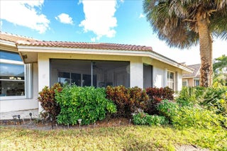 Beautiful 3/3 Courtyard Pool home with over 140k in Big-Ticket improvements in PGA Village w/ lake view. 2025 Barrel tile roof, paver driveway, crown molding, surround sound & new screens & pool heater. New Luxury Vinyl Flooring through out main areas. 2 Spacious Master suites, custom walk in closets & large bathrooms one w/jacuzzi tub, separate shower & dual sinks & 1 yr old therapeutic walk in tub. Open concept w/ Eat in Kitchen includes 2025 stainless steel appliances, incl new washer/dryer, Granite counter tops, breakfast bar & pantry. Alarm system, Newer HVAC. Separate pool house for guests, office, gym. Accordion shutters for hurricane protection. HOA offers golf, incl/ fitness center, pool, tennis, billiards, basketball, Pickleball, cable, landscaping, phone, & sprinklers.