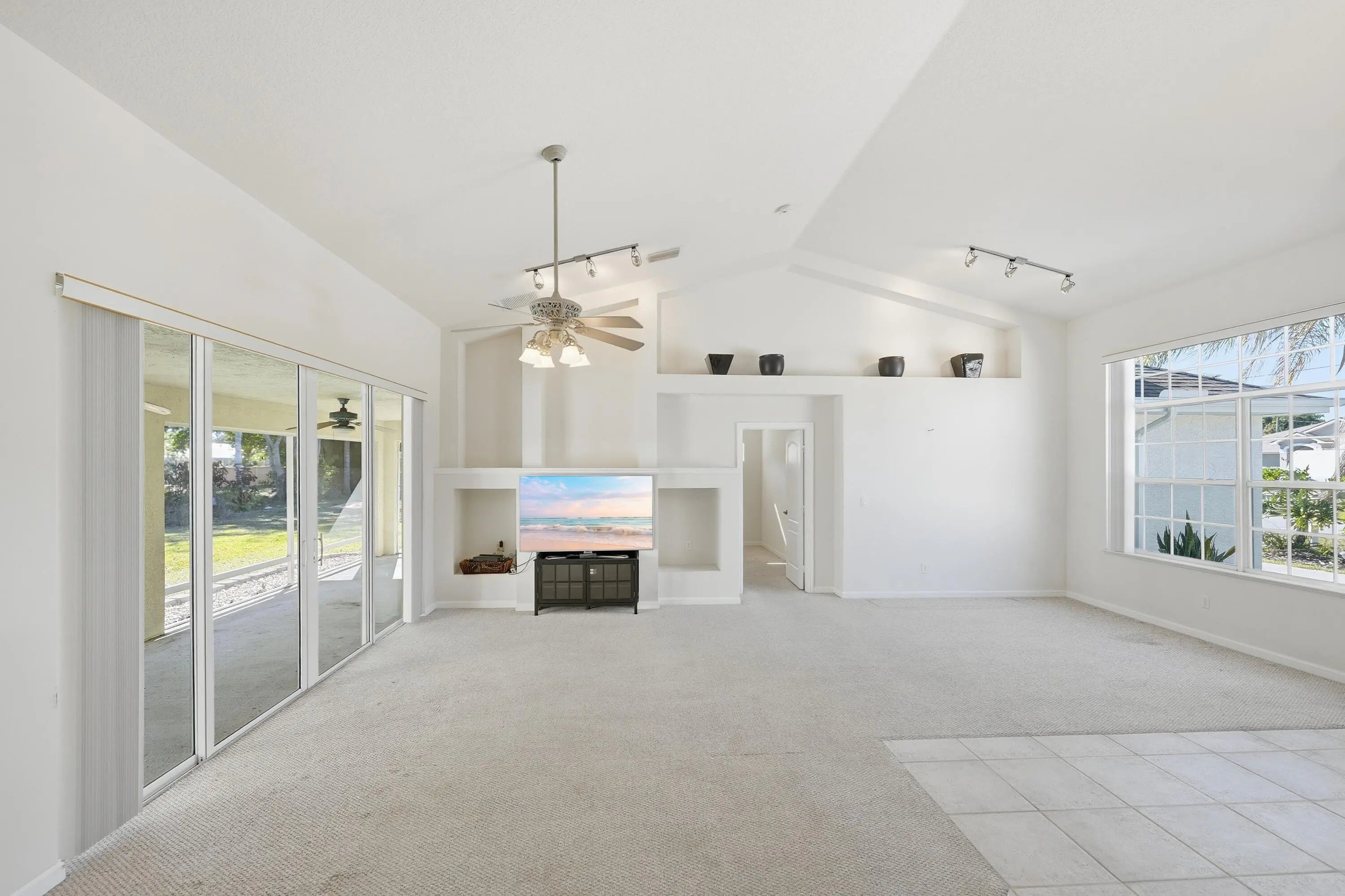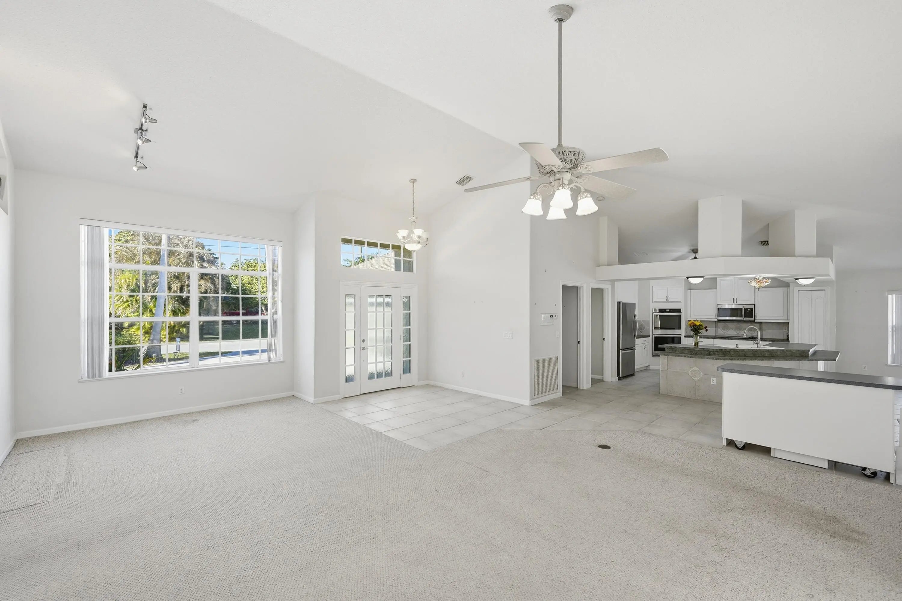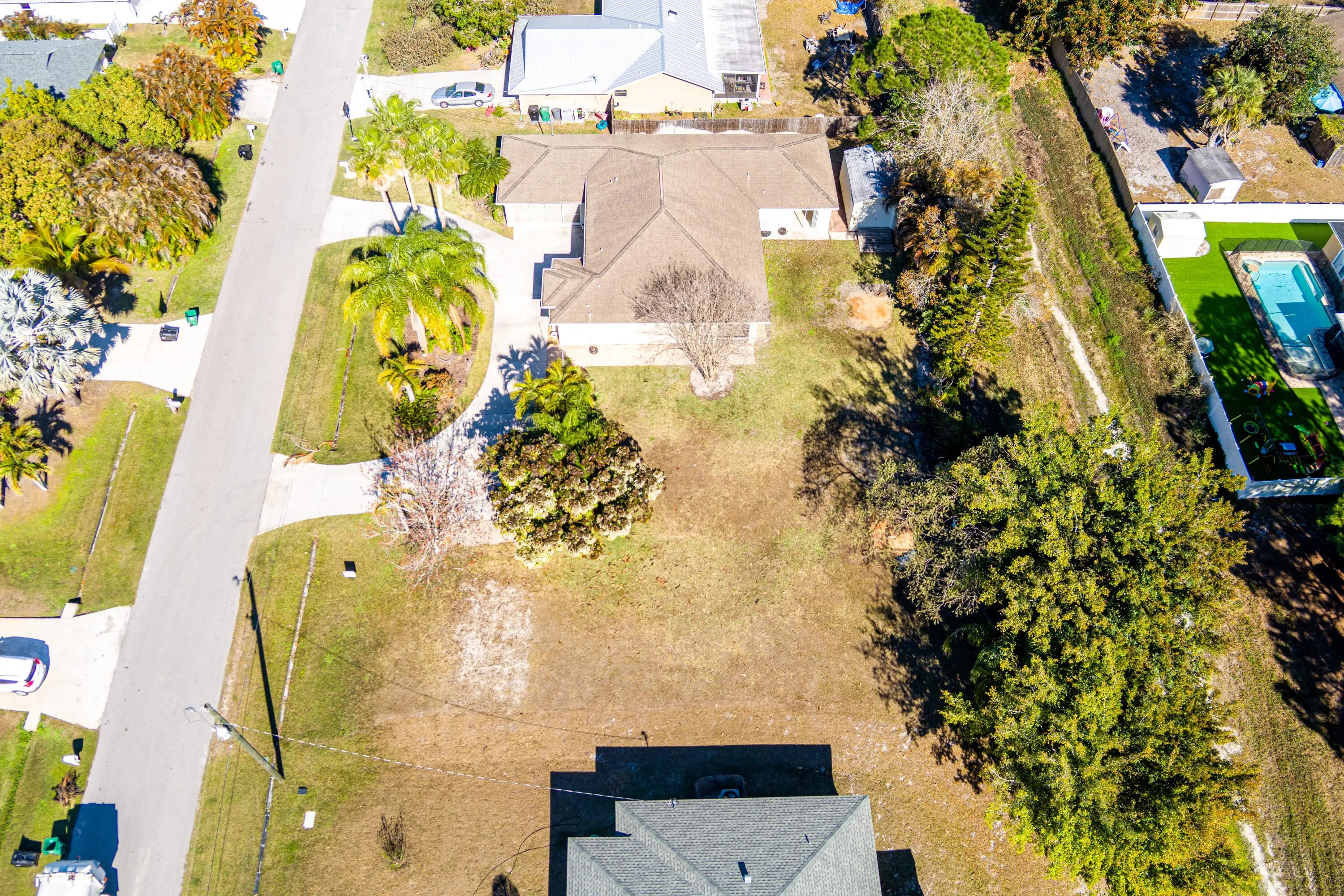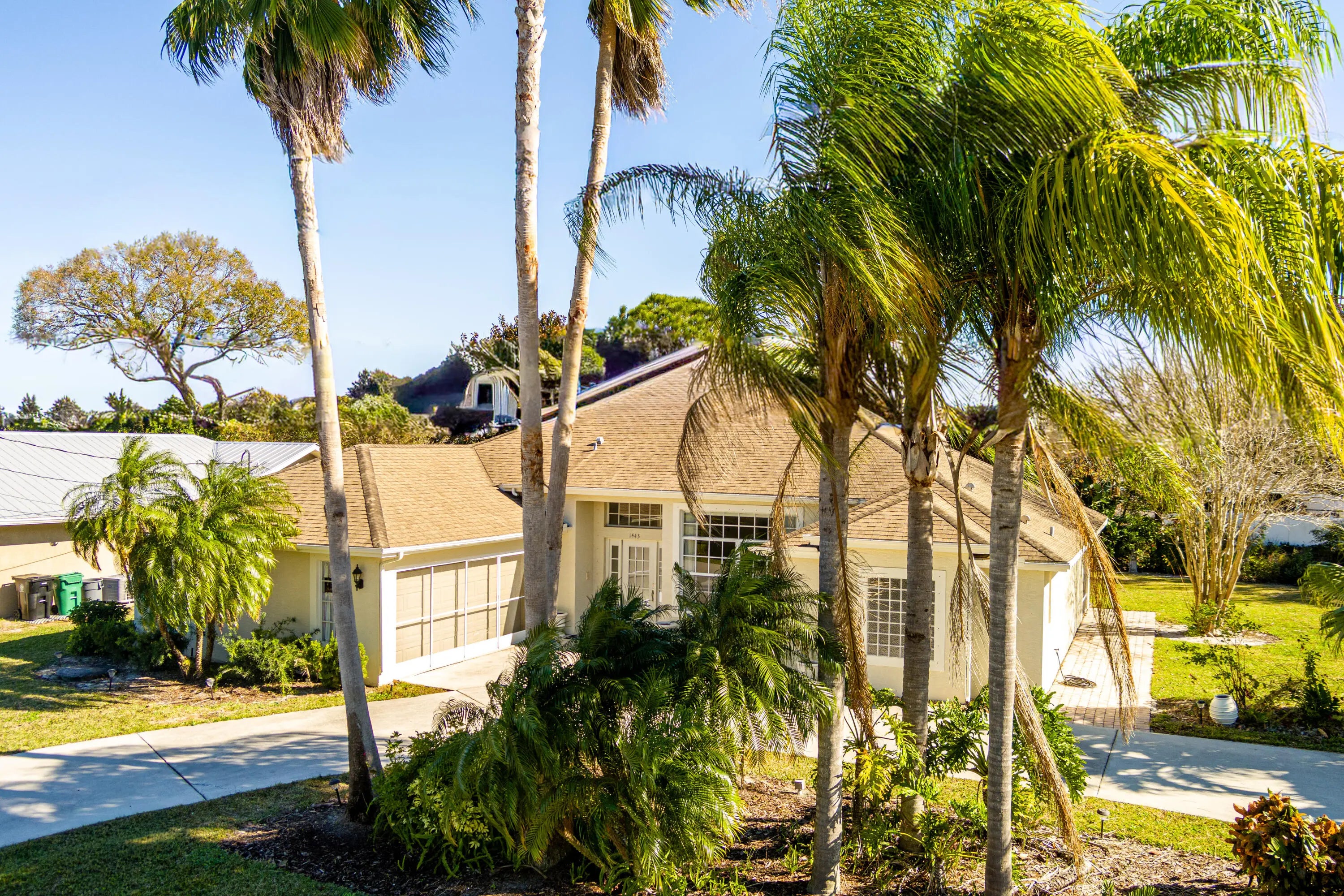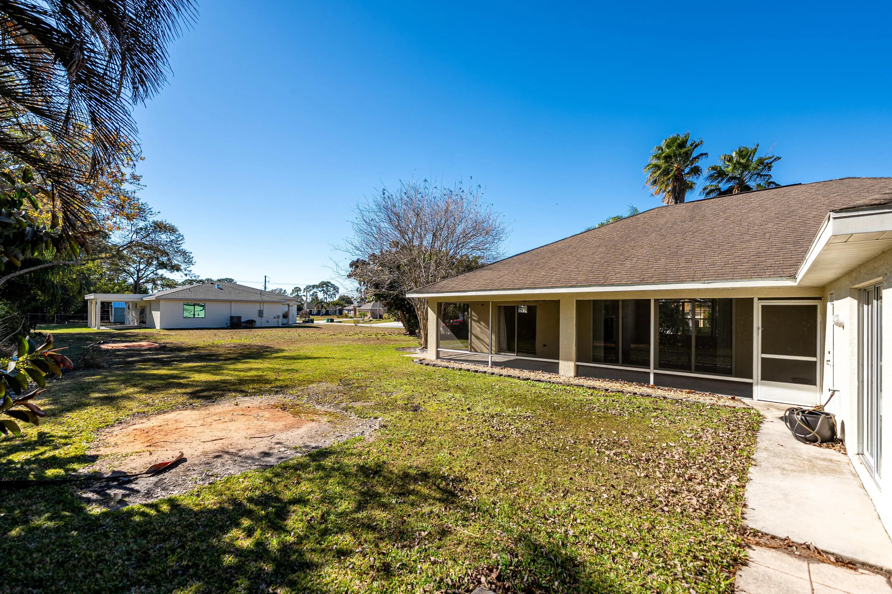 Searching for the perfect blend of space, comfort, and convenience? This meticulously maintained 4-bedroom, 2-bathroom home offers 2,345 square feet of bright, open living space designed for both effortless entertaining and large family gatherings. Situated on a sprawling .46-acre lot with potential for splitting, this property provides outdoor flexibility for a pool or RV. You'll love the curb appeal, with large palm trees, and beautiful landscaping maintained by a deep-well irrigation system (dug to 150 feet) that ensures no rust staining, and a circular driveway for easy garage access. Perfectly located near schools and shopping with easy access to Crosstown Parkway, and I-95.