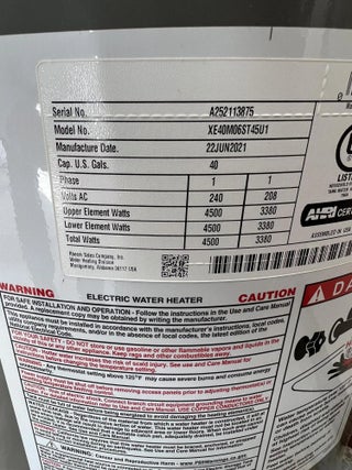 Electric Water Heater, Dryer, Electric Range, Refrigerator, Water Heater, Washer