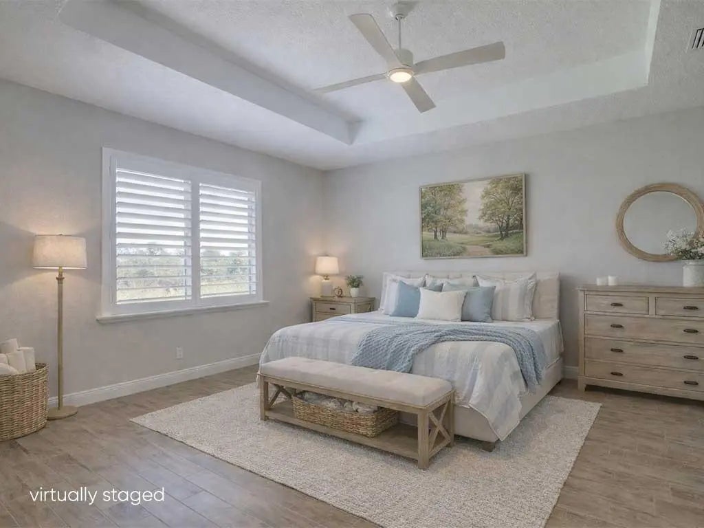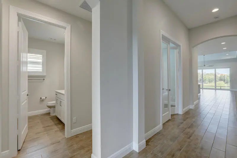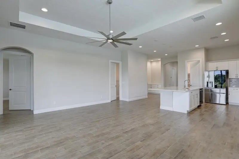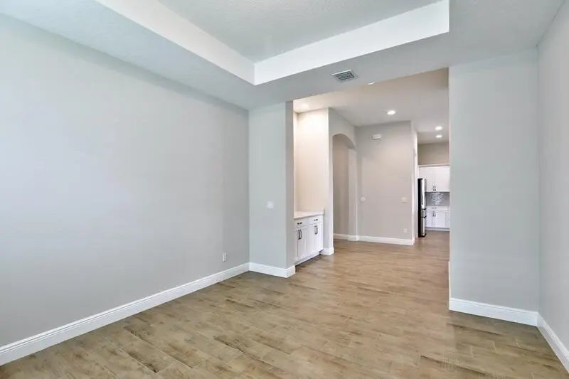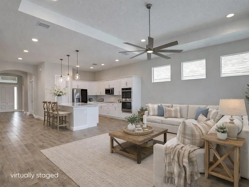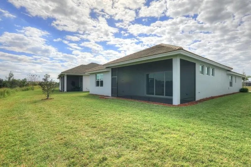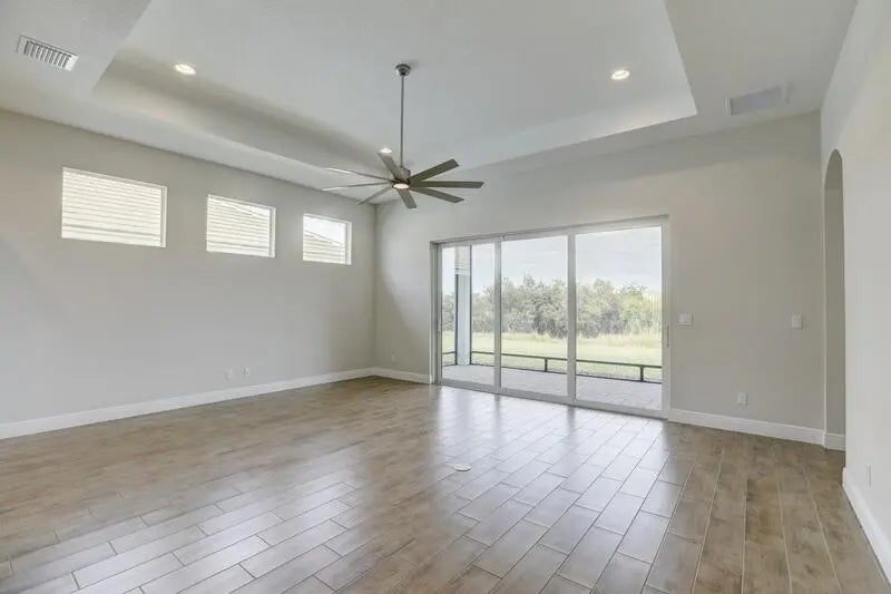 PRICED TO SELL! Like-new GHO home featuring 2 bedrooms plus a den/office or optional 3rd bedroom, 2.5 baths, and a 2-car garage with A/C and epoxy flooring. The gourmet kitchen offers quartz countertops, a large island, double ovens, and stainless-steel appliances, opening to a bright living and dining area with a built-in serving cabinet—ideal for entertaining. Tile flooring throughout, volume ceilings, plantation shutters, and impact windows and doors. The spacious primary suite includes large his-and-her closets. Enjoy a screened porch and private yard backing up to a serene preserve. Resort-style amenities, HOA covers lawn care, irrigation, cable, internet, alarm services, and more. This is an exceptional value in Lake Park at Tradition - 55+ community. Act NOW! szsapproxsubtoerr
