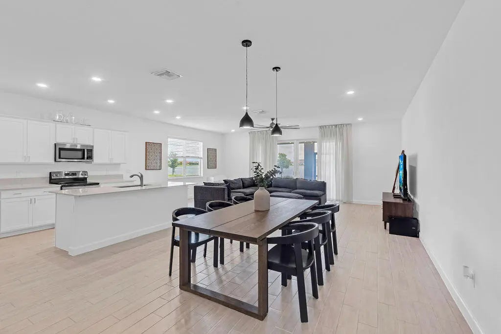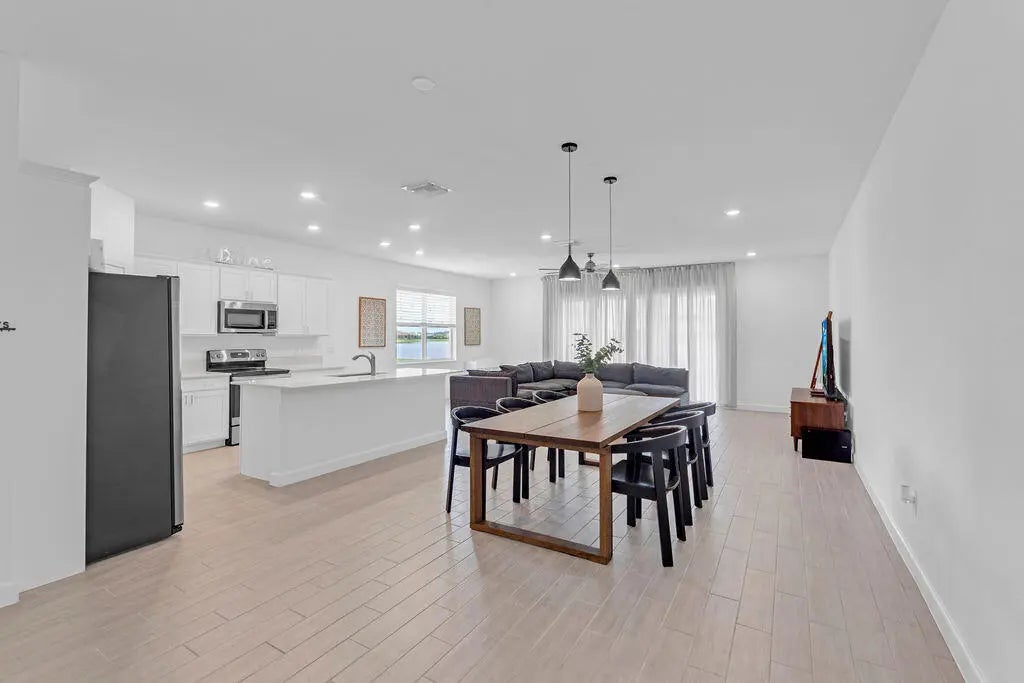 Gorgeous Sago model smart home on a .30-acre lakefront lot in the desirable, family-friendly Copper Creek community. This home features a private in-law quarters with living room, dining, kitchen, bedroom, full bath, and washer/dryer—perfect for family and guests. Enjoy peaceful lake views from the screened lanai, ideal for morning coffee or sunsets. Freshly painted with wood plank tile on the first floor and soaring 10 ft ceilings, the chef's kitchen with island seating opens to the great room for easy entertaining. The impressive owner's suite features an oversized walk-in closet and spacious ensuite bath. With large bedrooms, abundant storage, and an HOA with resort-style amenities, this home is perfect for any growing family.