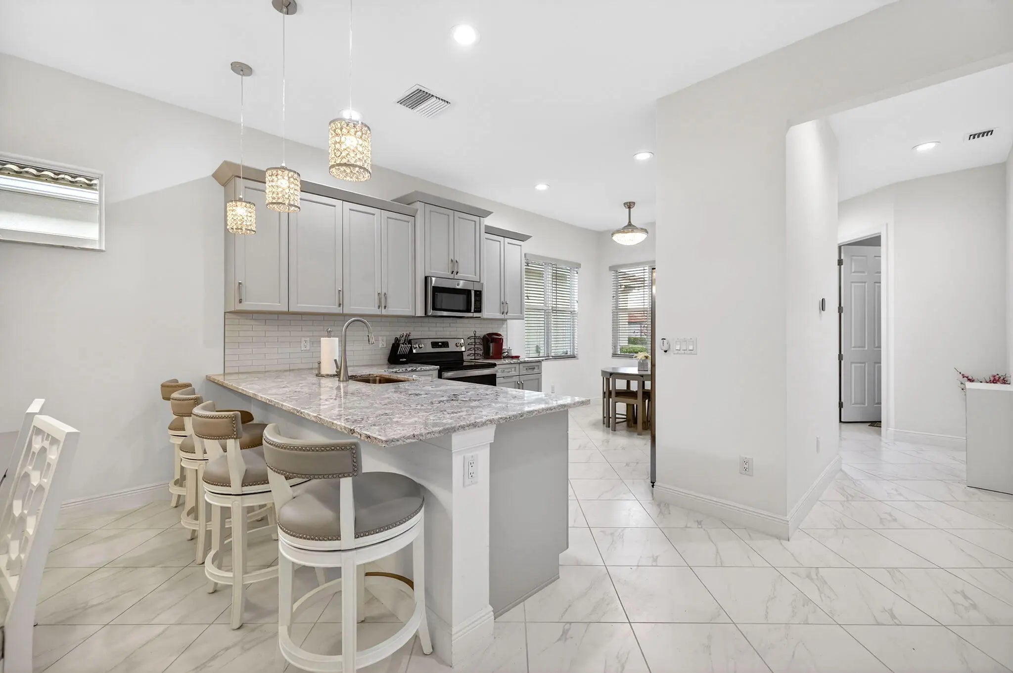 Turn-Key Living with Resort-Style Amenities! Versatile 3 -bed/2-bath home designed for modern living. One of the bedrooms is currently styled as a loft/home office. What truly sets this home apart are the extensive upgrades the owners paid a premium forâ”top-of-the-line quartz countertops, built-in speaker system, screened-in lanai, impact windows and high end custom window treatments throughout. When it comes to comfort and efficiency, this home delivers. HOA is $585 monthly (paid quarterly) and includes lawn care, pest control, cable, high-speed internet, & a smart security system. Community amenities include a clubhouse, fitness center, sauna, indoor pool, billiards room, bocce court, playground, art room & more. FURNITURE IS NEGOTIABLE