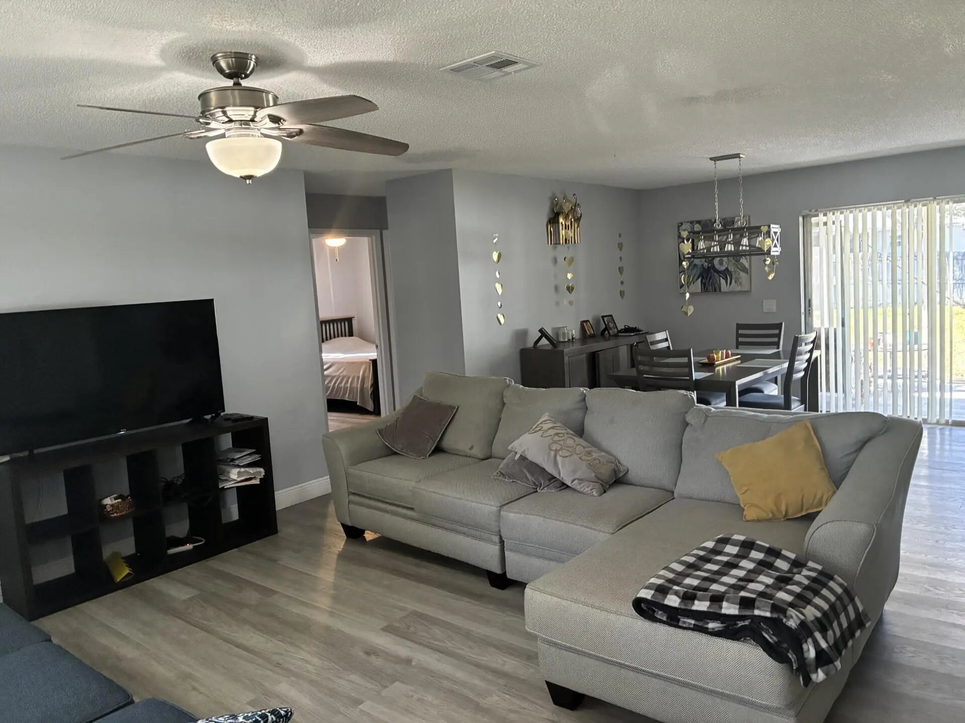 all measure approx. Beautiful 3/2/1 Remodeled house with laminate floors, completely renovated bathrooms and kitchen. The house has laminate flooring throughout. A spacious and private yard, ideal for children to play, or if you, as the homeowner, want to plant something, there is space for it.