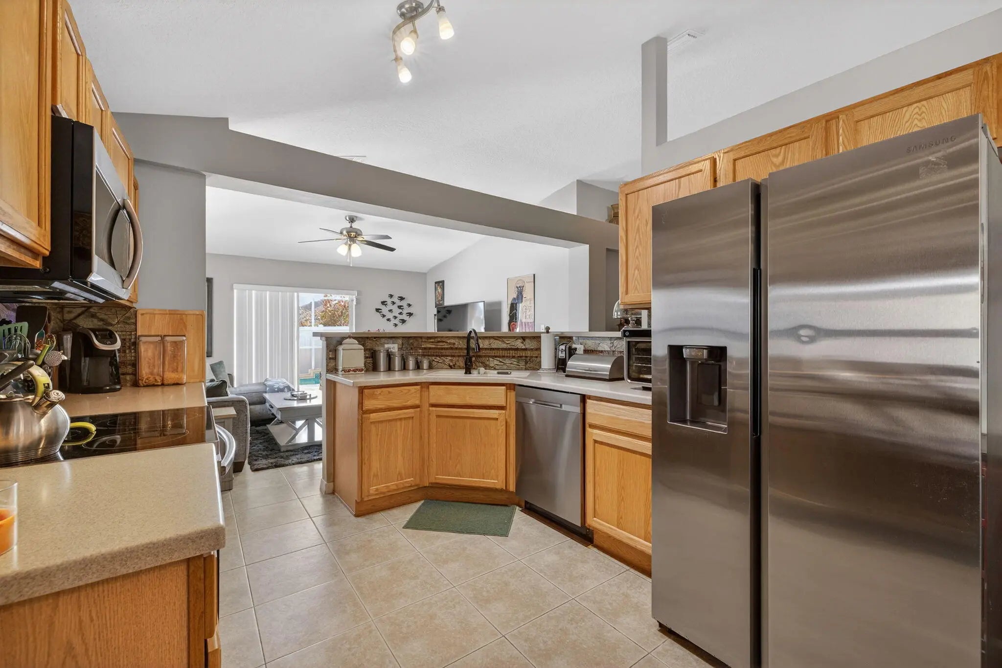 Welcome to 6141 NW Wild Cotton Way — a well-cared-for pool home in Torino's Winterlakes community.6141 NW Wild Cotton Way delivers space, upgrades, and a peaceful setting—located on the lake in Torino's Winterlakes community, with a fully fenced yard for privacy. This 4-bedroom, 2-bath home offers a versatile layout with separate living spaces—a living room/dining room combo plus a separate family room, giving everyone room to spread out. The main living areas feature tile flooring, while the bedrooms have laminate flooring for a clean, modern feel. The eat-in kitchen is ideal for casual meals, and you'll love that all appliances are less than 3 years old. The primary bathroom has been meticulously renovated, featuring an updated, spacious shower and dual sinks for a fresh, spa-like experience. Step outside to your private backyard retreat with a solar-heated lap pool (max depth is approximately 6 ft deep). Additional highlights include underground electric, and an HOA that makes life easier with lawn care includedall wrapped into a low-maintenance lifestyle in a great Port St. Lucie location.
