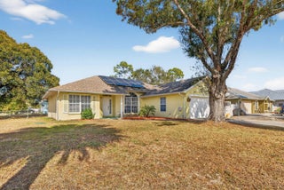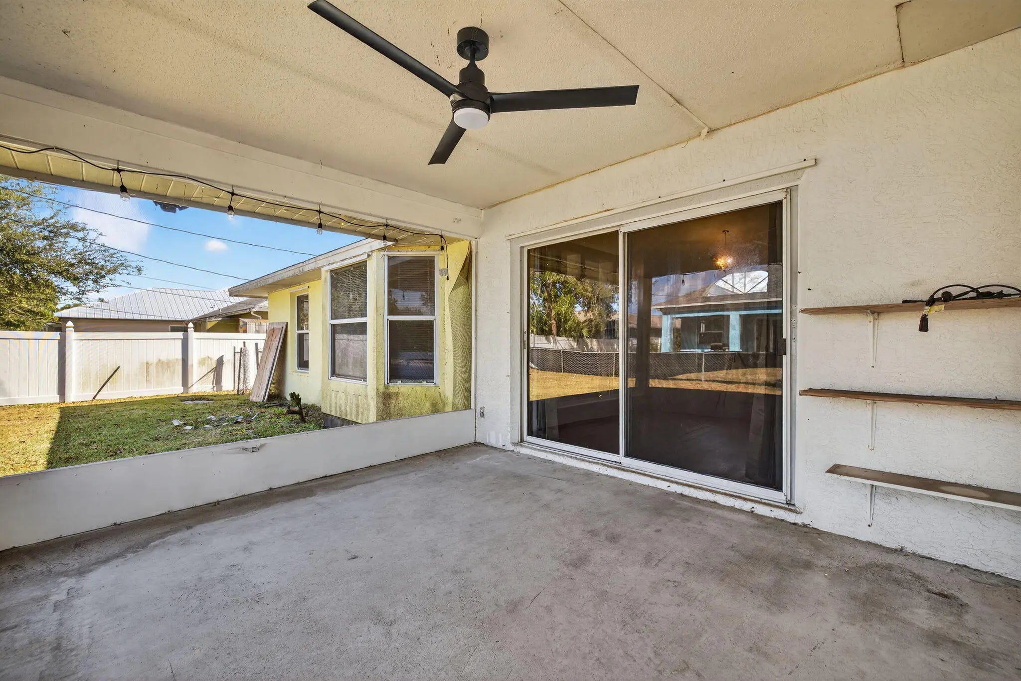 LOCATION SAYS IT ALL! 3/2/2 CBS home offers the perfect blend of comfort and convenience. The open split-floor plan provides both functionality and privacy. Luxury VINYL PLANK flooring recently added. Enjoy seamless indoor-outdoor living with an oversized screened-in back patio, perfect for everyday living and entertaining—an ideal space to relax and make lasting memories while overlooking the spacious, FULLY FENCED-IN CORNER LOT backyard. A standout feature is the PAID-OFF SOLAR PANEL system, offering energy savings from day one NOTABLE updates 2017 ROOF, 2024 HOT WTR HTR, 2025 garbage disposal, NEW TOILETS (2023) FRIDGE & DRYER (2023) Peacefully tucked away yet conveniently close to it all! Location means everything - 7 MIn to I-95, approx 10 MIN to TPK, Tradition, SLW and Hospitals!!!