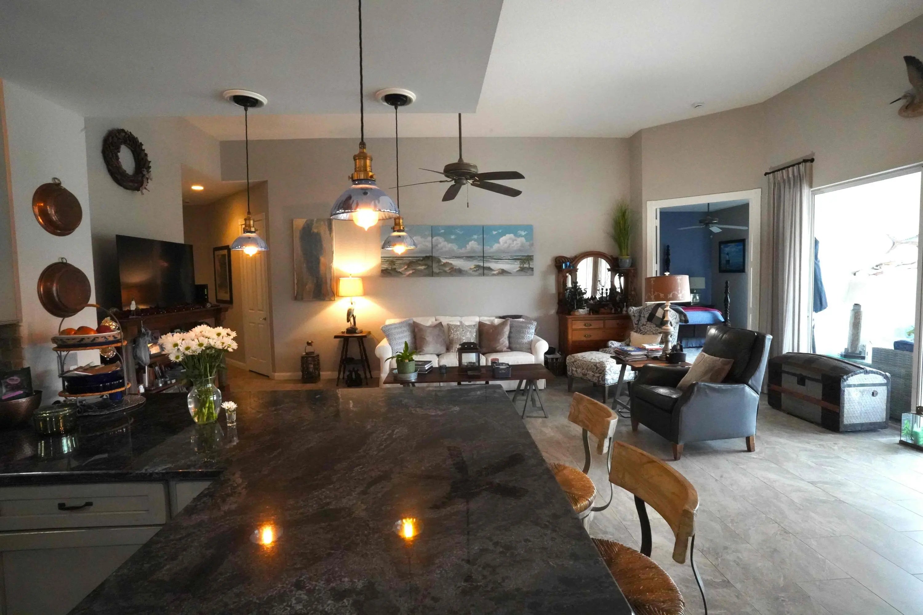 Experience unparalleled privacy and luxury in this exquisite lakefront retreat. Situated at the end of a quiet cul-de-sac with no through traffic, this 4 bedroom, 4 full bathroom Carlyle Model home offers long, northern-exposure water views and ultimate seclusion with no neighbors directly behind. The interior ''shows like a model,'' boasting sophisticated pecan-shaved flooring in the main living areas and elegant ceramic wood-look tile for easy maintenance. The gourmet kitchen is a chef's dream, featuring LG stainless steel appliances, tumbled marble backsplash, and a custom lighting package including lighted cabinets, recessed ''high-hats,'' and designer chandeliers. Architectural details abound with crown molding throughout and a massive master suite featuring his-and-her vanities, a soaking tub, and multiple walk-in closets. Enjoy the Florida lifestyle on the expansive screened patio, finished with premium pavers, paddle fans, and a Miami-approved "Storm Smart" motorized shade perfect for both storm protection and instant privacy. Additional upgrades include a new Central Vac system, a dedicated laundry room with quartz countertops, and an oversized two-car garage with a new opener and attic storage. From the charming private front courtyard to the lush tropical landscaping and professional outdoor lighting, every inch of this home has been meticulously appointed. A true must-see! Live in the heart of Tradition! Located in The Lakes at Tradition, this home sits inside one of Port St. Lucie's most sought-after master-planned communities known for its walkable Town Center, year-round events, and an active outdoor lifestyle. Residents enjoy a true neighborhood feel with sidewalks, trails, and easy access to parks and everyday conveniences. The Lakes at Tradition offers resort-style living with a clubhouse lifestyle that includes two heated pools, a fitness center, tennis and pickleball, plus social spaces and community activities all within a gated setting. Whether you're looking for an active lifestyle or a relaxed Florida pace with everything close by, Tradition delivers the best of both.