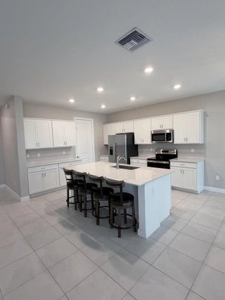 Welcome to Copper Creek! This popular Olympia model smart home features 5 bedrooms, 4 full baths, and a flexible den. The open kitchen with a walk-in pantry overlooks the spacious great room—ideal for entertaining. The primary suite offers dual vanities, a walk-in shower, and a large walk-in closet. Enjoy new fans and fixtures, dual HVAC systems, upgraded electrical for mounted TVs, and relaxing lake sunsets from the covered lanai. With neutral paint and modern finishes throughout, this home offers the space and style you've been looking.
