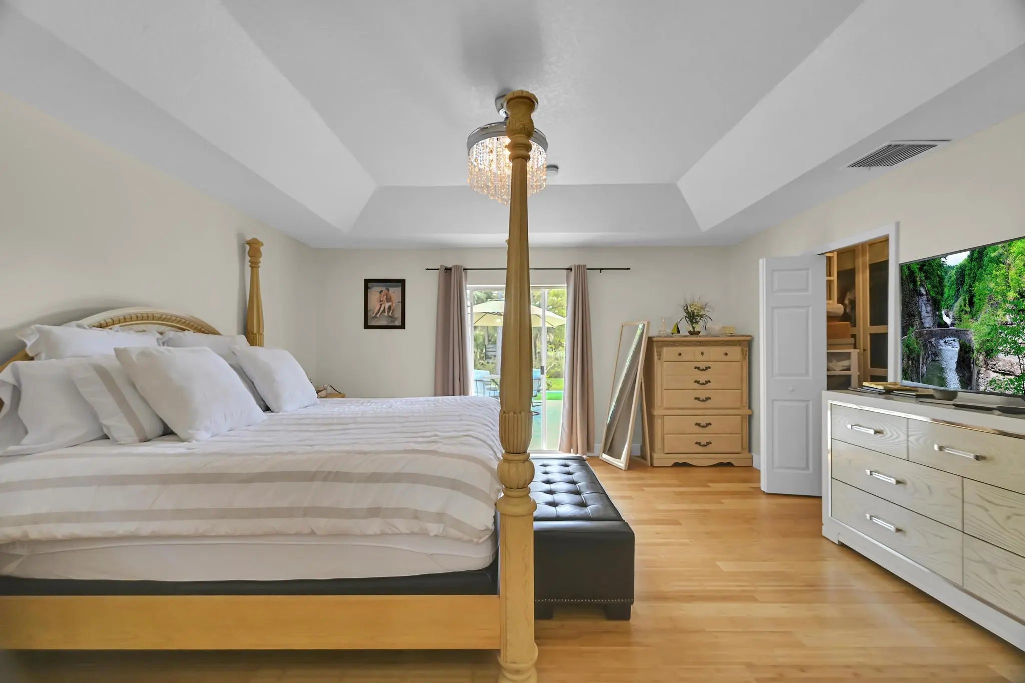Cathedral Ceiling(s), High Ceilings, Vaulted Ceiling(s), Bedroom Layout - Split, Closet Cabinetry