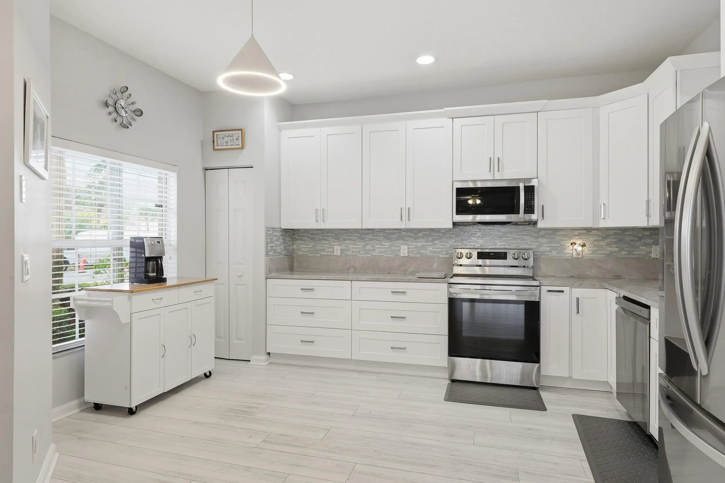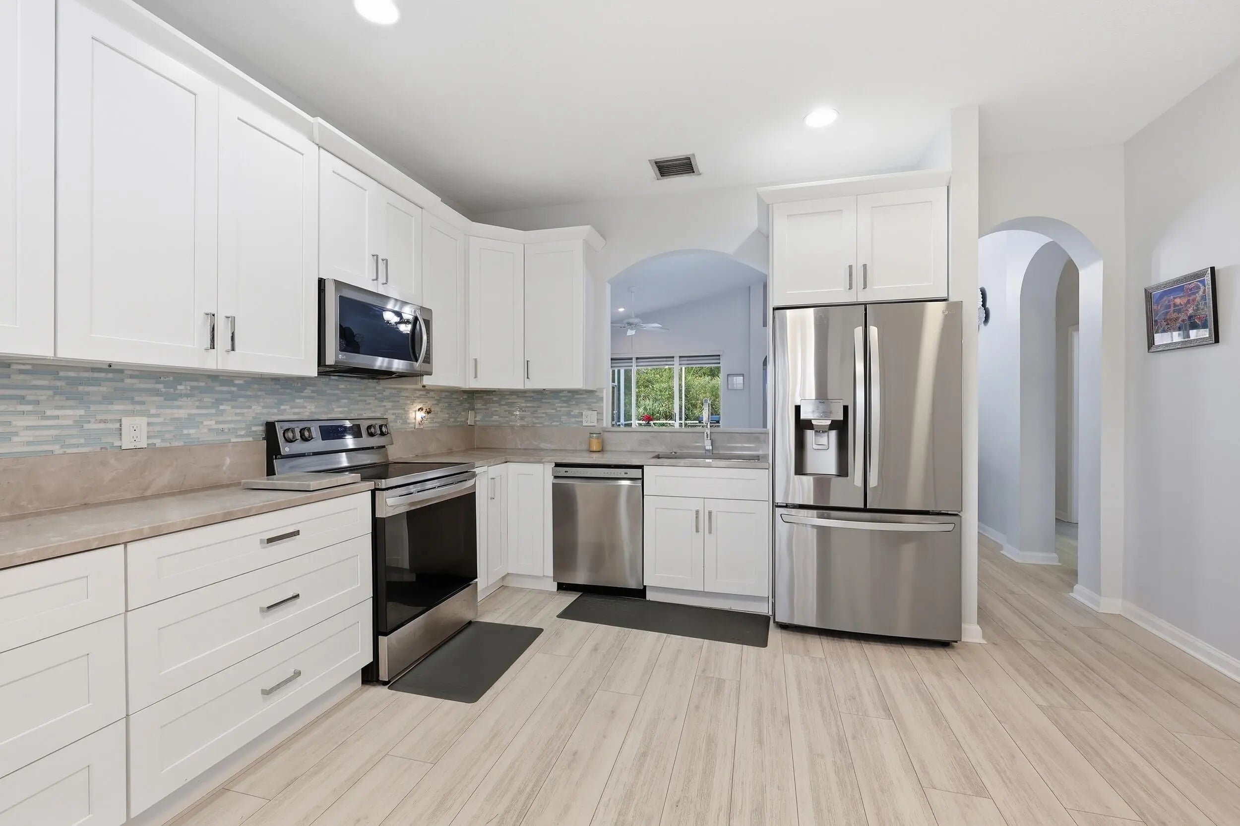 Welcome home to 362 NW Granville in The Cascades, a premier 55+ community in St. Lucie West, where resort-style living meets turnkey perfection. This beautifully updated Waterford model offers 1,650 sq ft under air, featuring 3 bedrooms, 2 baths, and a desirable split floor plan designed for both comfort and privacy. The heart of the home is the fully remodeled kitchen, completed with over $25,000 in upgrades, including white shaker cabinets with soft-close drawers, brand-new appliances, marble countertops, a decorative backsplash, and stylish new lighting, a true showstopper for everyday living and entertaining alike. Every inch of this home has been thoughtfully refreshed, with fresh interior paint, luxury vinyl plank flooring throughout, and a completely remodeled primary bath, ($18,000) featuring a stunning floor-to-ceiling tiled shower, dual shower heads, frameless glass enclosure, dual vanity, and updated lighting for a spa-like experience. Major systems have already been taken care of, giving you peace of mind with a new AC (2024), water heater (2023), and the home fully replumbed in 2023. Step outside to enjoy your private, landscaped backyard, offering a tranquil retreat and best of all, not on the water, so there's no need to worry about mosquitoes, snakes, or gators while you relax outdoors. Located in one of St. Lucie West's most sought-after active adult communities, residents of The Cascades enjoy a vibrant lifestyle with a clubhouse, pools, fitness center, tennis, pickleball, and a full calendar of social activities. This is truly a move-in-ready home where all the work has been done for you, just unpack and start enjoying the Florida lifestyle you deserve.