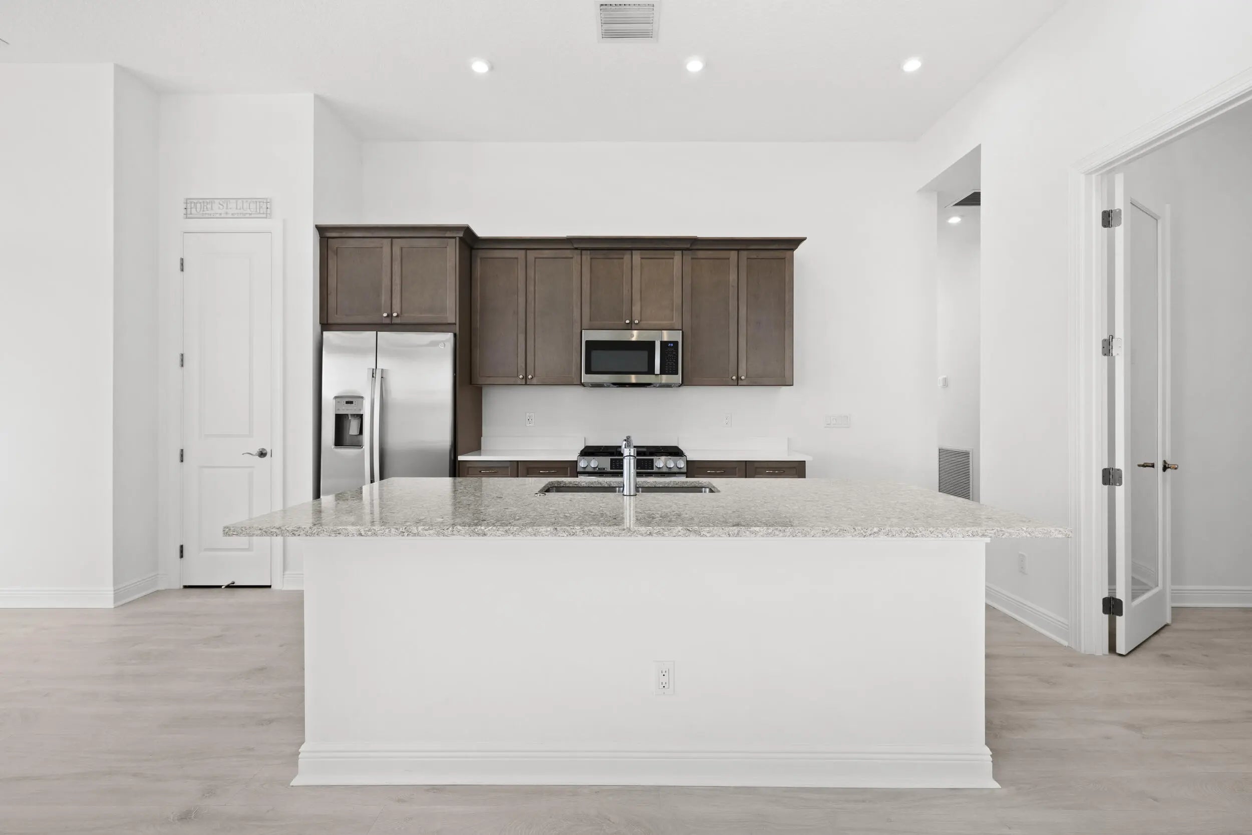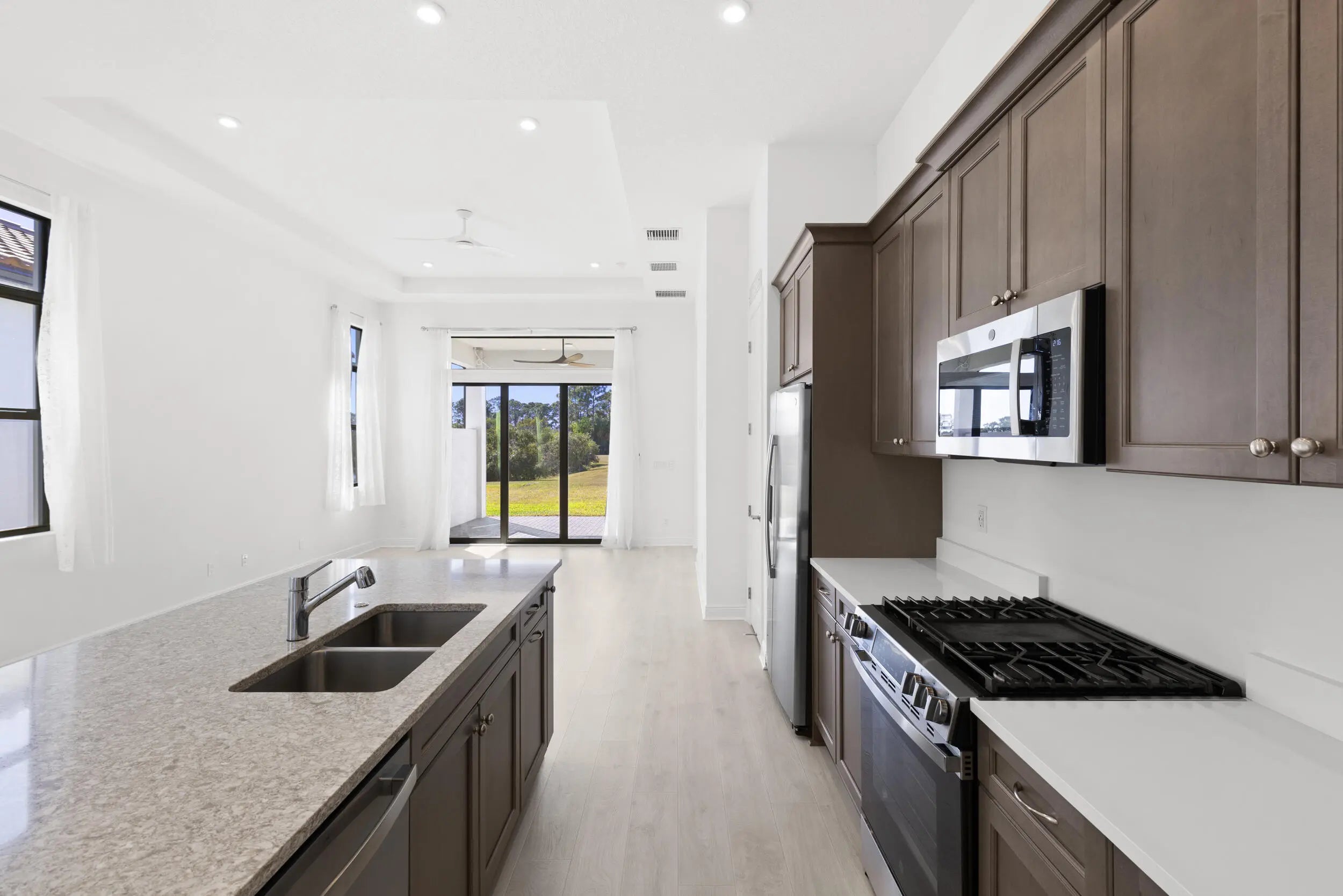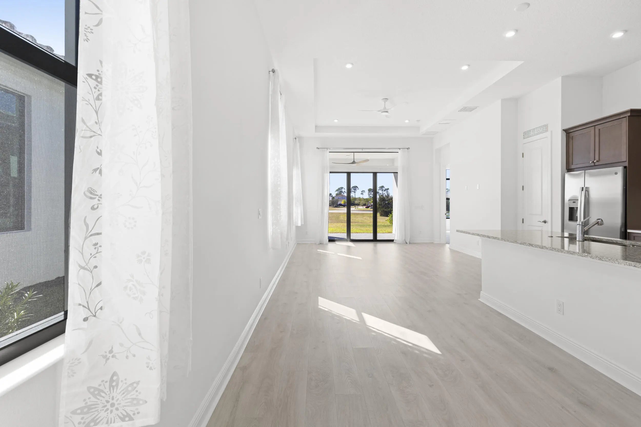 Wind down with serene sunset lake views from the back patio of this stunning 2025-built home in Rivella. This 2-bedroom + den, 2-bath residence features quartz countertops in the kitchen and baths, electric shades, and no neighbors directly behind for added privacy. Stroll the trails, play tennis, relax at the pool, or gather at the clubhouse. With the new Port District, beaches, golf, and boating all nearby, every day feels like a vacation. Available Now!
