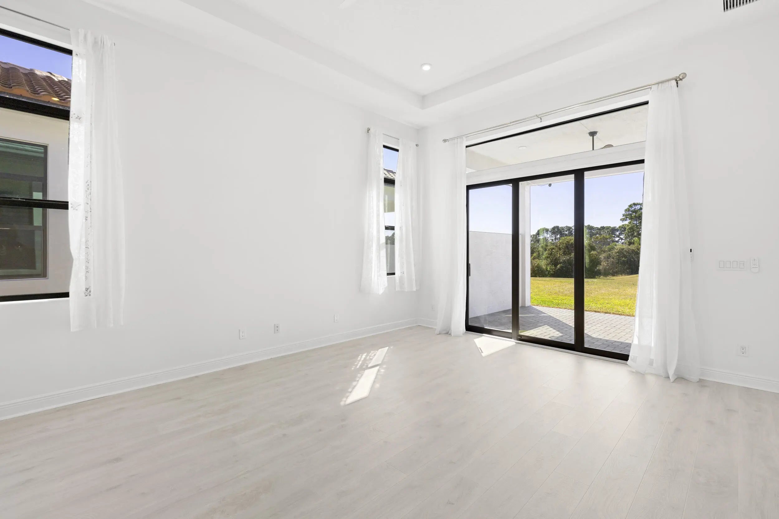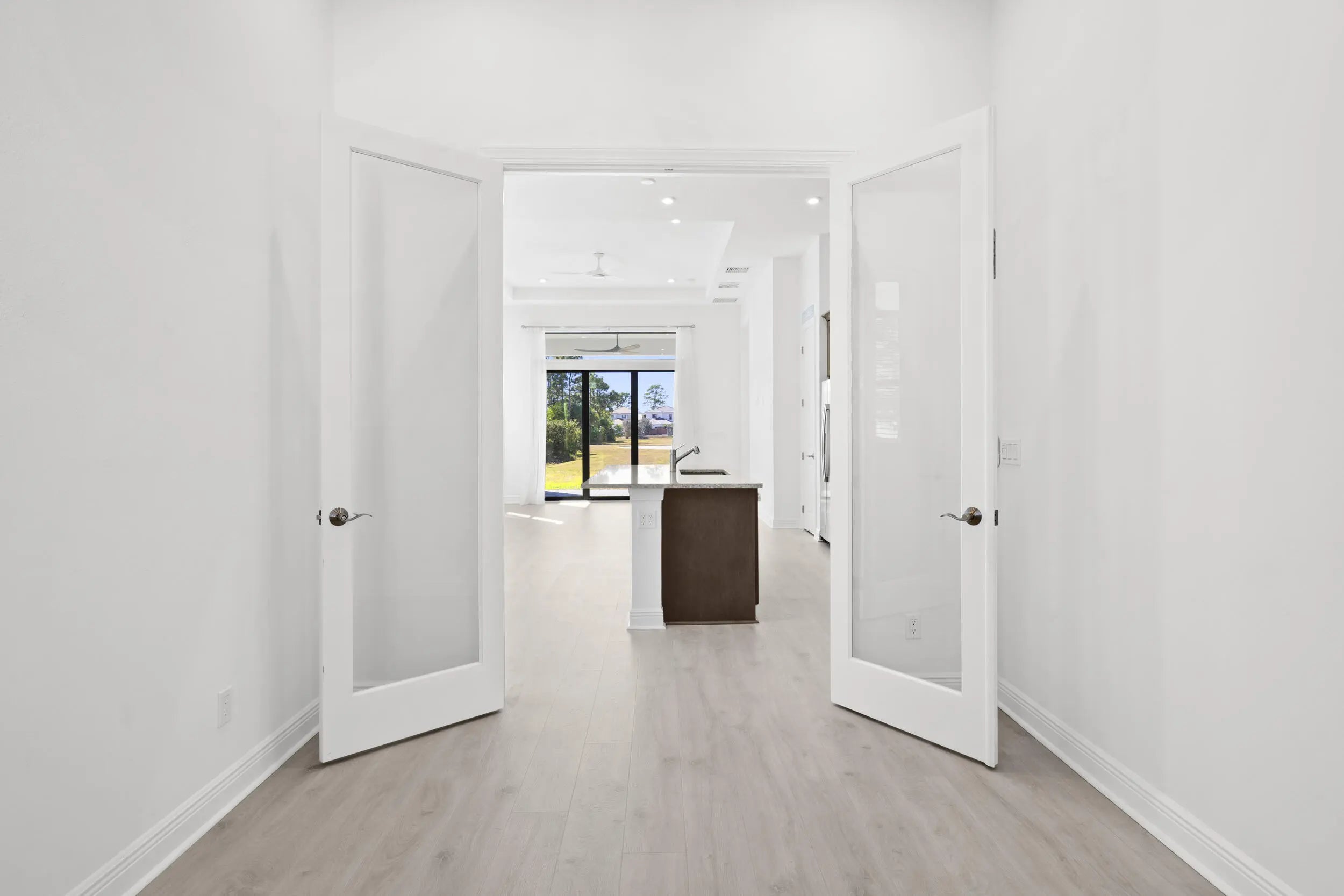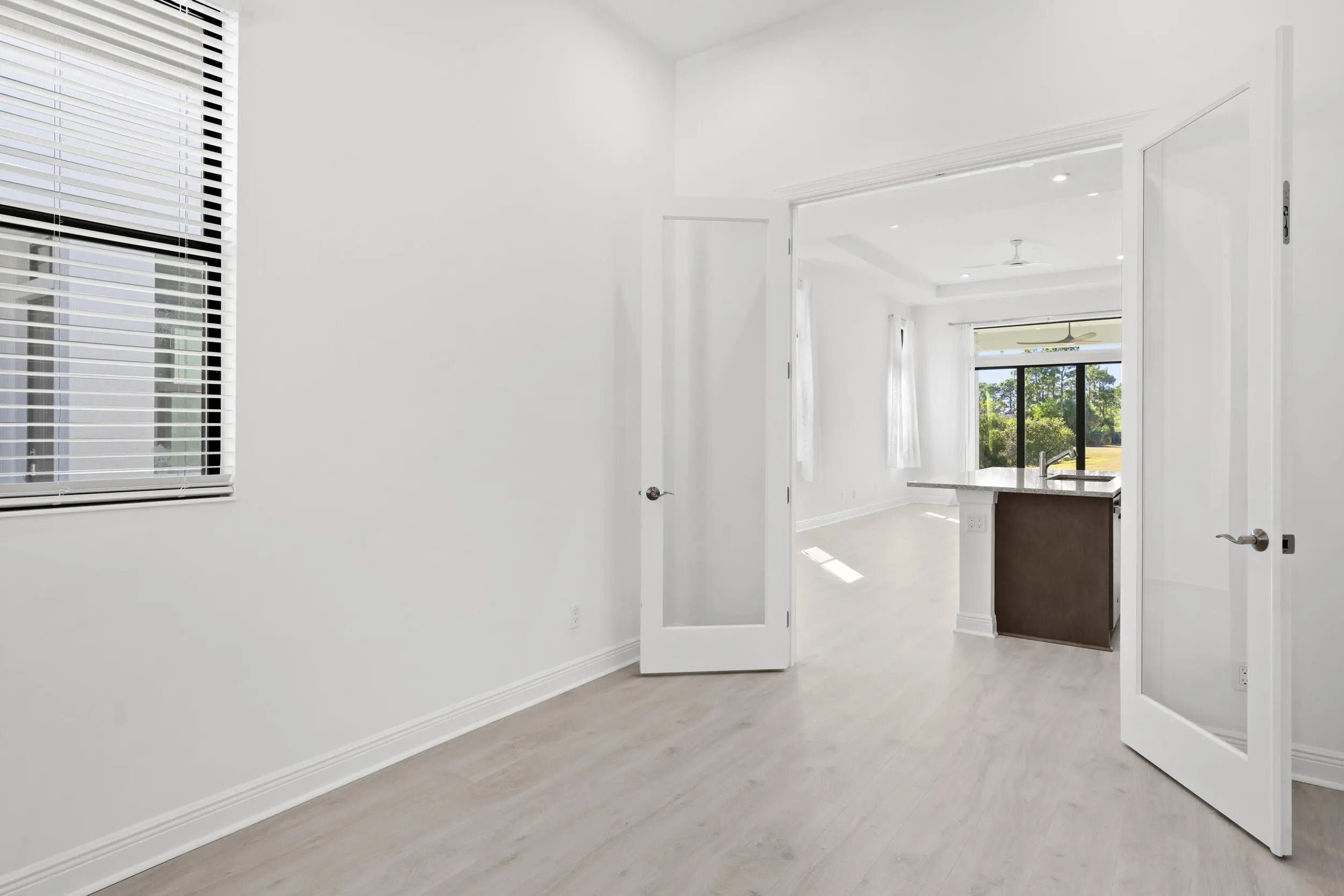 Wind down with serene sunset lake views from the back patio of this stunning 2025-built home in Rivella. This 2-bedroom + den, 2-bath residence features quartz countertops in the kitchen and baths, electric shades, and no neighbors directly behind for added privacy. Stroll the trails, play tennis, relax at the pool, or gather at the clubhouse. With the new Port District, beaches, golf, and boating all nearby, every day feels like a vacation. Available Now!