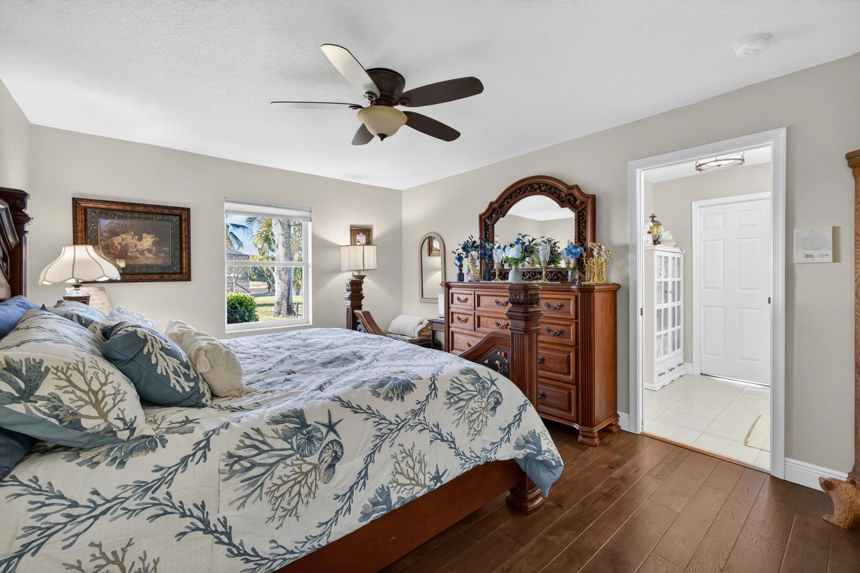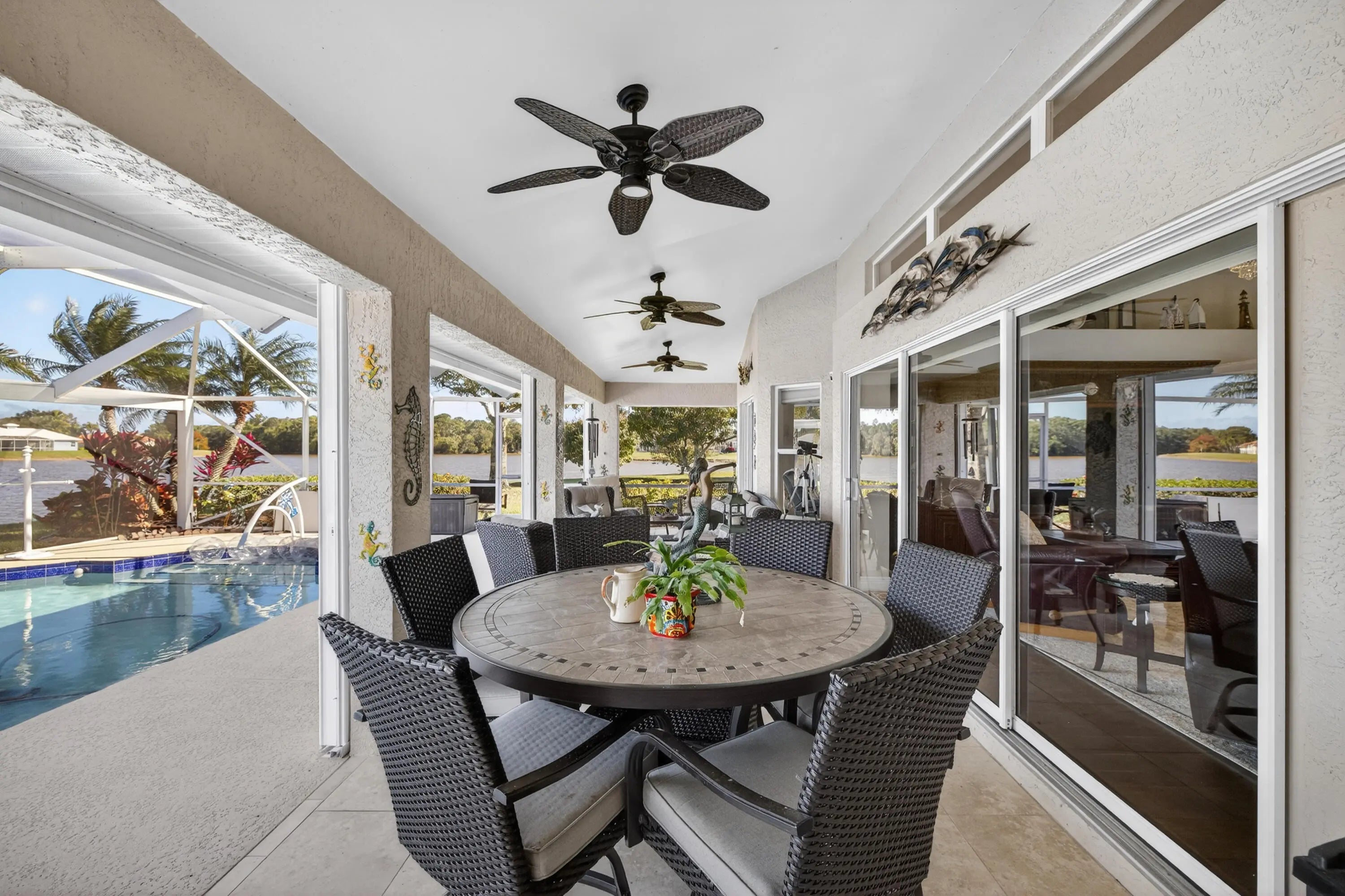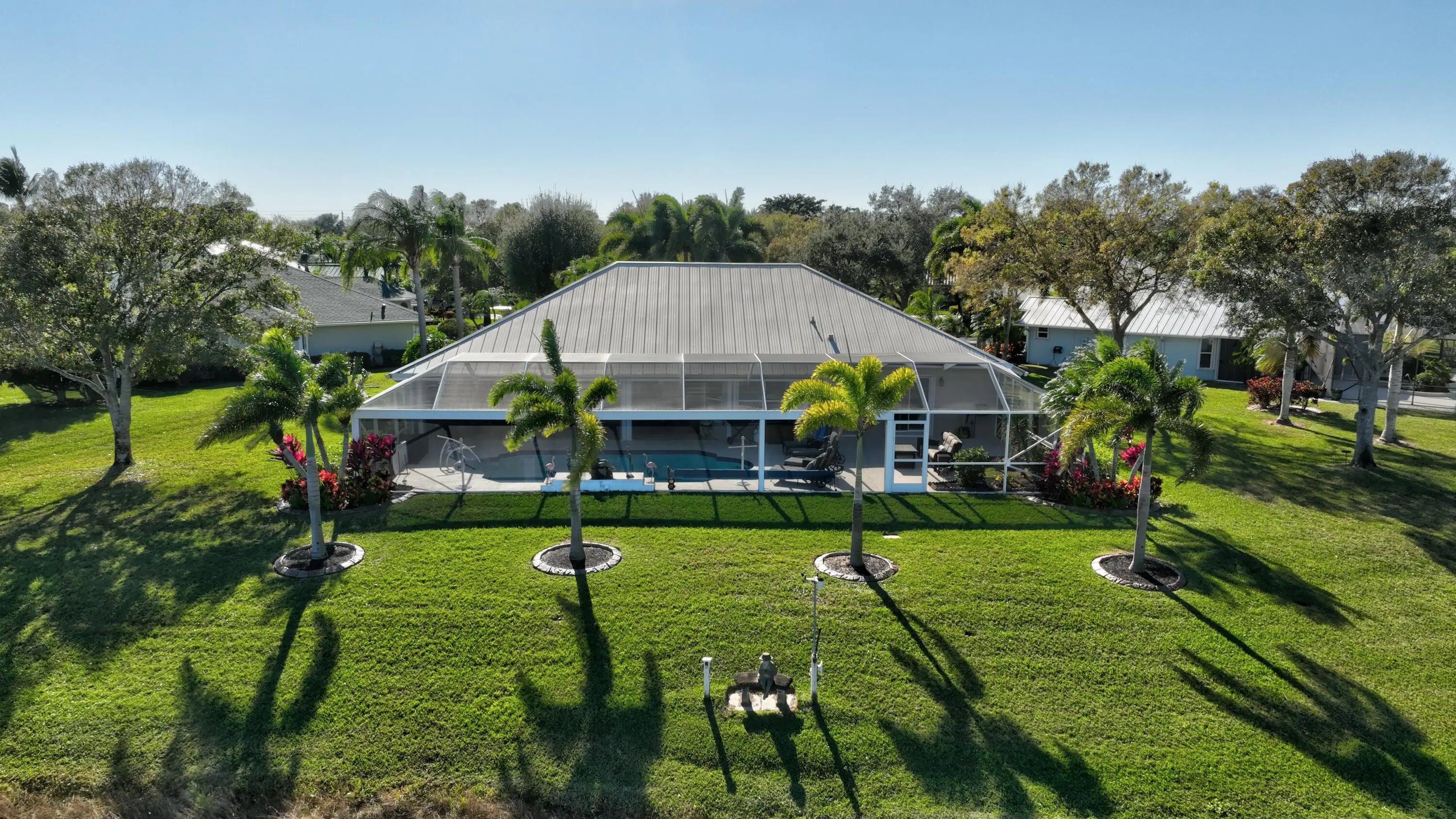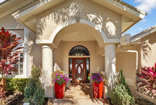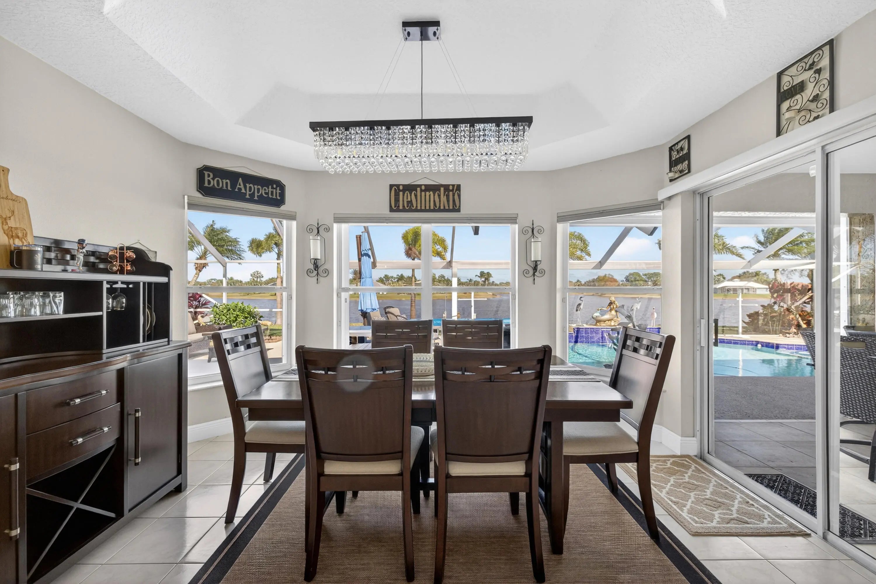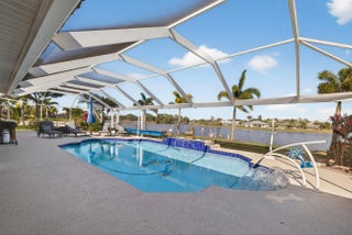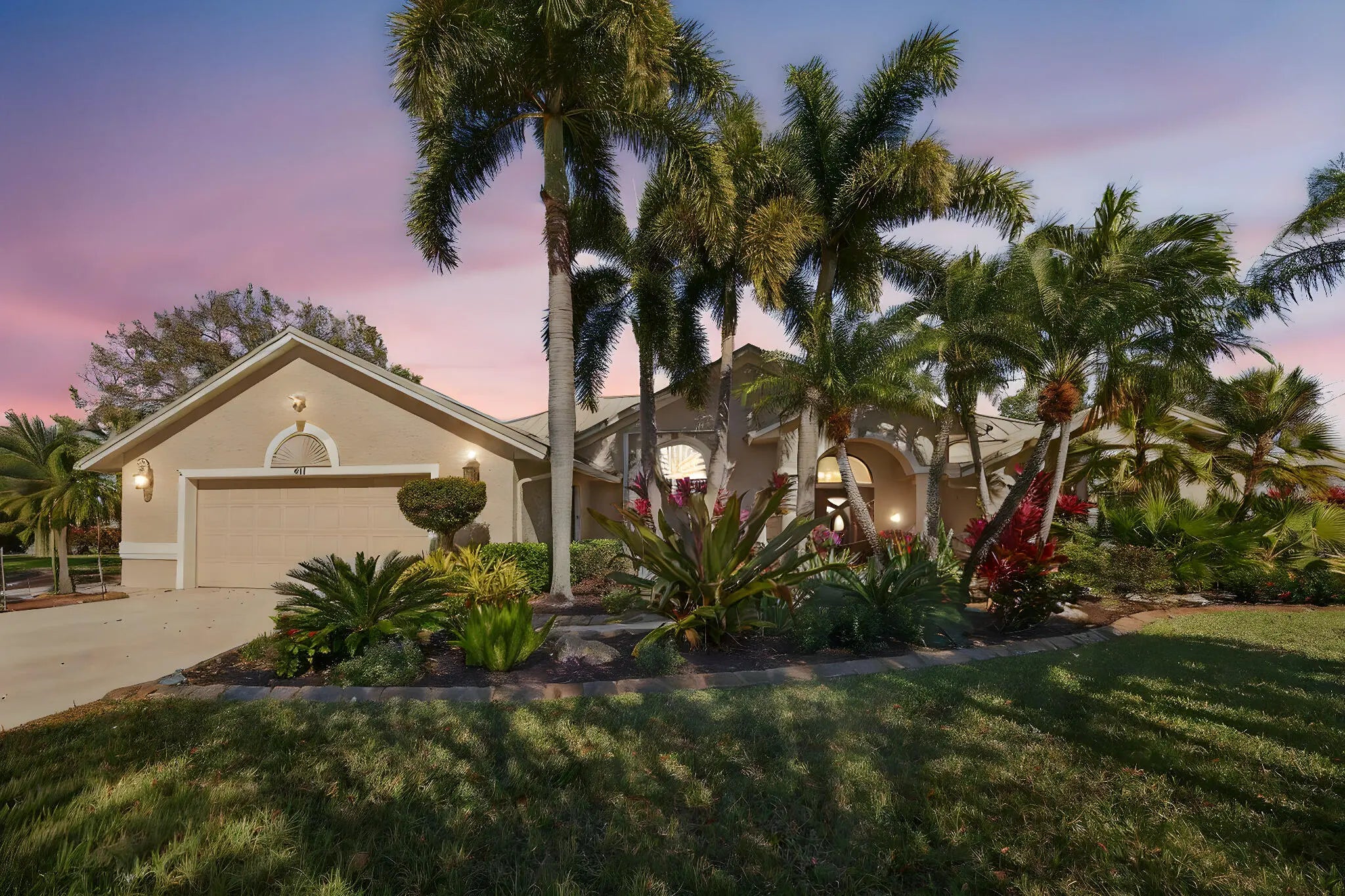 Welcome to your own lakeside sanctuary, where every day feels like a getaway. Nestled at the end of a quiet cul-de-sac, this beautifully upgraded 1-story, 3-bedroom + den/office home offers the perfect balance of comfort, style, and Florida charm, all set on a rare ½-acre lakefront lot with panoramic water views. Step inside to discover light-filled living spaces with thoughtful updates throughout, including a brand-new spa-inspired primary bath with soaking tub, towel warmer, and separate shower. The open-concept layout flows effortlessly from the great room (featuring elegant tray ceilings) to the sleek, upgraded kitchen complete with Samsung satin steel appliances, granite countertops, double oven, solid oak cabinetry, and a trash compactor. Hosting is a breeze with sliding pocket doors that open fully to a freshly resurfaced cool-deck patio and a sparkling heated saltwater pool, recently refinished with new tile and enhanced with panorama screens for unobstructed lake views. A convenient poolside half-bath adds function to the fun. Additional highlights include: Den/office with Murphy bed for flexible guest space Oversized 2-car garage with storage cabinets and attic access New metal roof (2017) Honda Generator Lush custom landscaping and exterior lighting Concrete block construction for lasting peace of mind Freezer in Garage Stays Accordion Shutters Throughout Heated Salt Water Pool Pool Resurfaced including new Tile Patio Enclosure re-screened and painted New Samsung Satin Stainless Appliances Custom Closet Organizers New Hurricane Proof Mahogany Front Door New Ceiling Fans and Lighting Laundry Room Upgraded with Cabinets and Sink Resurfaced Driveway 6" Baseboards Throughout Solid Oak Cabinets in Kitchen Premium 1/2 Acre Waterfront Lot Home Warranty Located in a private gated community with scenic water views and storage area for your RV or Boat. This home isn't just a place to live, it's a place to thrive. Whether you're sipping morning coffee by the lake, entertaining poolside, or simply enjoying the serenity of your surroundings, this home delivers a lifestyle that's as elevated as it is effortless.