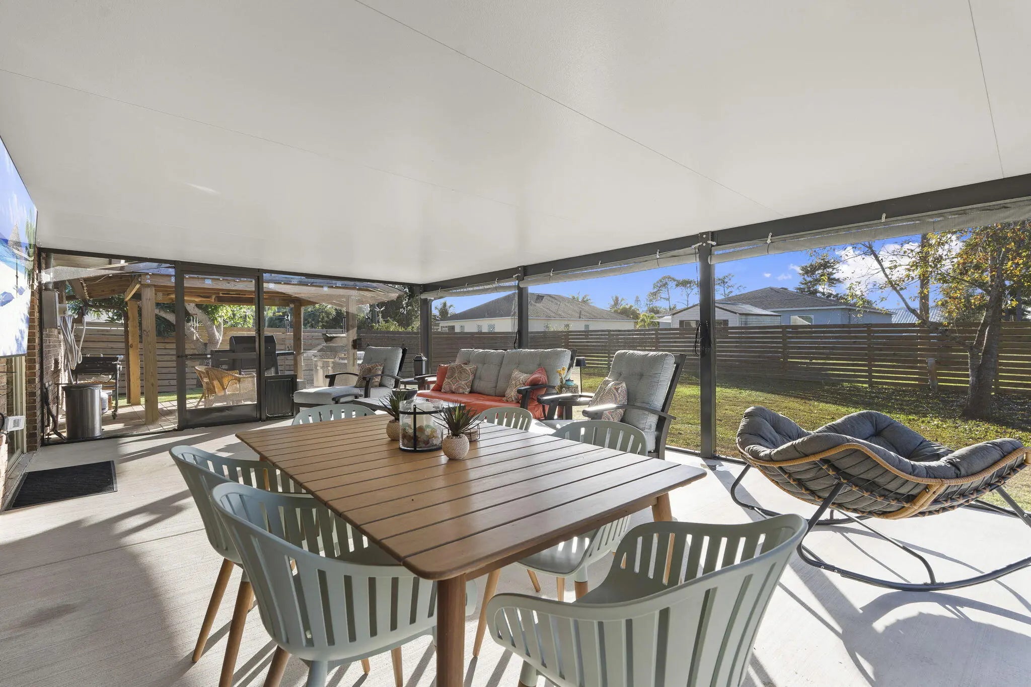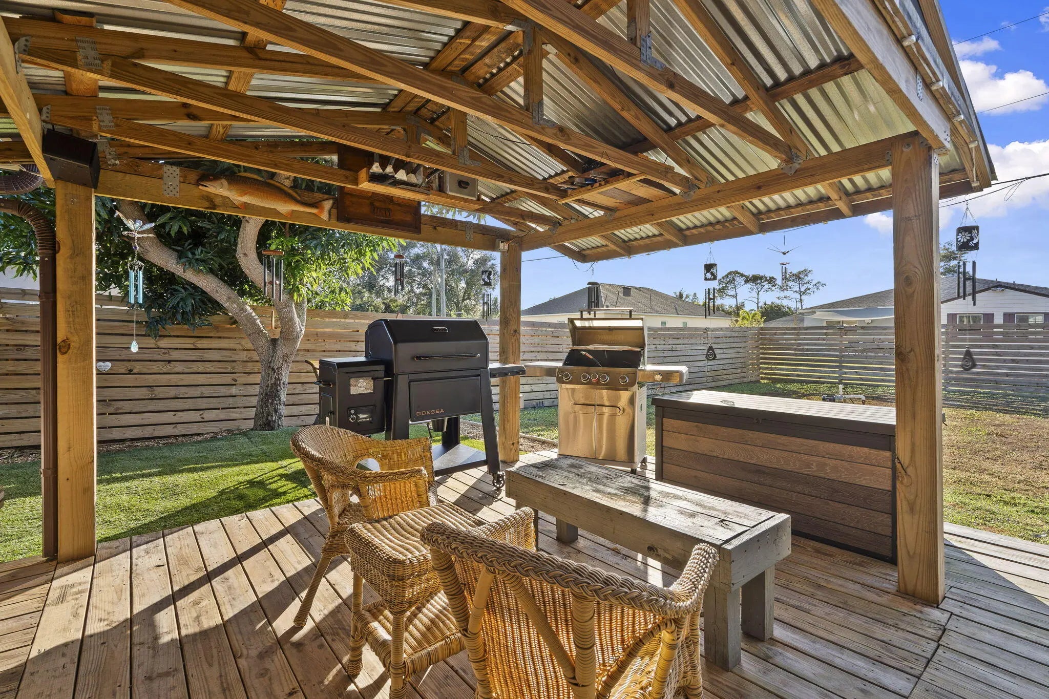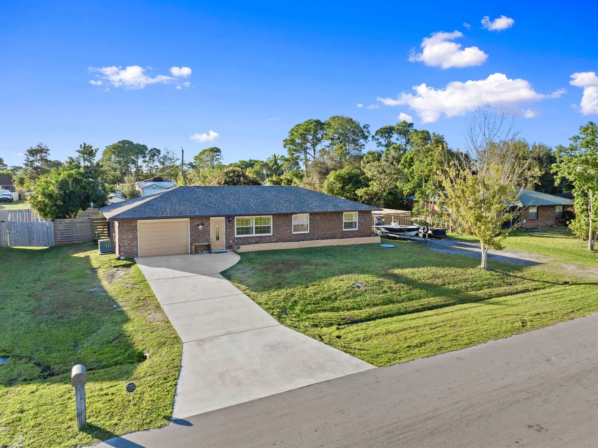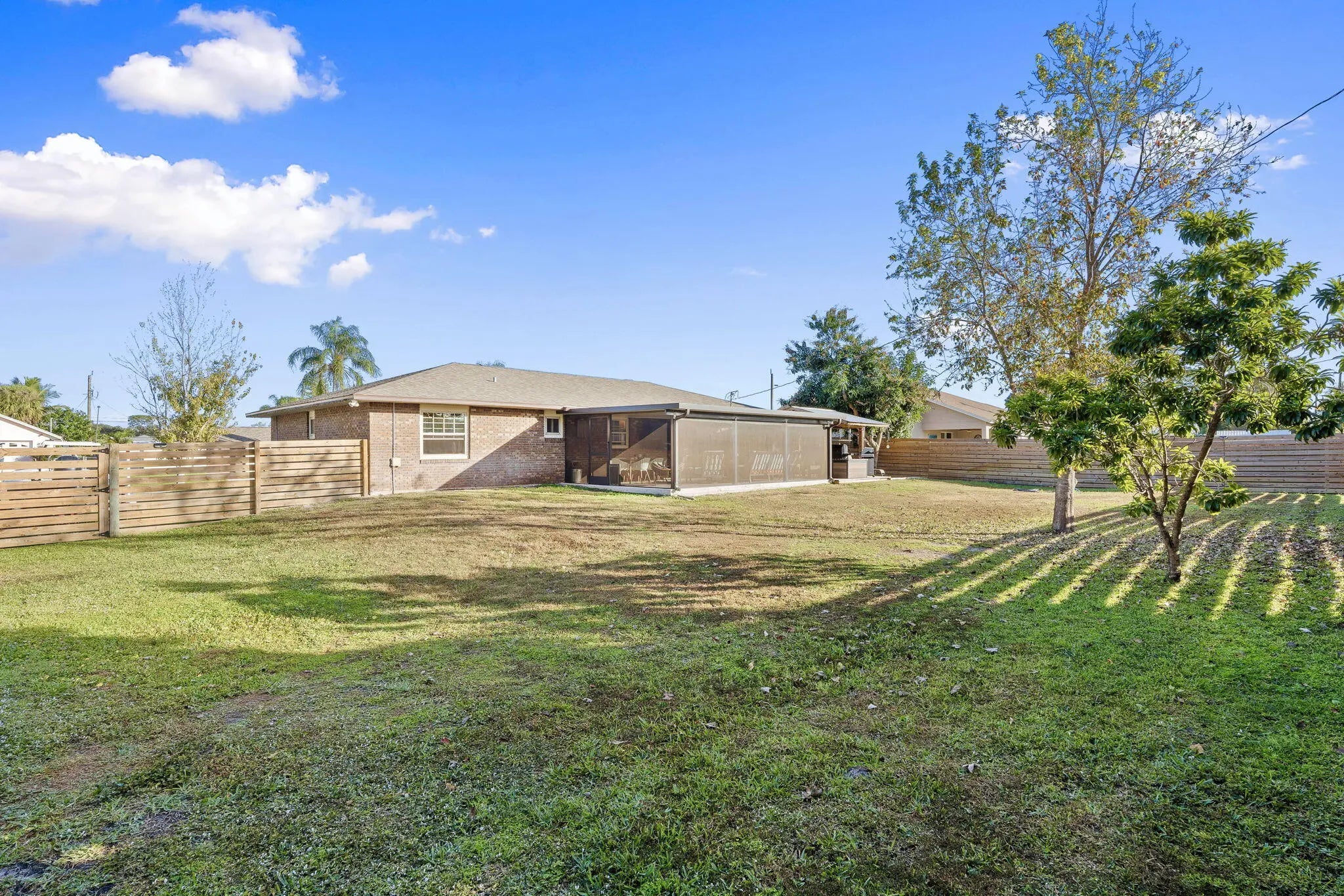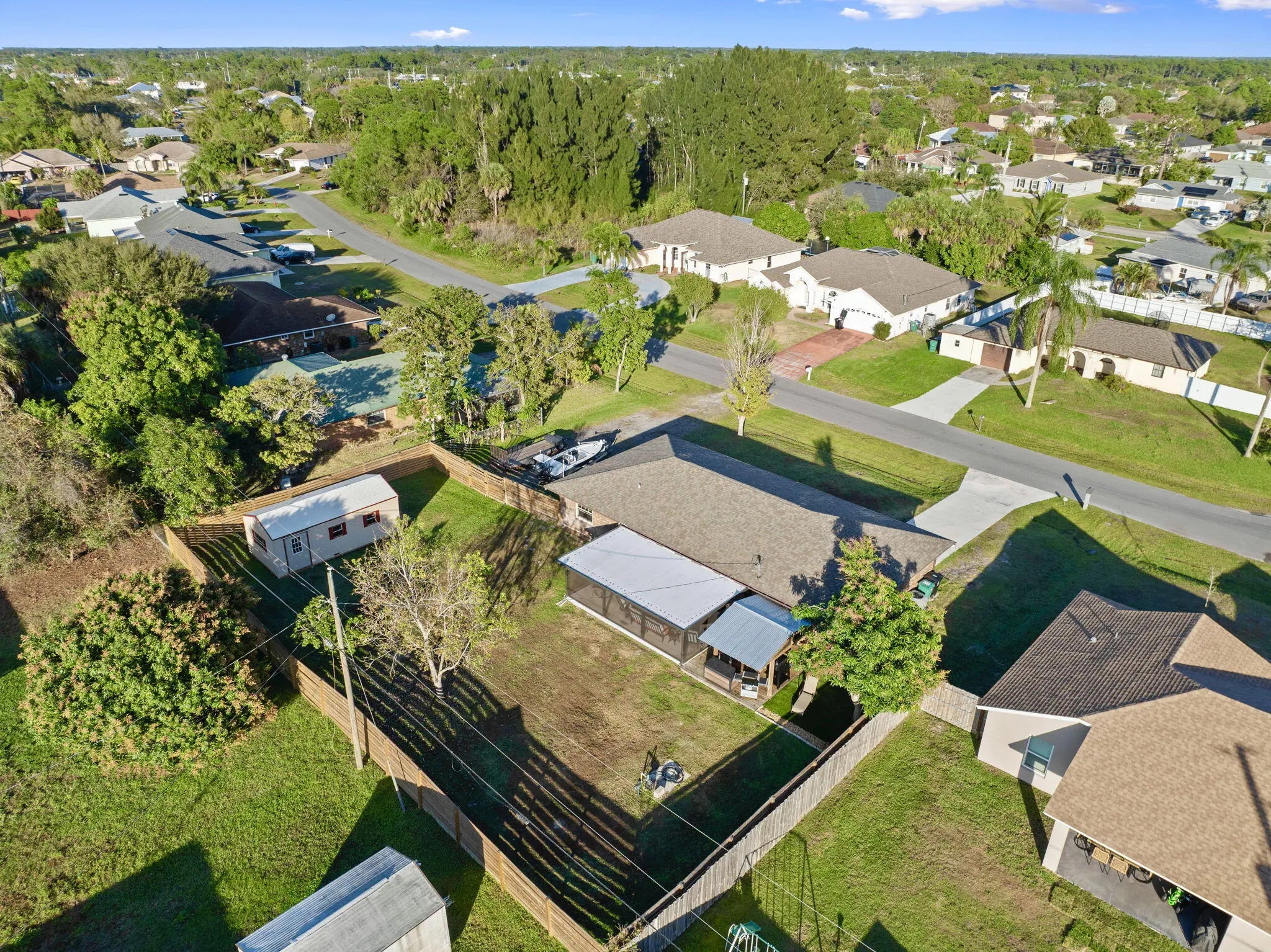This Home offers a comfortable and functional layout with generous indoor and outdoor space, designed for everyday living and long-term use. Inside, the home features a practical floor plan that flows naturally from room to room, providing flexibility for both daily routines and entertaining. The kitchen has been updated in recent years with granite countertops and durable finishes, offering a clean, functional workspace that connects easily to the main living areas. Tile and laminate wood flooring throughout the home add durability and ease of maintenance. A full laundry room with a mud-room-style bathroom located just off the garage creates a highly functional transition space — ideal for busy households, projects, or coming in from the yard without tracking through the home. The backyard is where this property truly opens up. Fully fenced for privacy, the outdoor space includes a dedicated gazebo grilling area well-suited for gatherings or quiet evenings. Mature fruit trees add character and shade, creating a yard that feels established and usable rather than overbuilt. Side-yard access with a culvert and double gate provides valuable flexibility for storage, recreational equipment, or future needs. A 12x24 shed with power further enhances the versatility of the property. Additional improvements include a newer roof and a yard layout that supports a variety of lifestyles, hobbies, and uses. This home offers a strong balance of comfort, function, and outdoor space, with features that support real living rather than short-term trends. Conveniently located in Port St. Lucie with easy access to shopping, dining, and major roadways.