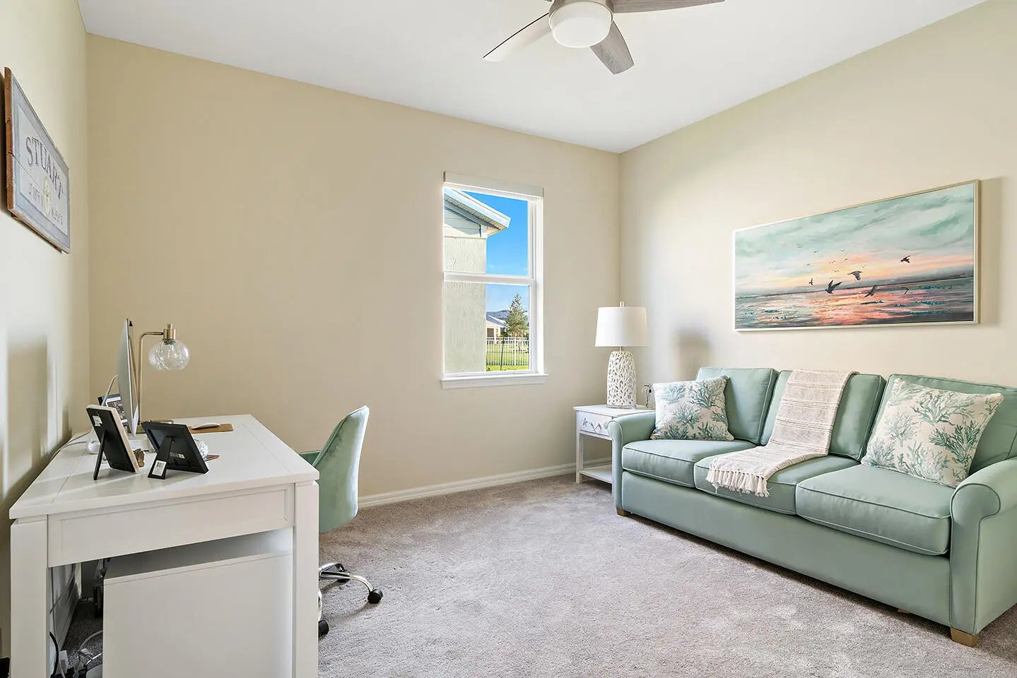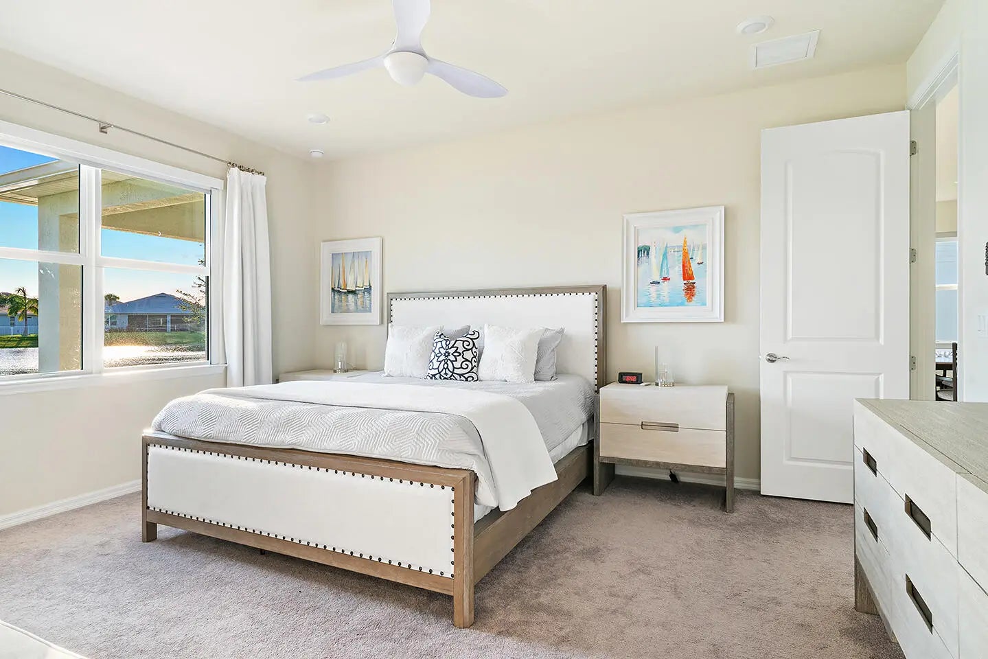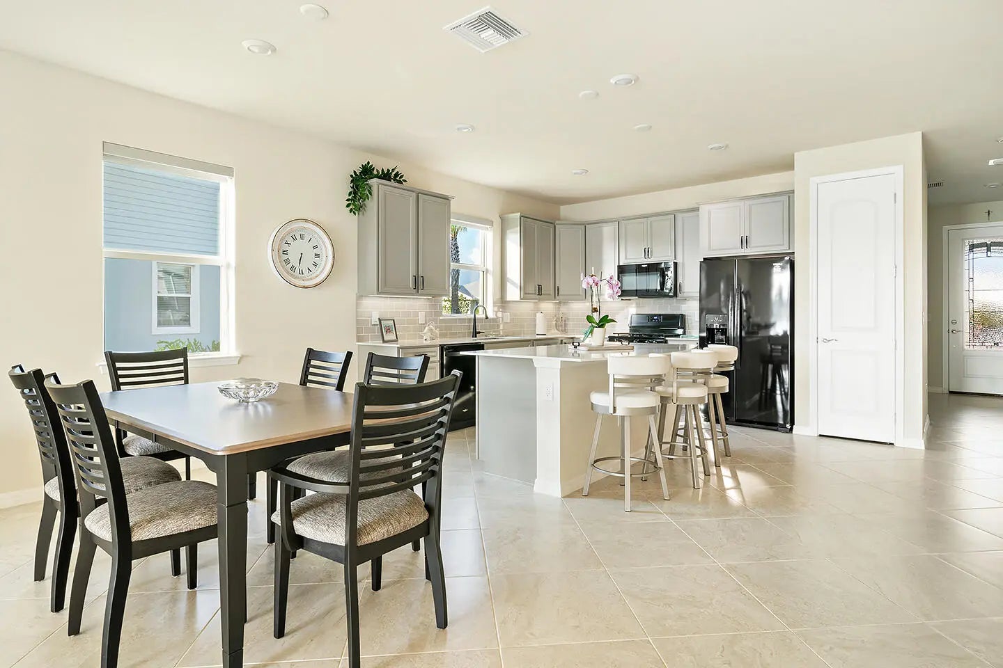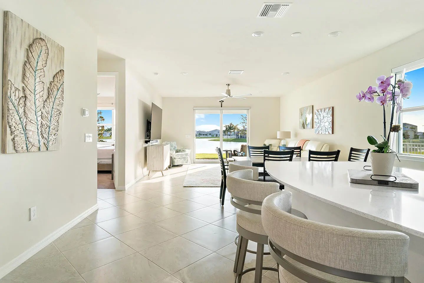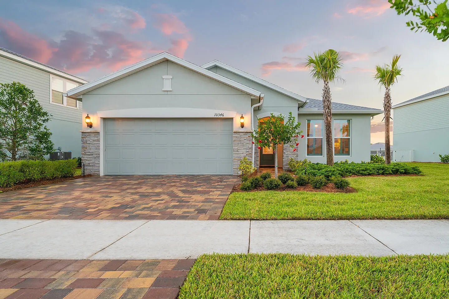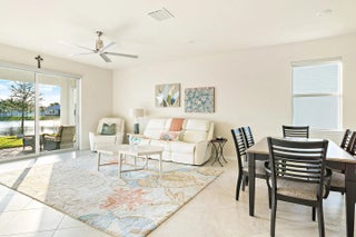 This impeccable residence in Heron Preserve at Tradition, built in 2022. Skip the hassles and challenges of building your home. Your home's location is the focal point; the impressive water and Florida sunset views from the kitchen, living, and primary bedroom are sensational. The residence has been generously improved with over $55,000 in upgrades. Request PDF for the complete list. The most notable are the waterfront lot, 21x21 tile on the diagonal, 8' interior doors, decorative front door, additional LED lighting, 4' garage extension, 42'' cabinets, tile on the diagonal, exterior lighting, a hardwired Wi-Fi extender in the patio ceiling fan, and motorized blackout shades in the primary bedroom and living room sliding glass doors, Pottery Barn drapes, and a patio privacy shade. Your master association fee is $195.89 monthly and includes cable, home phone, and internet. Your neighborhood HOA fee is $691 per quarter and includes complete lawn maintenance, lawn cutting, edging, irrigation, pruning and trimming of trees, replacement of dead or diseased trees and foliage, annual mulch, and fertilizer.