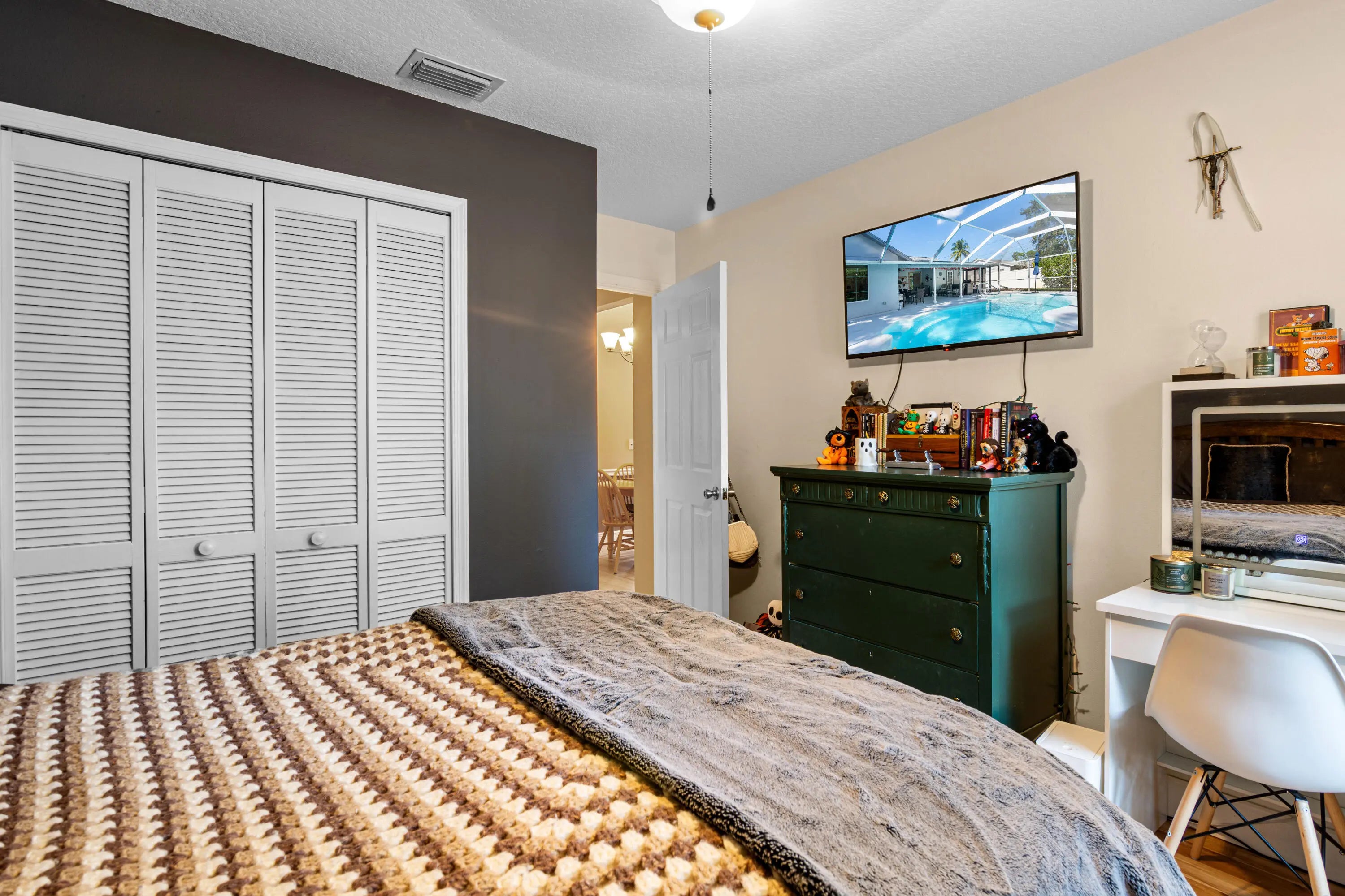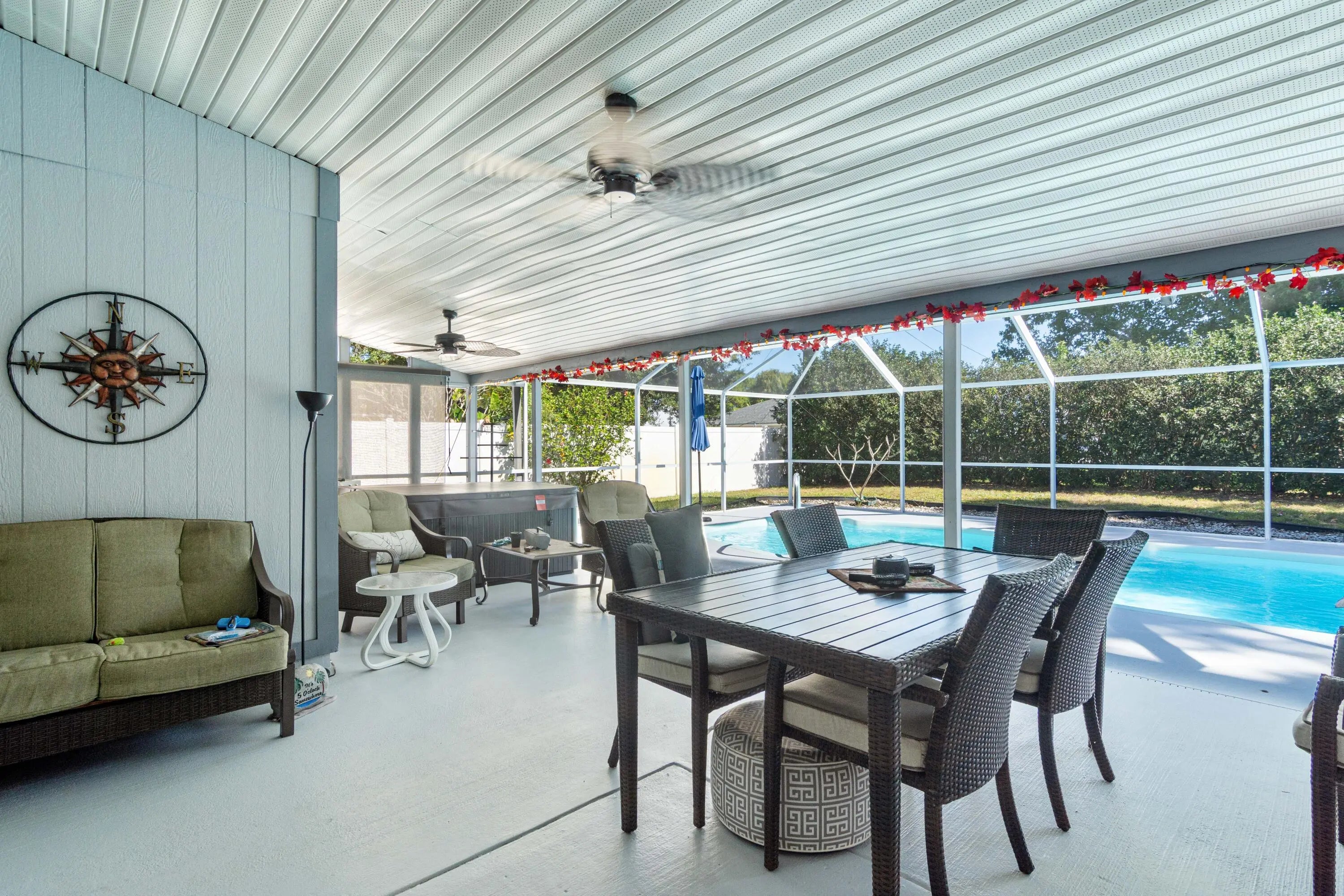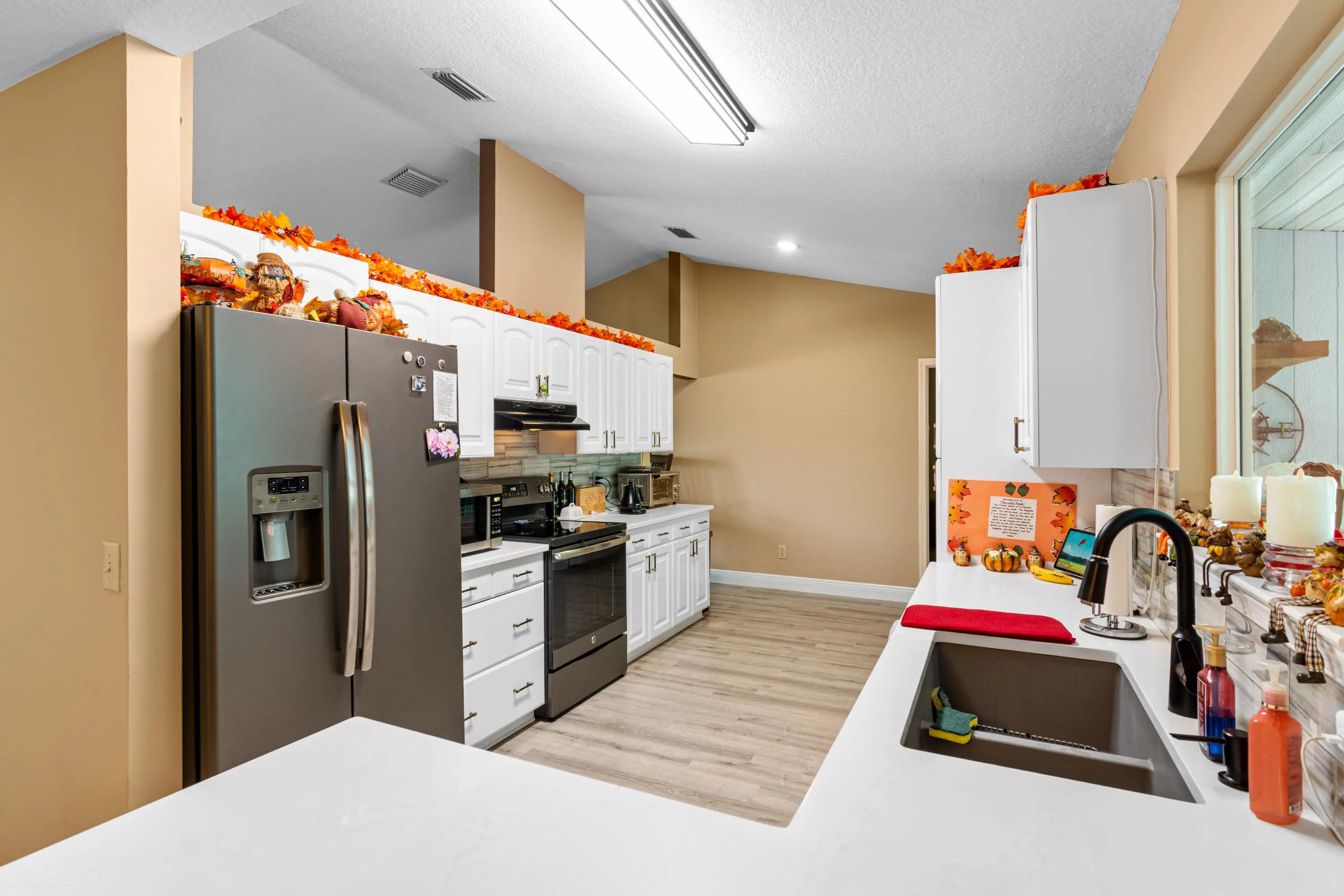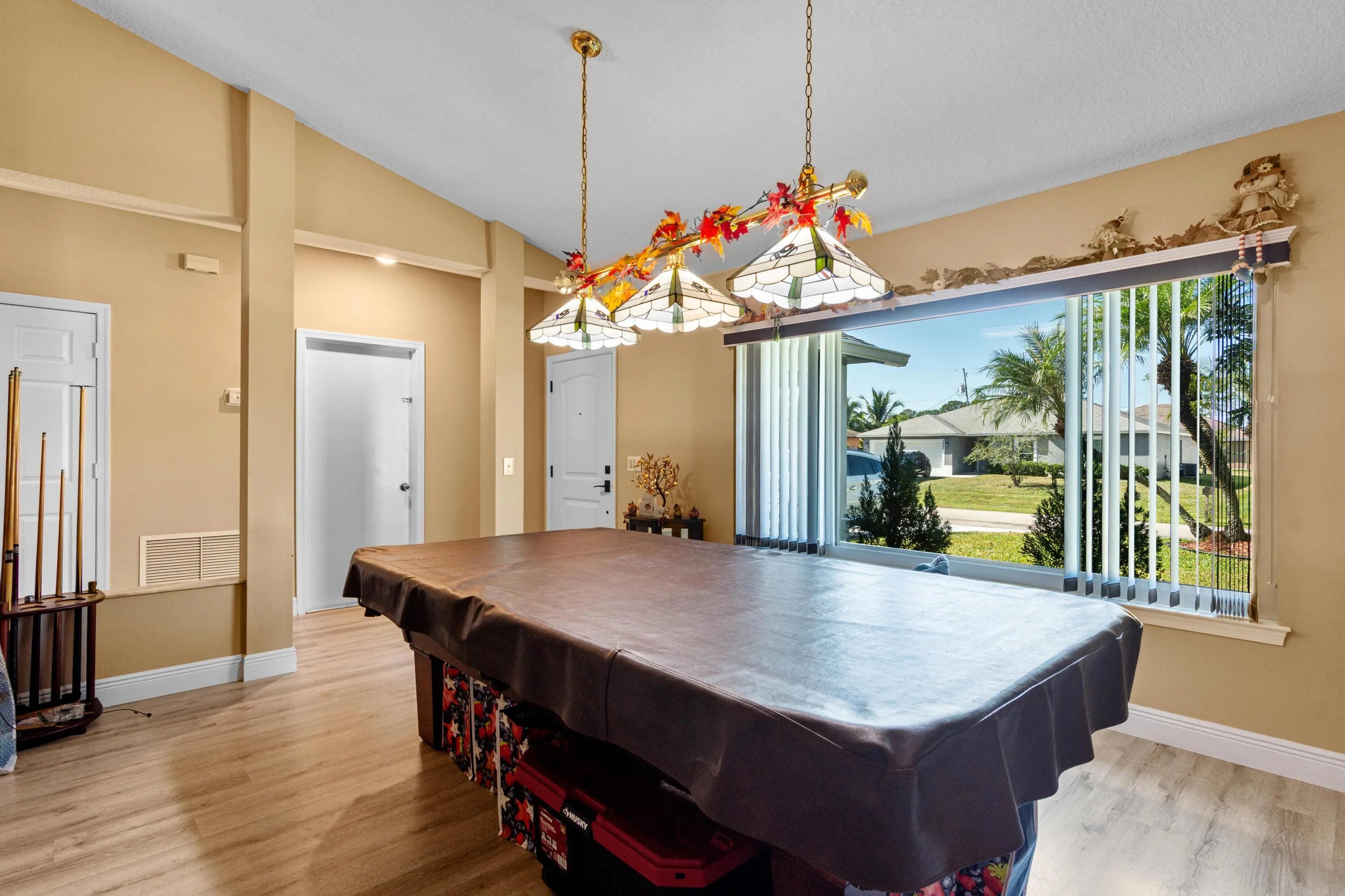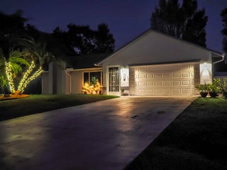 Make this your new home!!! With an open concept area between kitchen, dining and family area, along with an ample size area that could be a formal dining room, den or presently a game room. Many updates performed over the years, making this a very warm and inviting home. In 2021, Impacted Windows were installed, custom wood windowsills at each window, home beautifully stuccoed and painted with premium materials, AC and Hot Water Heater were replaced, and Laminate Flooring throughout the entire home. In 2023, New Roof along with aluminum soffit, gutters, solar vent (for energy conservation), White Vinyl Fencing with oversized gates on each side of home were installed, back fencing is a 6 foot chain link boasting a beautiful Night Jasmine Hedge allowing privacy and landscape. Resurfaced Fiberglass Pool with new pump and filter canister. Child Safety Fence is available for the possibility of young children and pool safety. Pet friendly area on side of home, giving everyone a place. In 2025, new Quartz kitchen countertops and under mount sink in the expanded Galley Kitchen installed. Beautiful knockdown ceilings throughout the home. New Quartz countertops in the master bathroom. Designer cabinet and Mirror. Rain Head Shower. Second Bath remodeled in 2023. Smart Outdoor Outlets for seasonal lighting. Pull down Stairs for easy Attic access. Great location, near I95 and Fl Turnpike. Publix 5 minutes away, 10 minutes to Tradition and nearby Hospital.