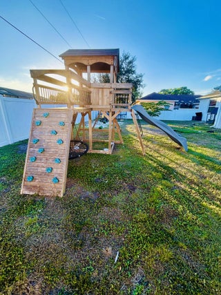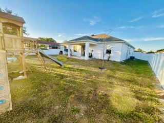 Welcome to this 2022-built gem spanning 1,869 sq. ft., Step inside this spacious 4-bedroom, 2-bathroom home to find a bright, open floor plan featuring durable vinyl flooring throughout the main living areas. The kitchen boasts sleek granite countertops and a suite of high-end appliances, including a brand-new dishwasher (Sept 2025). Granite surfaces carry through to both bathrooms, including an updated master suite . Enjoy the Florida breeze on your private lanai, overlooking a backyard and professional playground set secured by a premium vinyl fence. This home also features 8 hardwired security cameras and the added reliability of underground power lines.