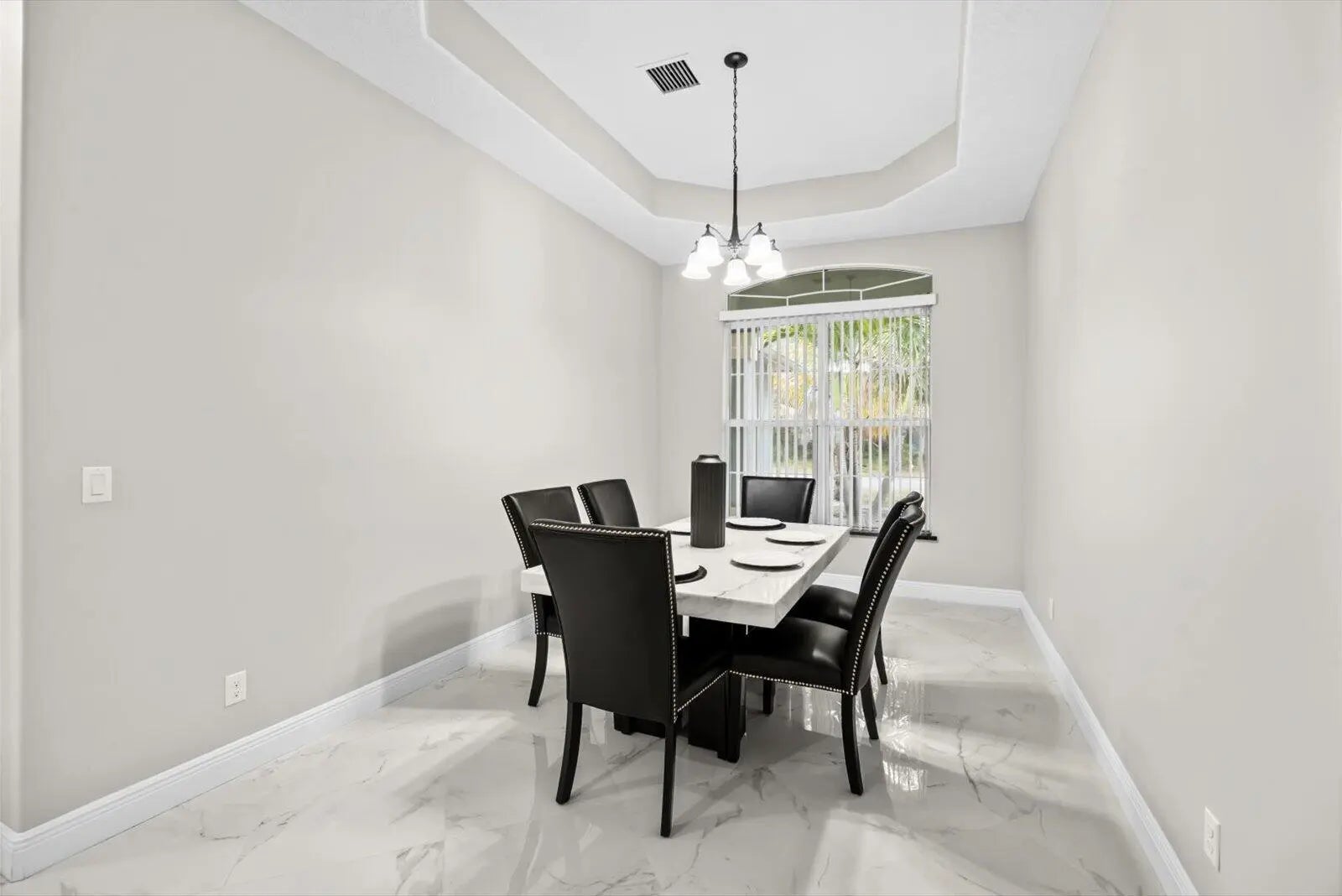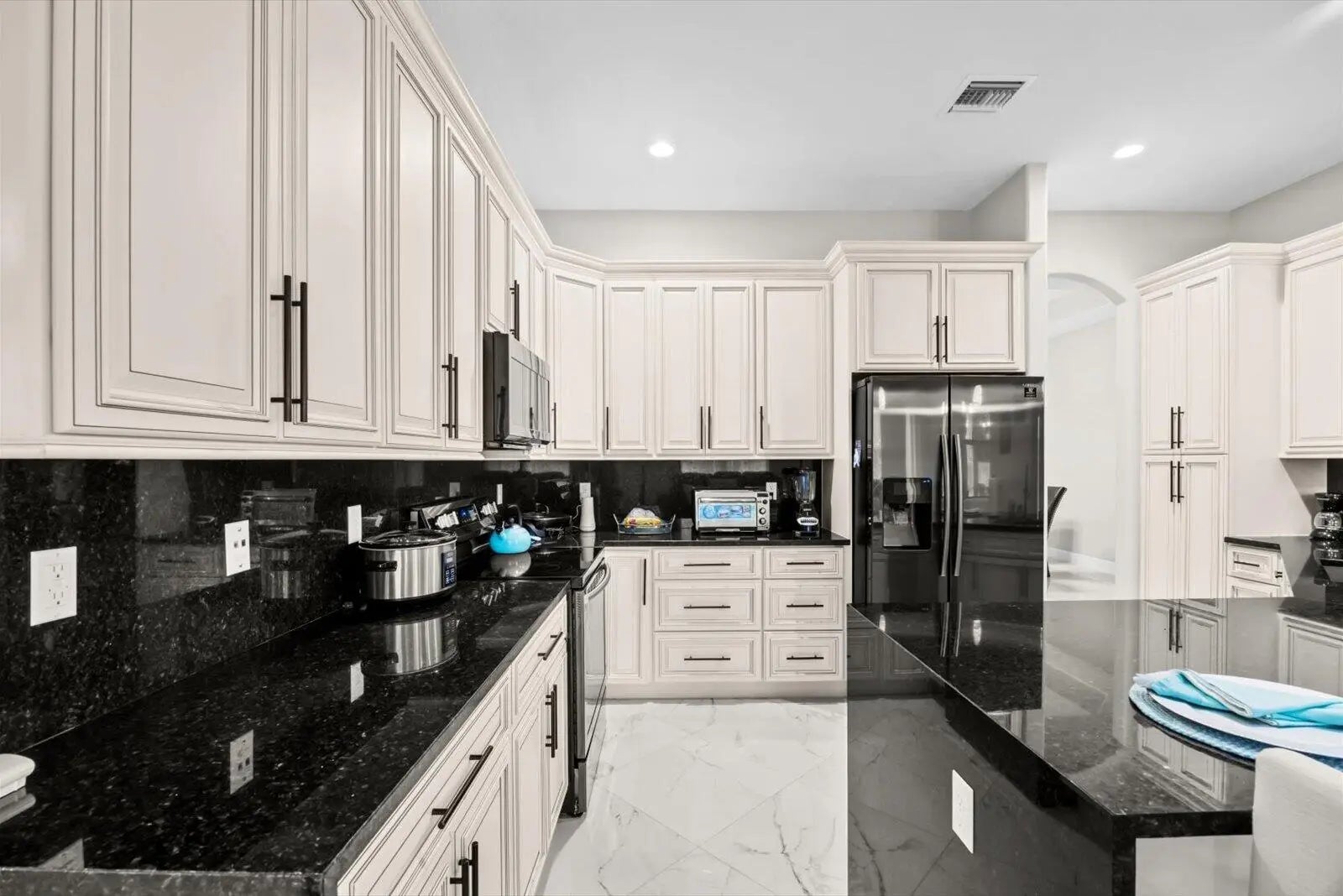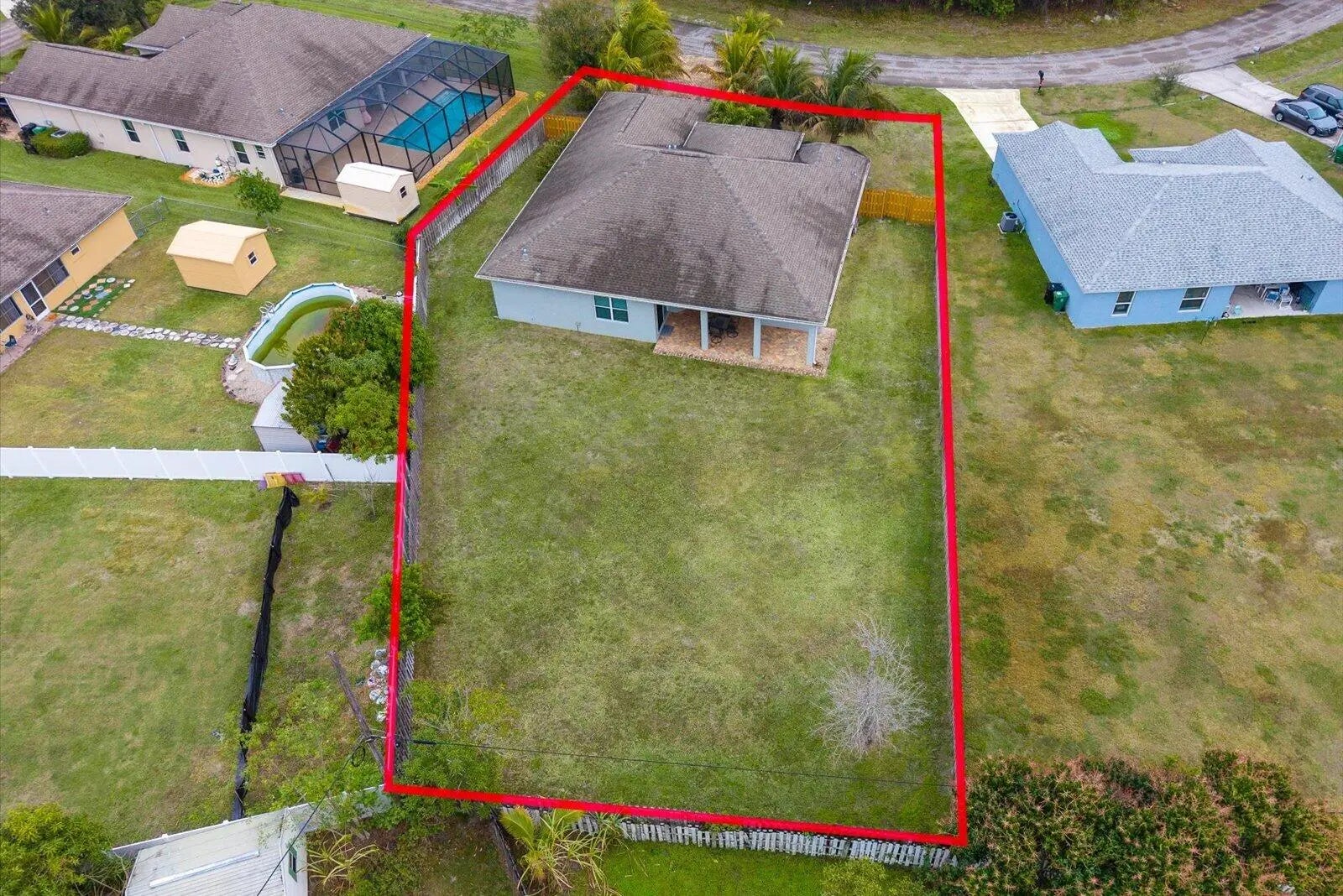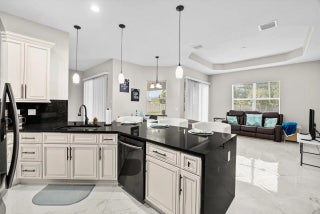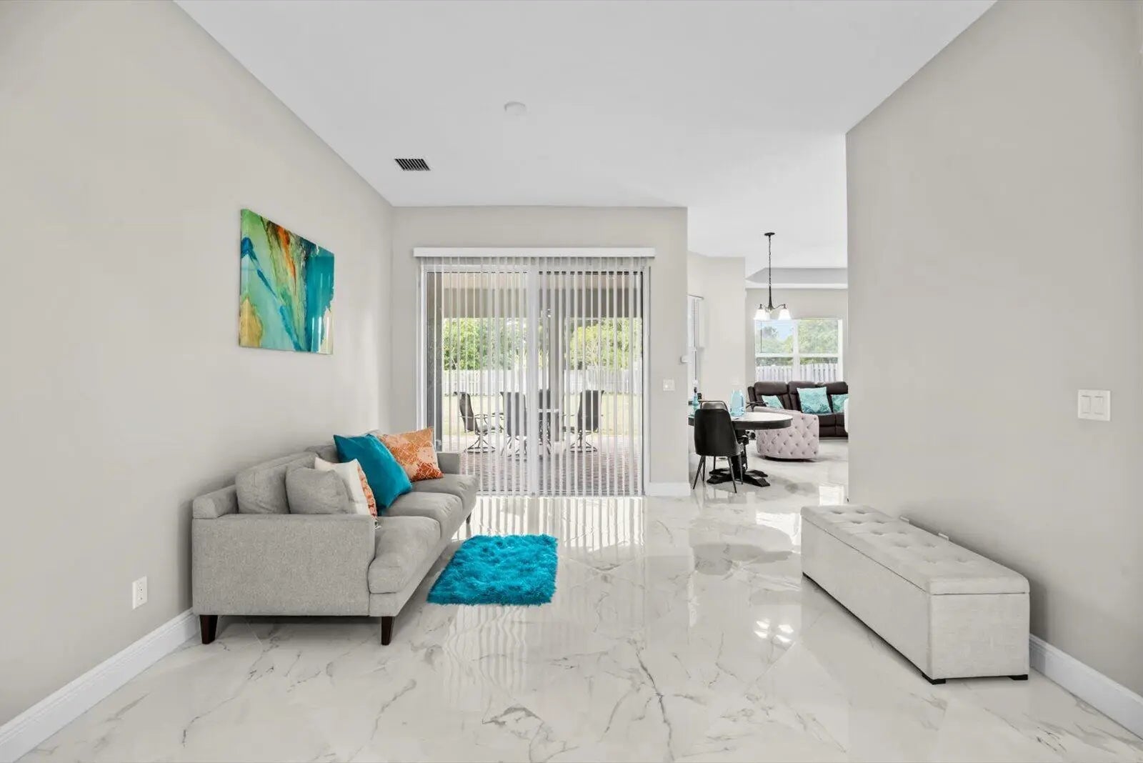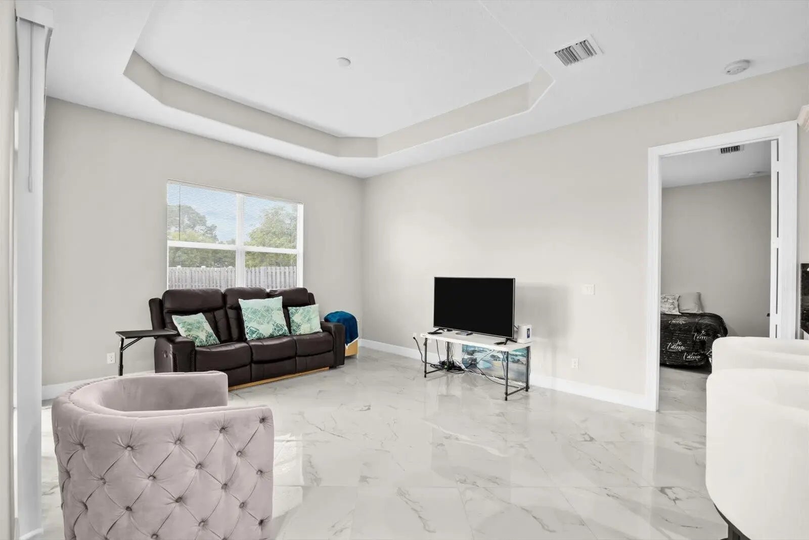 Experience refined Florida living in this elegant 2020 CBS contemporary residence set on a generous 0.29-acre lot in a peaceful Port St. Lucie neighborhood with no HOA. This impeccably maintained single-story home offers 4 bedrooms, 3 baths, and 2,536 sq ft of thoughtfully designed living space with a desirable split-bedroom layout. The open-concept interior features ceramic tile flooring, a chef-inspired kitchen and breakfast area, and expansive living and family spaces ideal for entertaining. The primary suite is a private retreat with dual vanities, a spa tub, and a separate shower. Outdoors, enjoy a fenced backyard with fruit trees, a covered patio, garden views, and ample room for a pool. Enhanced by a metal roof, full panel shutters, a security system, and a 2-car garage.