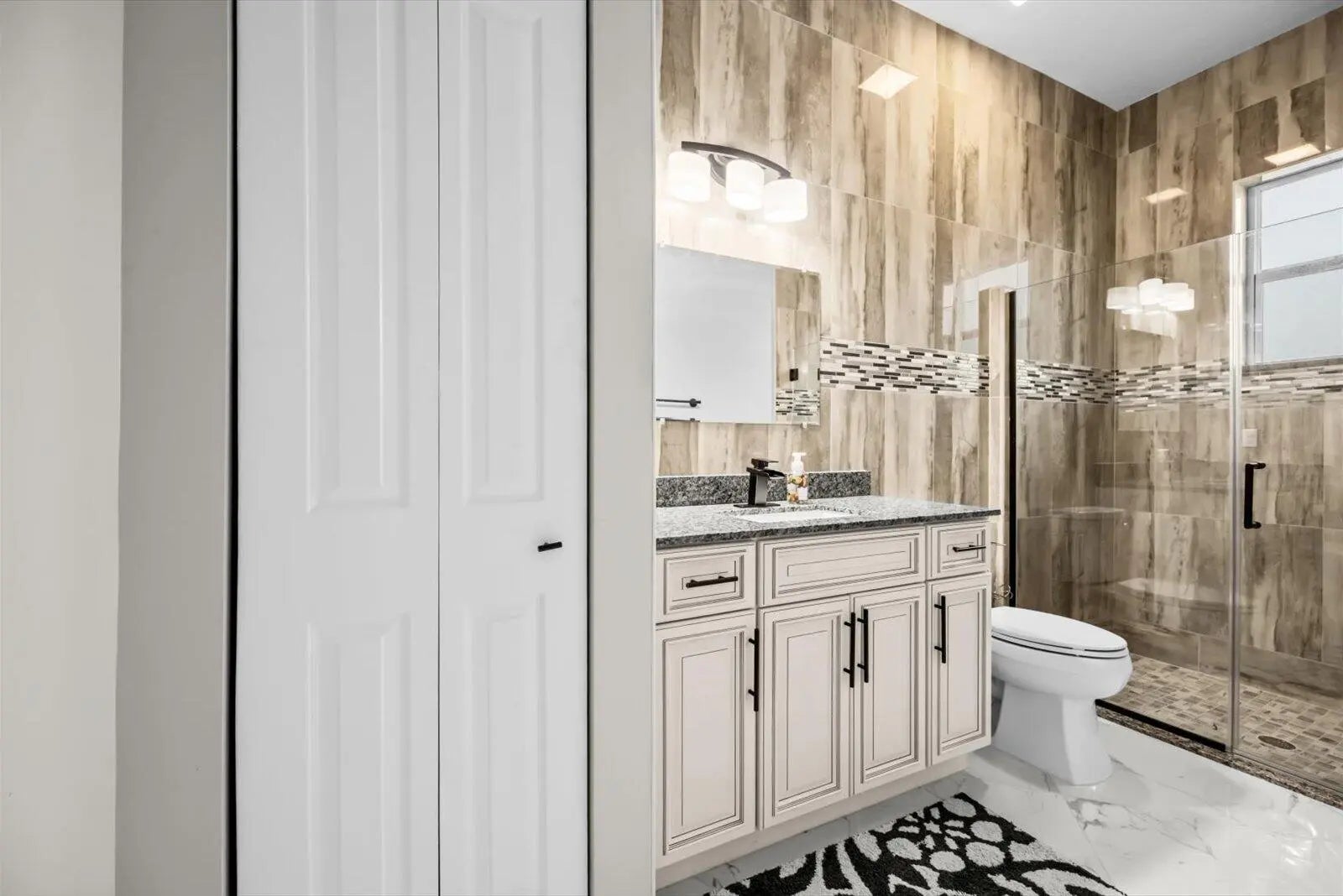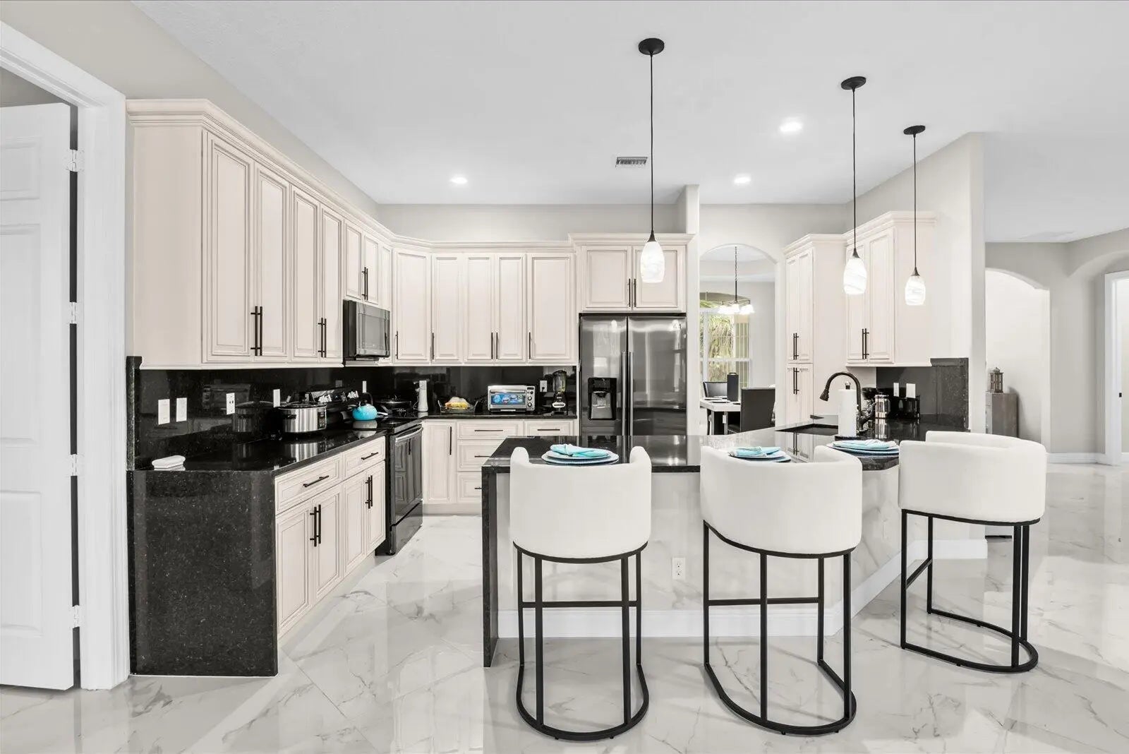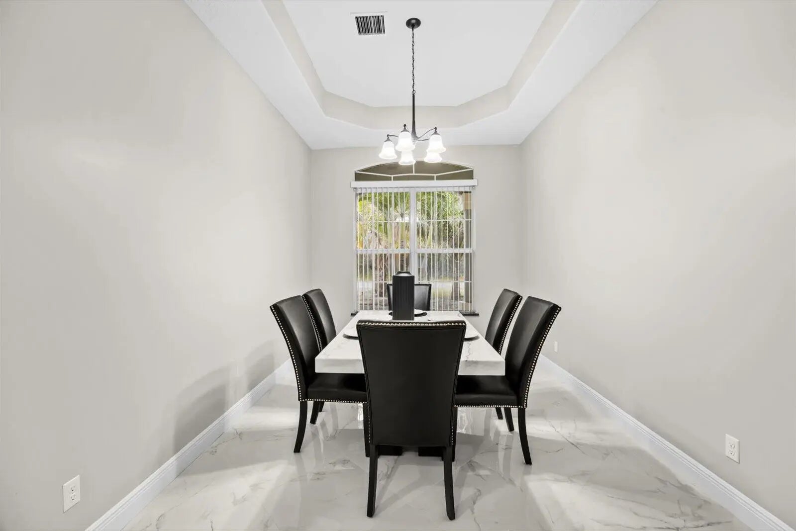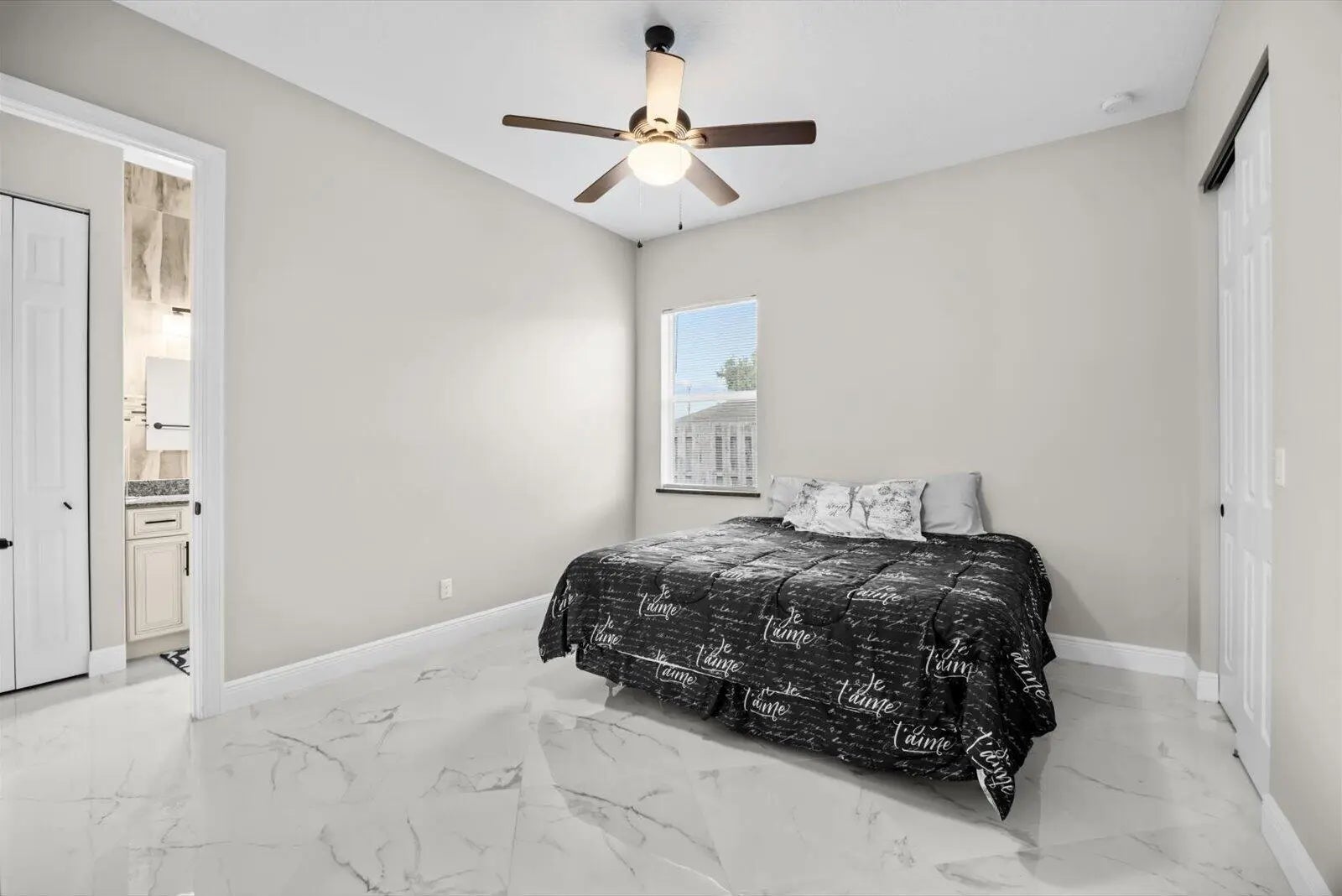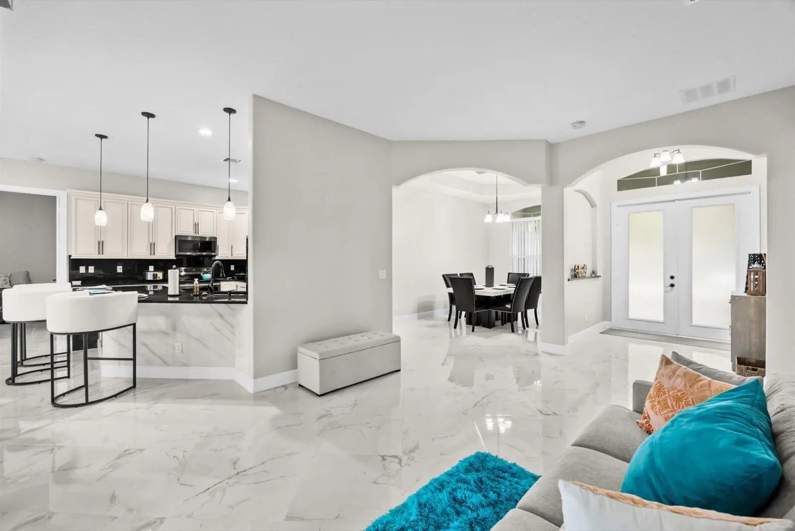 Experience refined Florida living in this elegant 2020 CBS contemporary residence set on a generous 0.29-acre lot in a peaceful Port St. Lucie neighborhood with no HOA. This impeccably maintained single-story home offers 4 bedrooms, 3 baths, and 2,536 sq ft of thoughtfully designed living space with a desirable split-bedroom layout. The open-concept interior features ceramic tile flooring, a chef-inspired kitchen and breakfast area, and expansive living and family spaces ideal for entertaining. The primary suite is a private retreat with dual vanities, a spa tub, and a separate shower. Outdoors, enjoy a fenced backyard with fruit trees, a covered patio, garden views, and ample room for a pool. Enhanced by a metal roof, full panel shutters, a security system, and a 2-car garage.