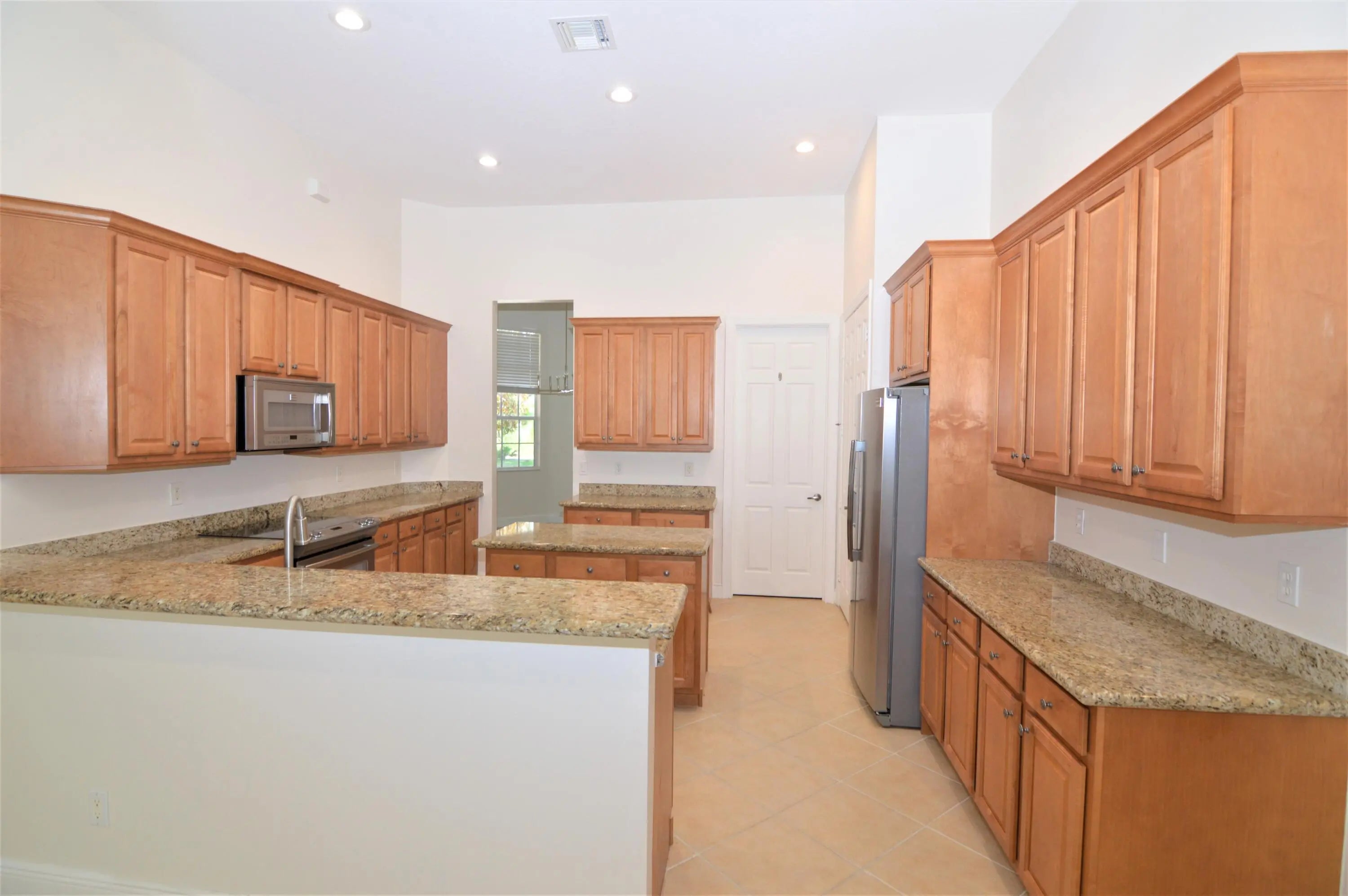 3/3/den POOL home in PGA with wide view of the golf course. You can get comfortable in 2600 sqft of living area. It's light and bright throughout the home. Expansive living room leads to bricked pool/patio area. Check out the huge kitchen with a multitude of cabinets, granite counters, a cook's island and very nice appliance package. Formal dining is conveniently close by. Relax in the spacious family room offering plenty of space for your big screen entertainment center. It also opens to the pool/patio area. Generous size main suite boasts his/her closets, his/her vanities, garden tub and separate shower.