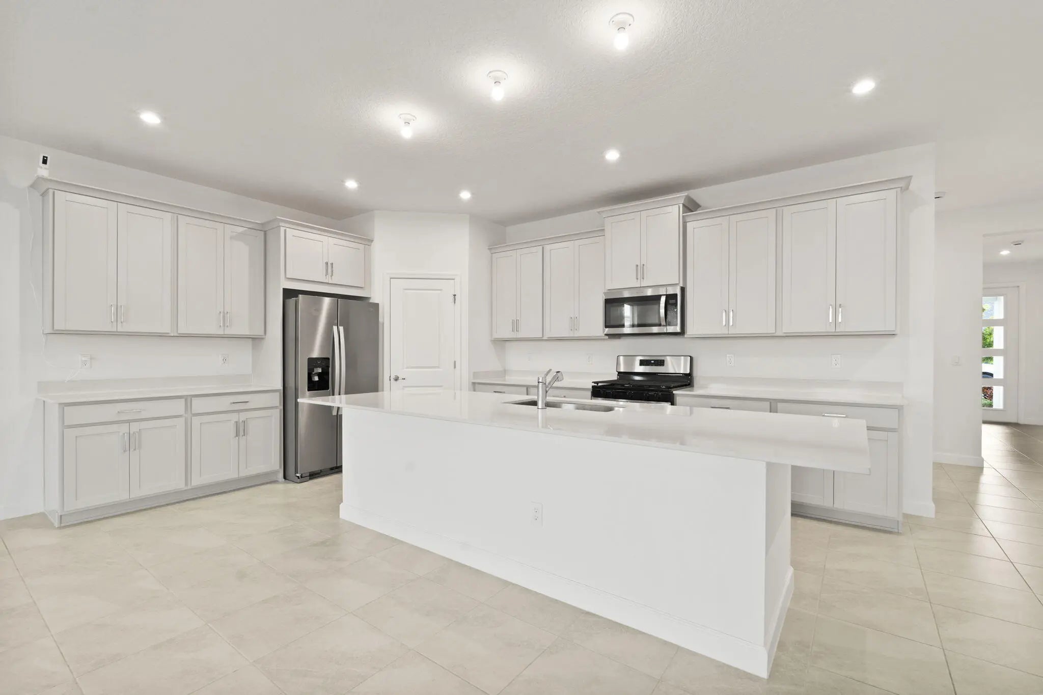 Newer 2025 CBS home in Tradition!!! Less than a year old and just steps from Tradition's newest park! Stunning Gateway model on a lakefront lot with an open, airy layout, tall ceilings, and peaceful water views. This 4-bedroom, 3-bath home features impact windows and doors, gourmet kitchen with quartz countertops, stainless appliances, gas stove, walk-in pantry, pull-out drawers, and a large island—ideal for everyday living and entertaining. Split floor plan with a private owner's suite. Enjoy the extended lanai and fully fenced backyard on the lake—perfect for relaxing or creating your dream outdoor space. Located in Cadence at Tradition with resort-style pools, scenic trails, plus nearby shopping, dining, and walking distance to Tradition Regional Park (Port St Lucie's newest park).