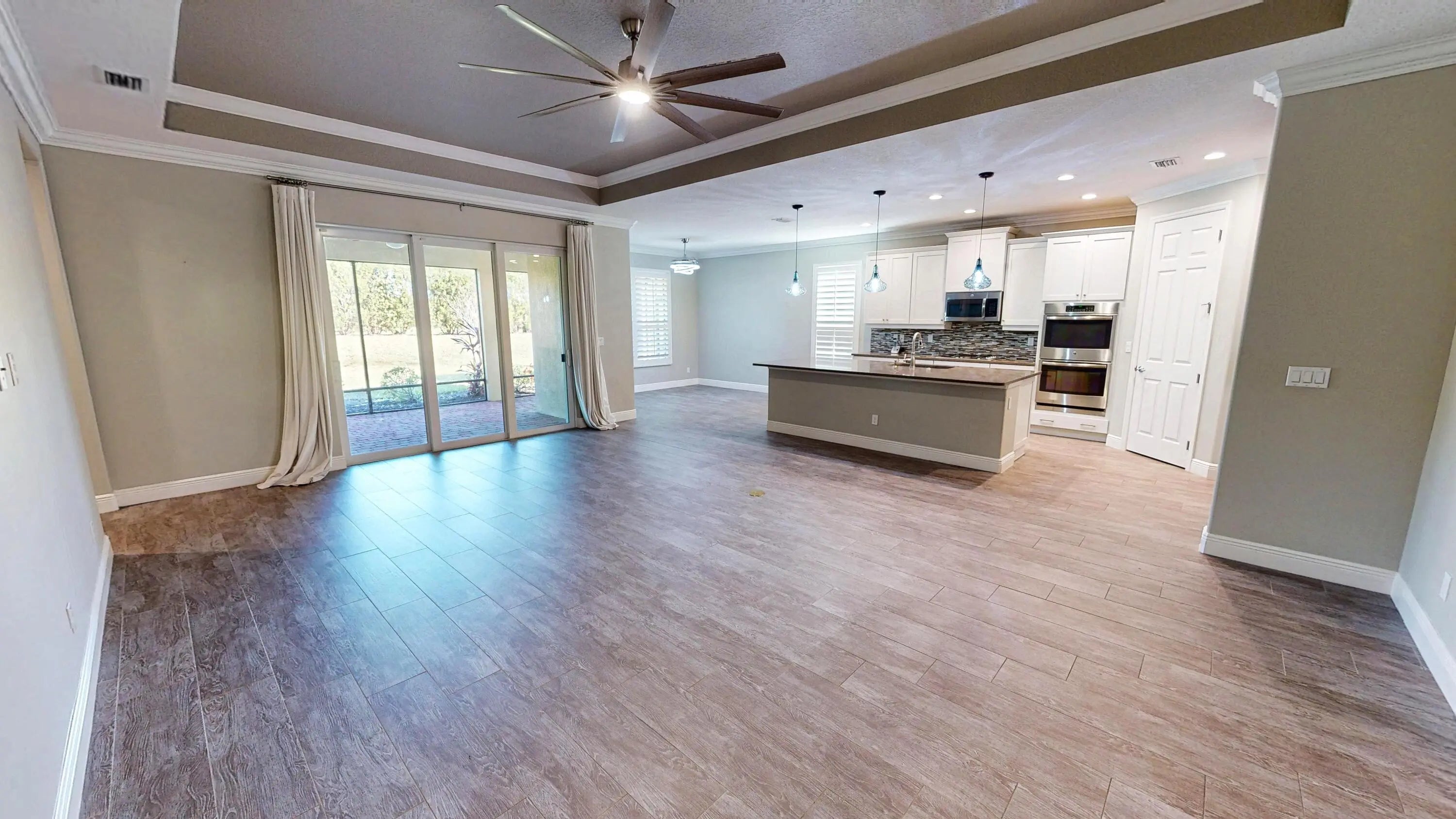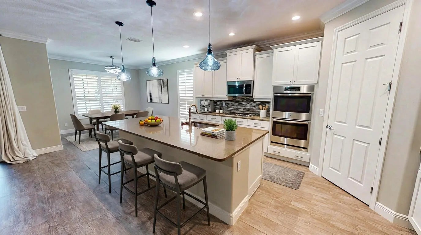Welcome to refined resort living in Vitalia at Tradition, a premier 55+ manned, gated community designed for comfort, elegance, and peace of mind. This impeccably appointed single-story residence offers 3 spacious bedrooms, 2.5 baths, a versatile den/office, and 2,446 square feet of thoughtfully designed living space. Built for both style and security, the home is equipped with a Generac whole-house generator, advanced air filtration system, impact-resistant windows, and classic plantation shutters, ensuring year-round comfort and confidence. A two-car garage with dedicated golf cart parking adds everyday convenience. At the heart of the home, the chef's kitchen impresses with a gas cooktop, double ovens, quartz countertops, stainless steel appliances, and an expansive island with bar seating, perfect for entertaining or casual gatherings. Throughout the home, porcelain wood-look tile flooring creates a seamless, sophisticated aesthetic with no carpet anywhere. The primary suite is a private retreat, featuring a spa-inspired ensuite bath, while guest bedrooms are thoughtfully positioned in a separate wing for added privacy. A flexible bonus room off the living area can easily serve as a home office, den, or additional bedroom. Step outside to relax on the spacious lanai or enjoy the generously sized backyard with room for a future pool, ideal for both lively entertaining and quiet moments of relaxation. Residents of Vitalia enjoy world-class, resort-style amenities, including eight pickleball courts, five tennis courts, a luxurious pool and spa, clubhouse, fitness center, bocce courts, billiards, and more. This is a rare opportunity to experience luxury, leisure, and low-maintenance living in one of Tradition's most sought-after active adult communities.