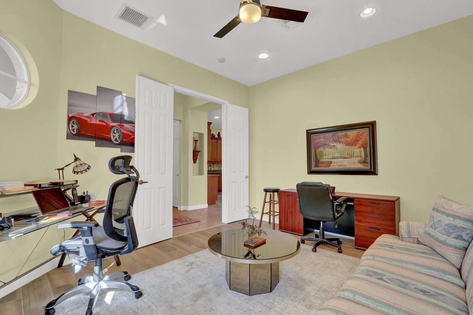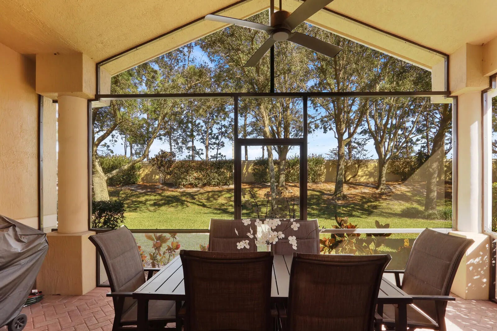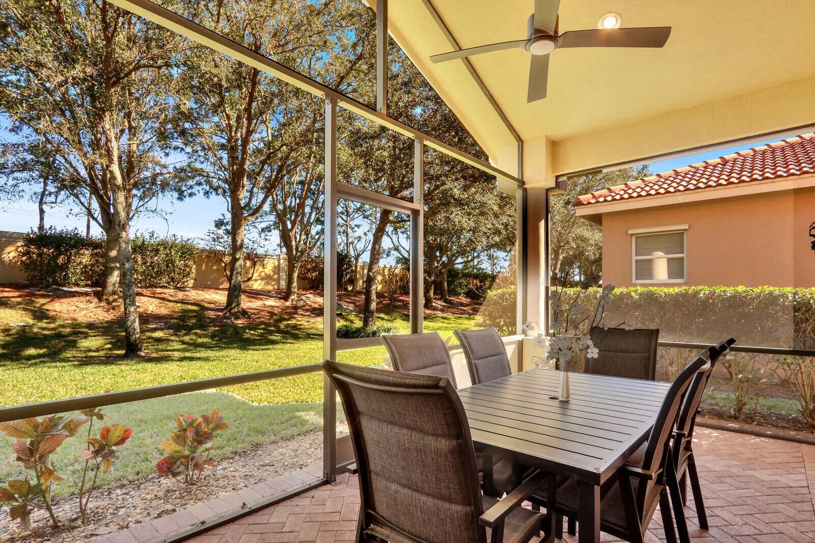 Popular, open floor plan in the PGA Village! with furniture negotiable, and 2 bedrooms plus a large den and 2 baths. The kitchen boasts a newer, top of the line, LG refrigerator and microwave. Granite countertops and 42'' wood cabinets round out this functional kitchen. The spacious main bedroom has 2 large walk-in closets, dual sinks, garden tub and separate shower. Screened patio comes with a grill, table and chairs. The garage has a great epoxied floor. Great opportunity to own a move- in ready home! While the seller prefers to sell furnished/turnkey, the seller is flexible to sell unfurnished as well. Island Club amenities are included in the HOA Fee as is internet, basic cable and lawn care. Golf memberships are optional. Come enjoy the Florida lifestyle in this lovely home!