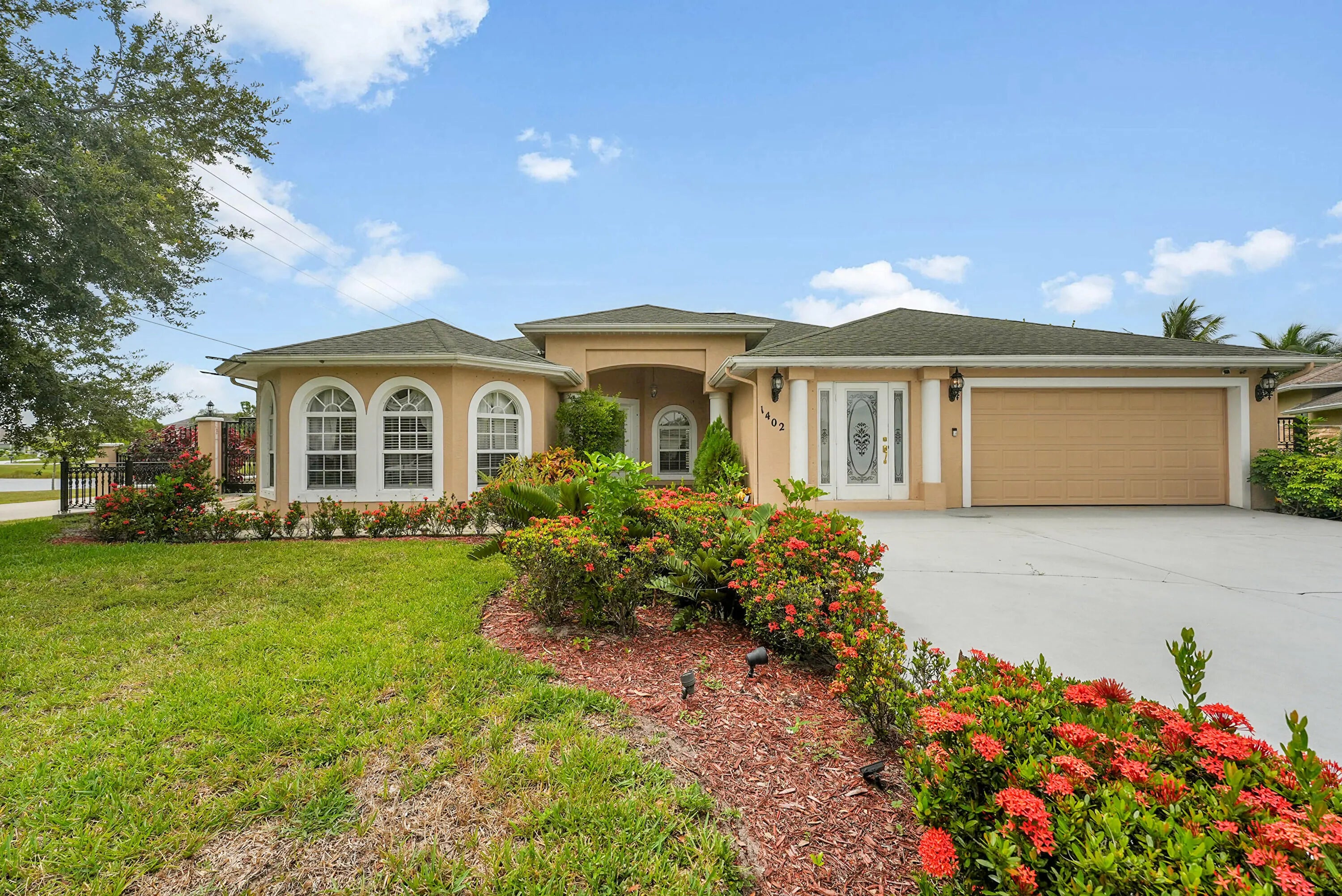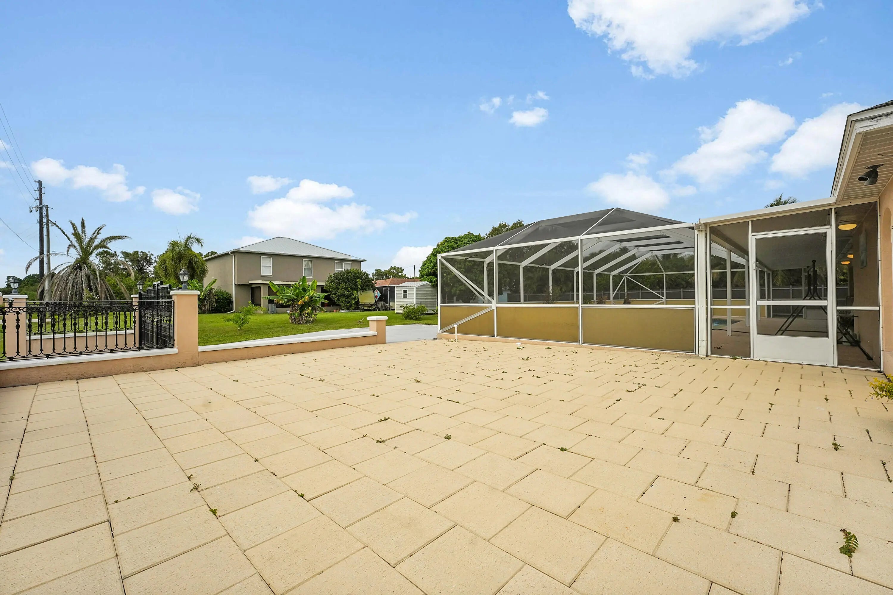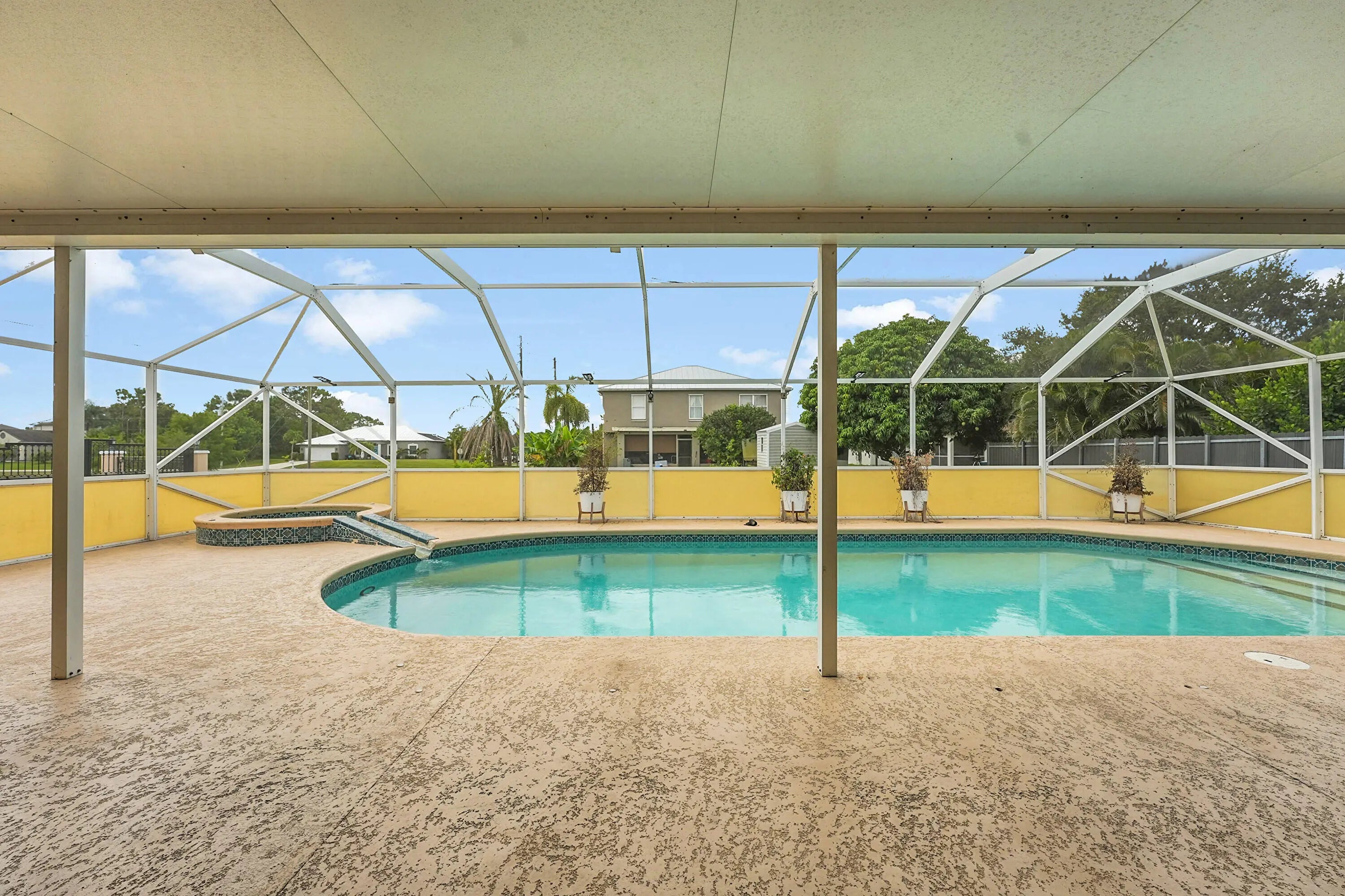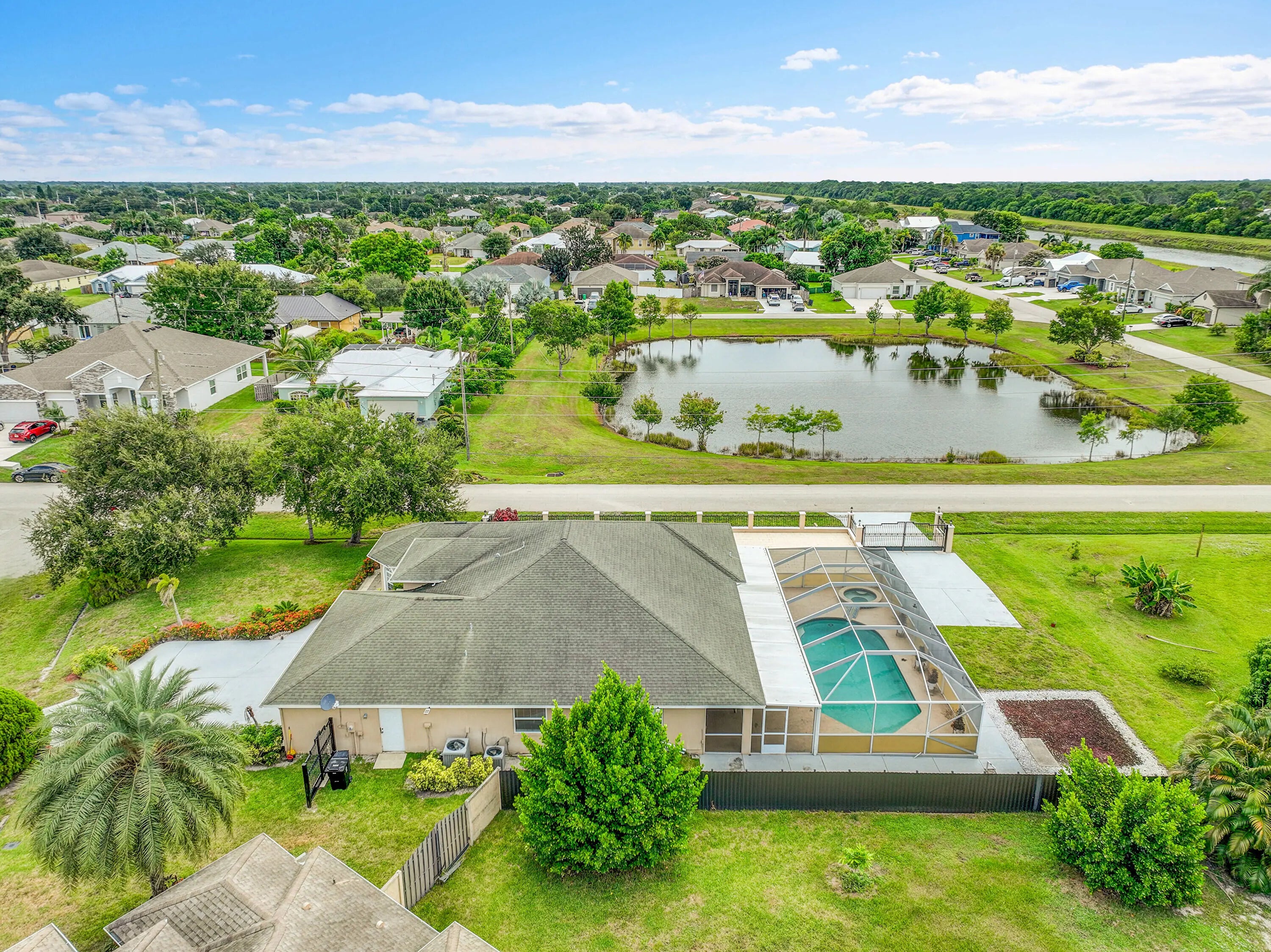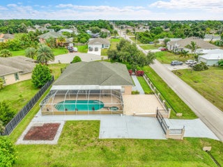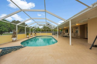 Beautiful pool home in a PRIME Port St. Lucie location! This original-owner property is tucked away on a quiet cul-de-sac. Recent updates include AC (2025), pool pump (2026), and a new roof currently being installed. The home features 3 bedrooms, 2 baths, an office, a sitting room, 2 dining areas, 2 entrances, and 2 gates, offering flexibility and convenience. The open floor plan showcases vaulted ceilings, abundant natural light, and a spacious kitchen with ample storage. The primary suite includes a walk-in closet and spa-style bath. Enjoy a screened patio, sparkling pool, fenced yard, RV/boat parking, and the freedom of NO HOA. Appliances (refrigerator, washer, dryer, oven, microwave, dishwasher) are included; furnishings and décor are not. Minutes to I-95, Turnpike, and shopping.