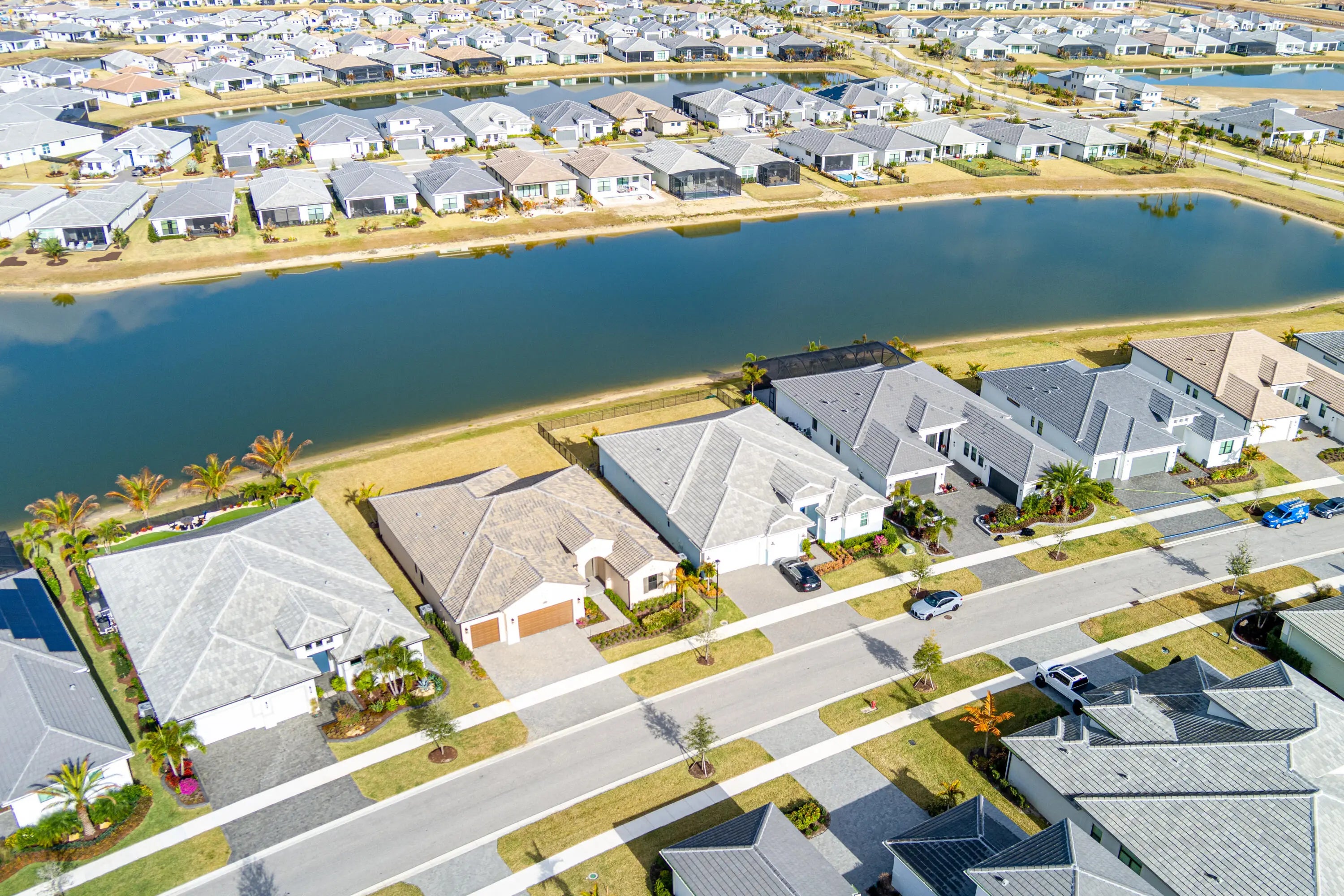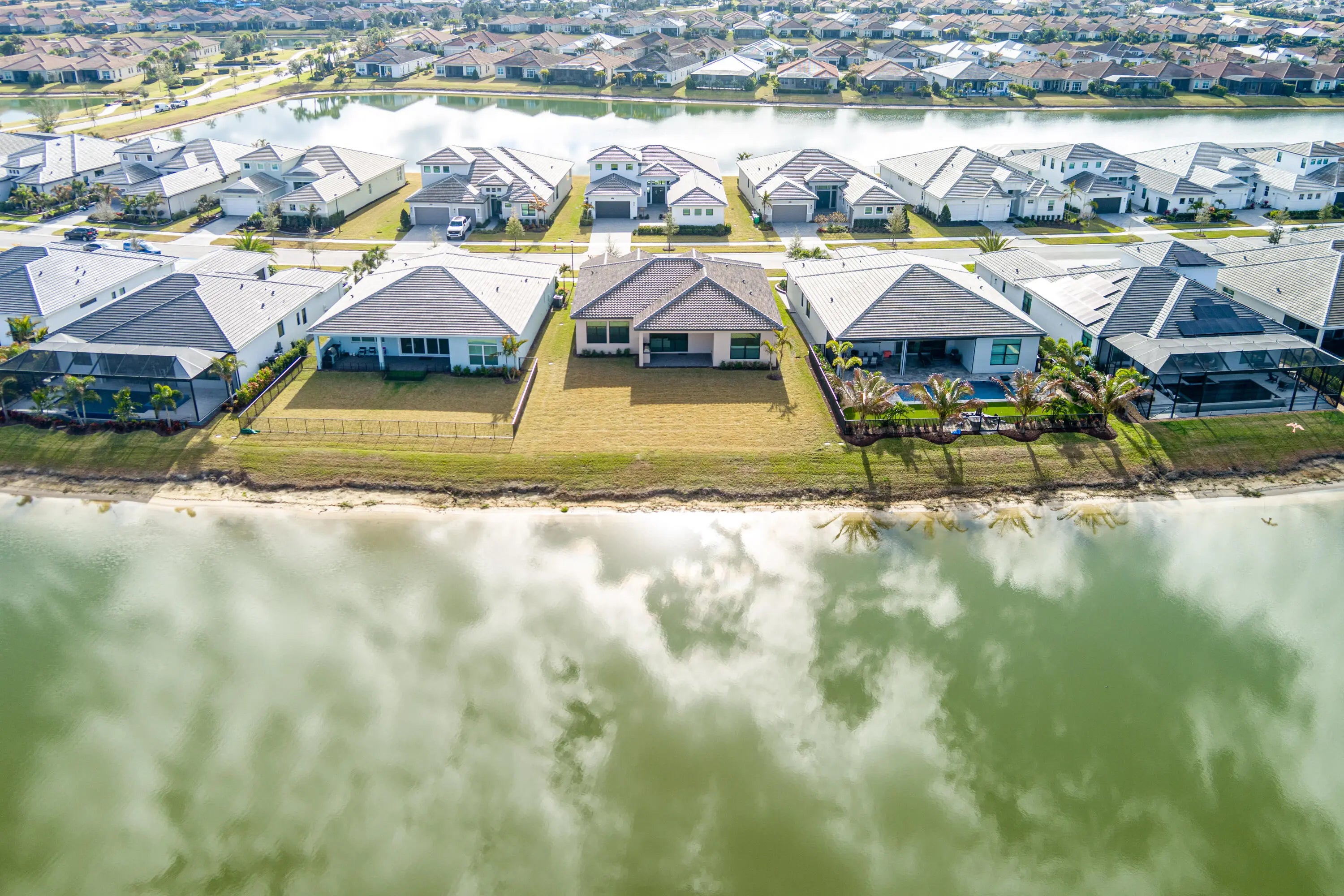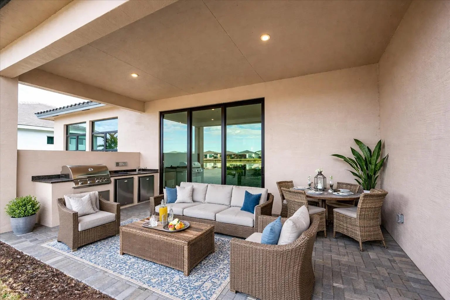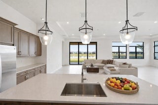 Major Price Improvement--Exceptional Value! Don't wait to build--this barely lived-in, move-in-ready home feels brand new and has never even had a picture hung on the walls. Featuring the highly desirable Taylor floor plan, this residence offers 3 bedrooms plus a den, 3.5 baths, and a 3-car garage with a bright, open layout designed for both everyday living and entertaining. Elegant double doors open to a welcoming foyer leading into the open kitchen, great room, and dining area, framed by expansive windows and sliders overlooking the lanai and peaceful lake views. The gourmet kitchen features quartz countertops, upgraded appliances, large center island, 42'' cabinetry with crown molding, under-cabinet lighting, walk-in pantry, and stainless-steel undermount sink. The split-bedroom design offers excellent privacy, with each bedroom featuring its own bath. The owner's suite is tucked away at the rear, offering a spa-inspired retreat with frameless glass shower. Additional highlights include an enclosed flex space, upgraded recessed lighting throughout, full summer kitchen, five-foot privacy wall, and a west-facing lanai ideal for enjoying beautiful Florida sunsets. Now offered at a significantly improved price, this home presents an outstanding opportunity to enjoy luxury living and resort-style amenities at Club Talavera in PGA Village Verano--without the wait of new construction.
