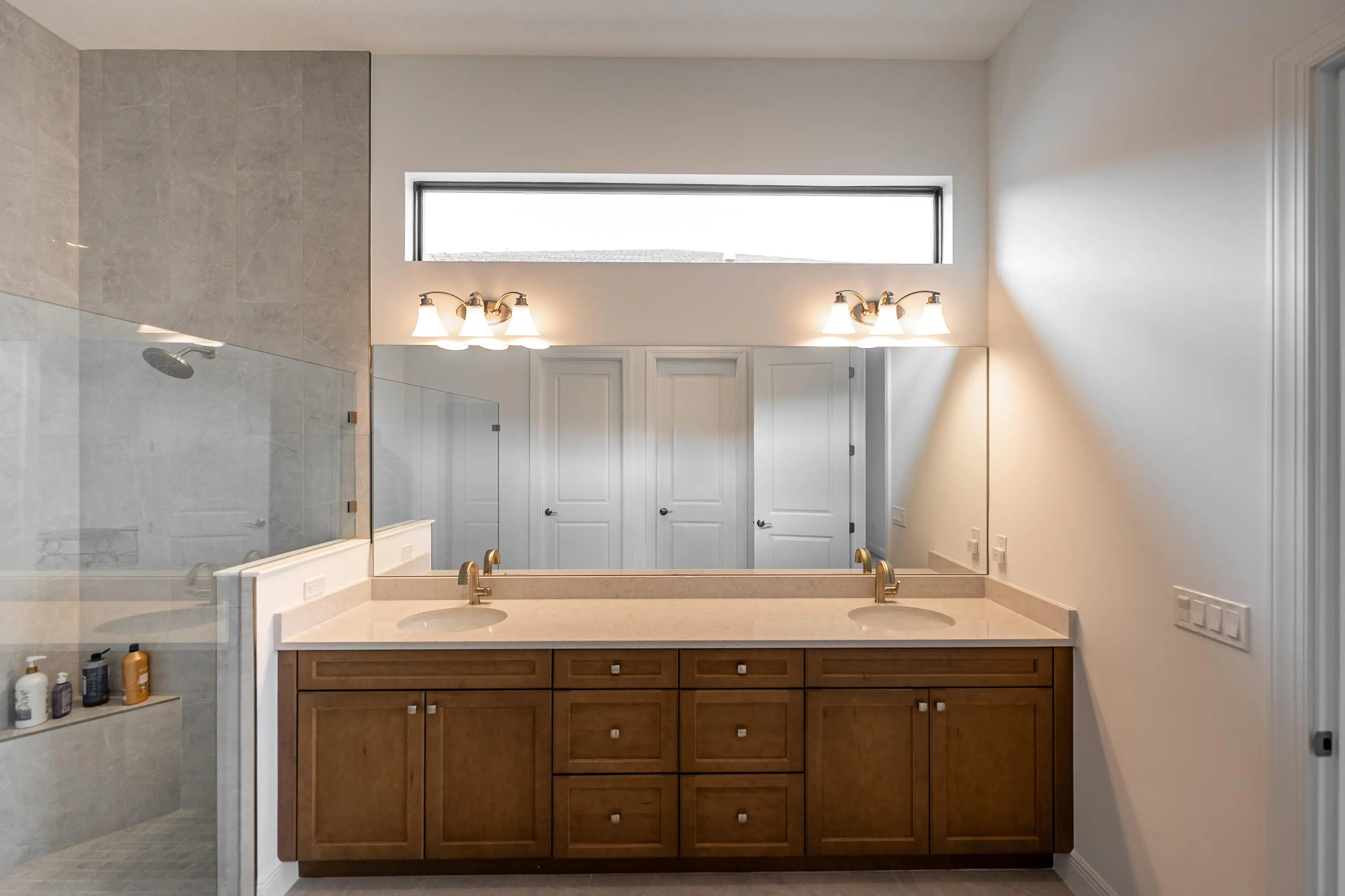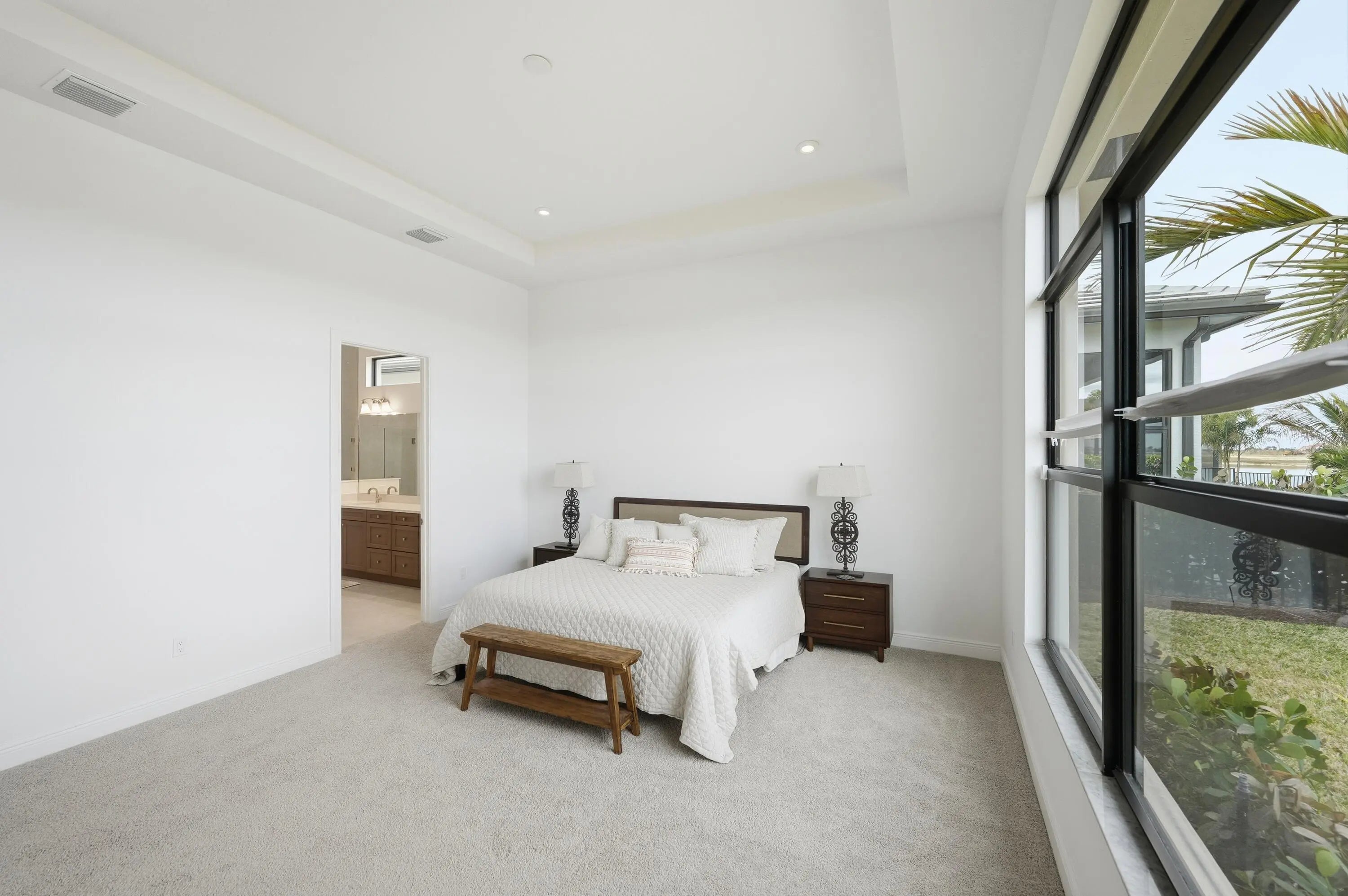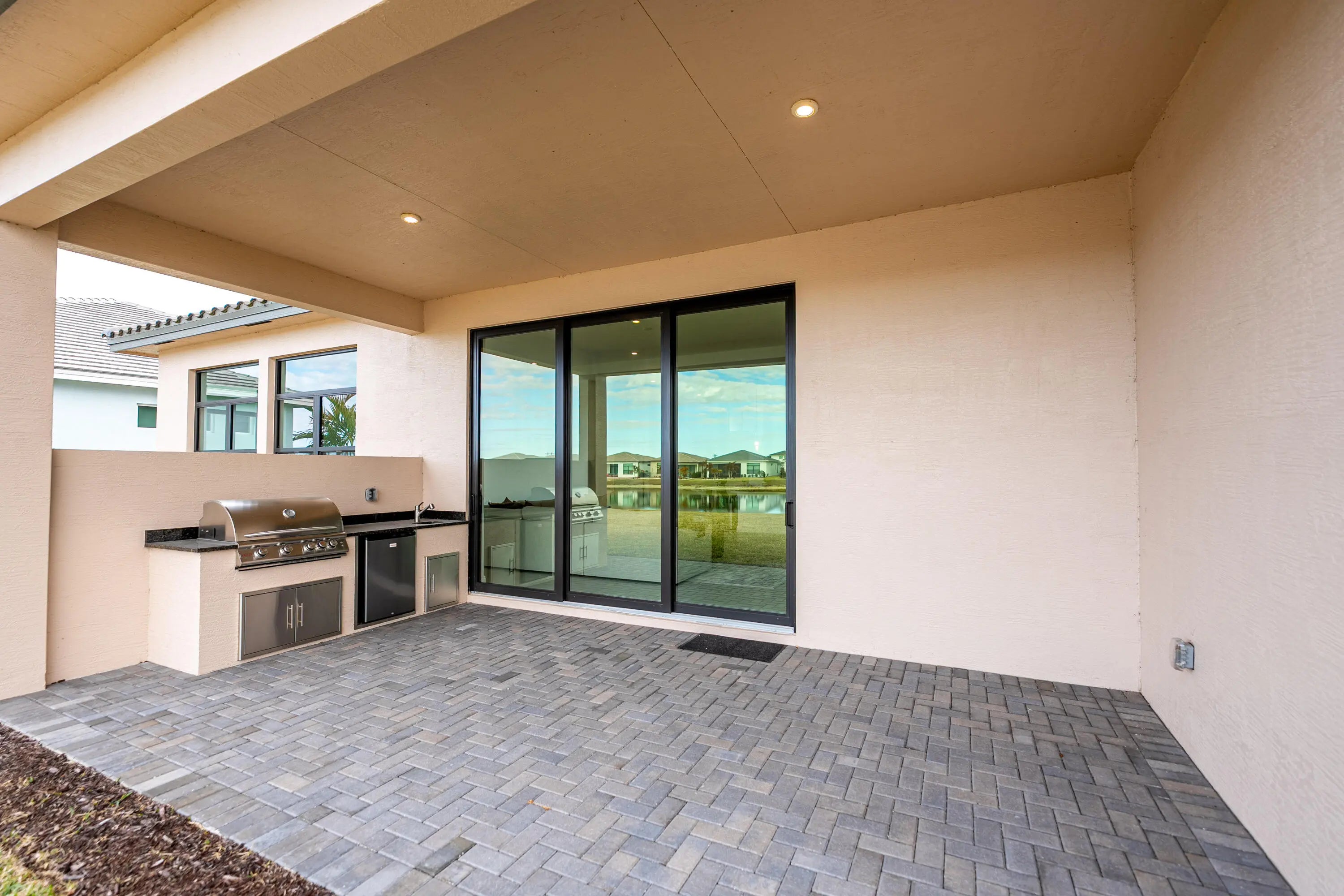 Major Price Improvement--Exceptional Value! Don't wait to build--this barely lived-in, move-in-ready home feels brand new and has never even had a picture hung on the walls. Featuring the highly desirable Taylor floor plan, this residence offers 3 bedrooms plus a den, 3.5 baths, and a 3-car garage with a bright, open layout designed for both everyday living and entertaining. Elegant double doors open to a welcoming foyer leading into the open kitchen, great room, and dining area, framed by expansive windows and sliders overlooking the lanai and peaceful lake views. The gourmet kitchen features quartz countertops, upgraded appliances, large center island, 42'' cabinetry with crown molding, under-cabinet lighting, walk-in pantry, and stainless-steel undermount sink. The split-bedroom design offers excellent privacy, with each bedroom featuring its own bath. The owner's suite is tucked away at the rear, offering a spa-inspired retreat with frameless glass shower. Additional highlights include an enclosed flex space, upgraded recessed lighting throughout, full summer kitchen, five-foot privacy wall, and a west-facing lanai ideal for enjoying beautiful Florida sunsets. Now offered at a significantly improved price, this home presents an outstanding opportunity to enjoy luxury living and resort-style amenities at Club Talavera in PGA Village Verano--without the wait of new construction.