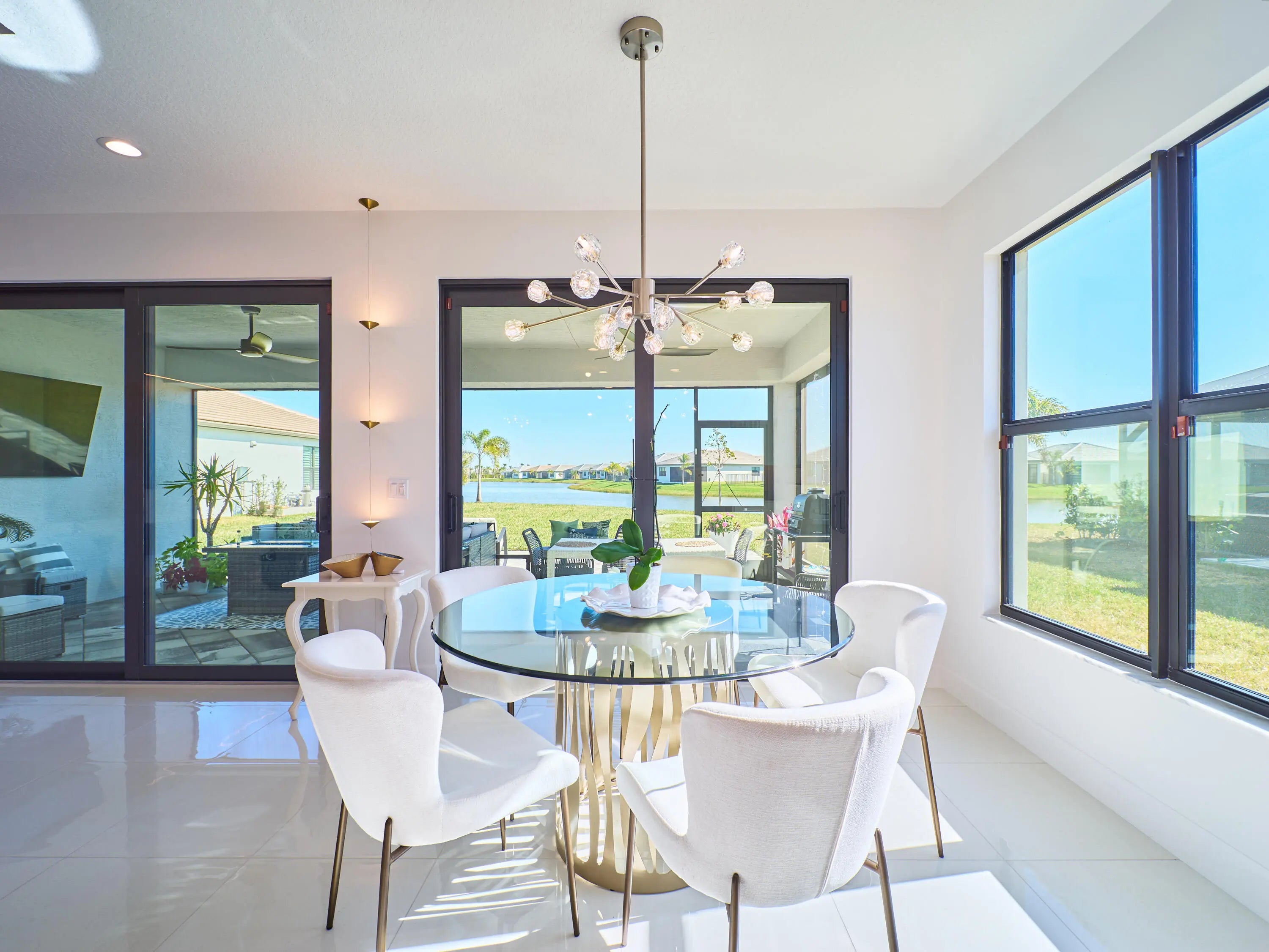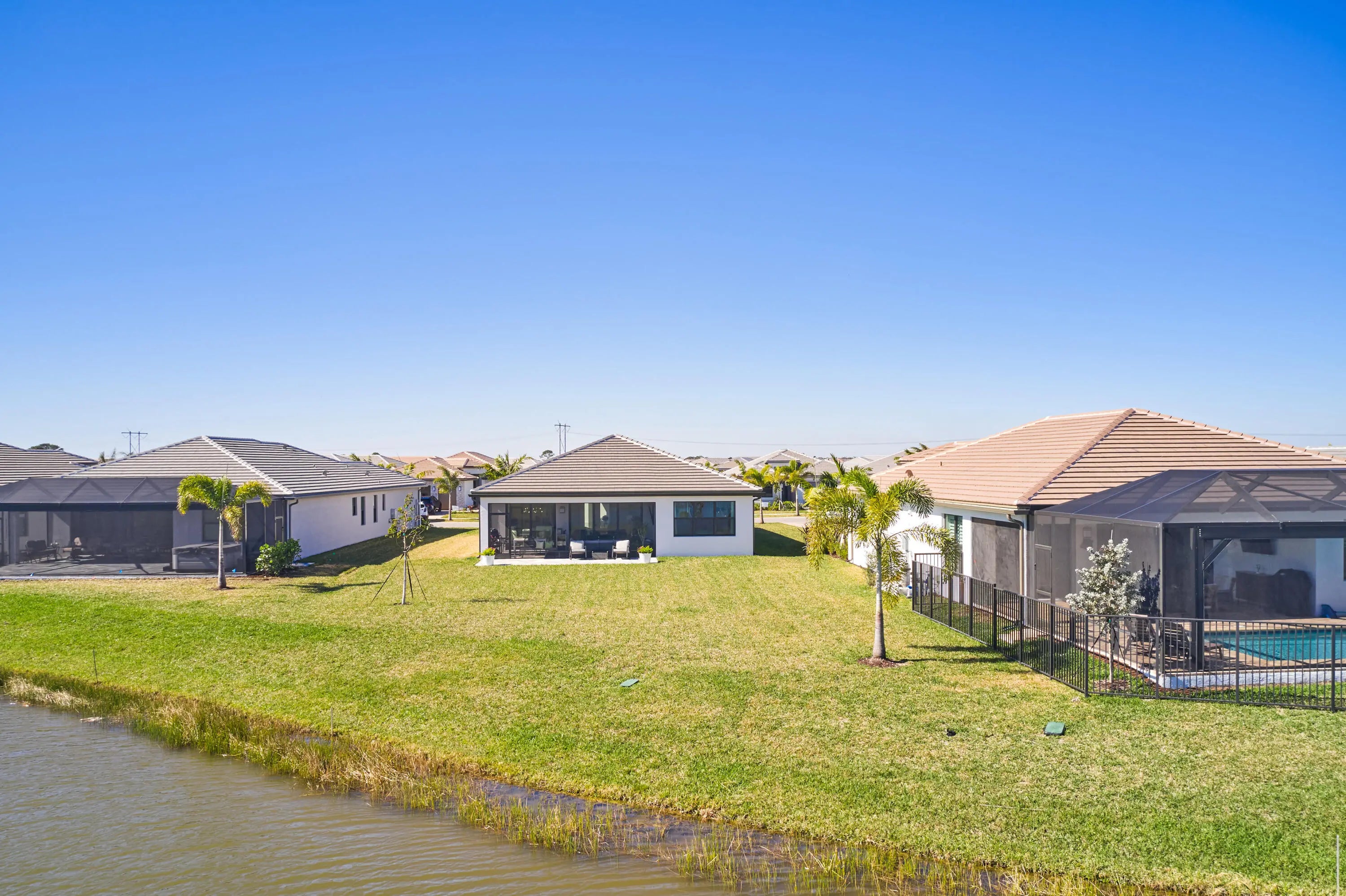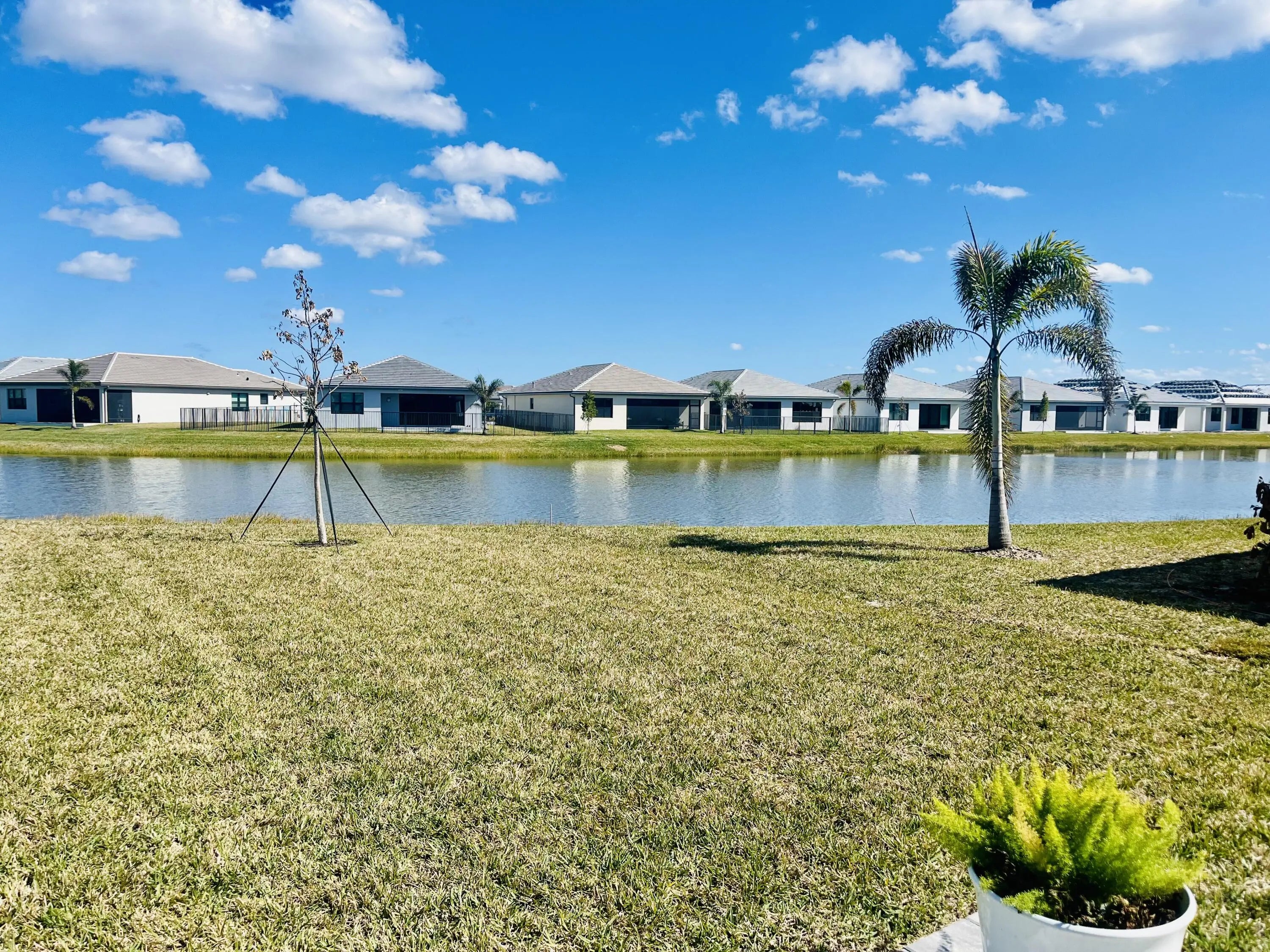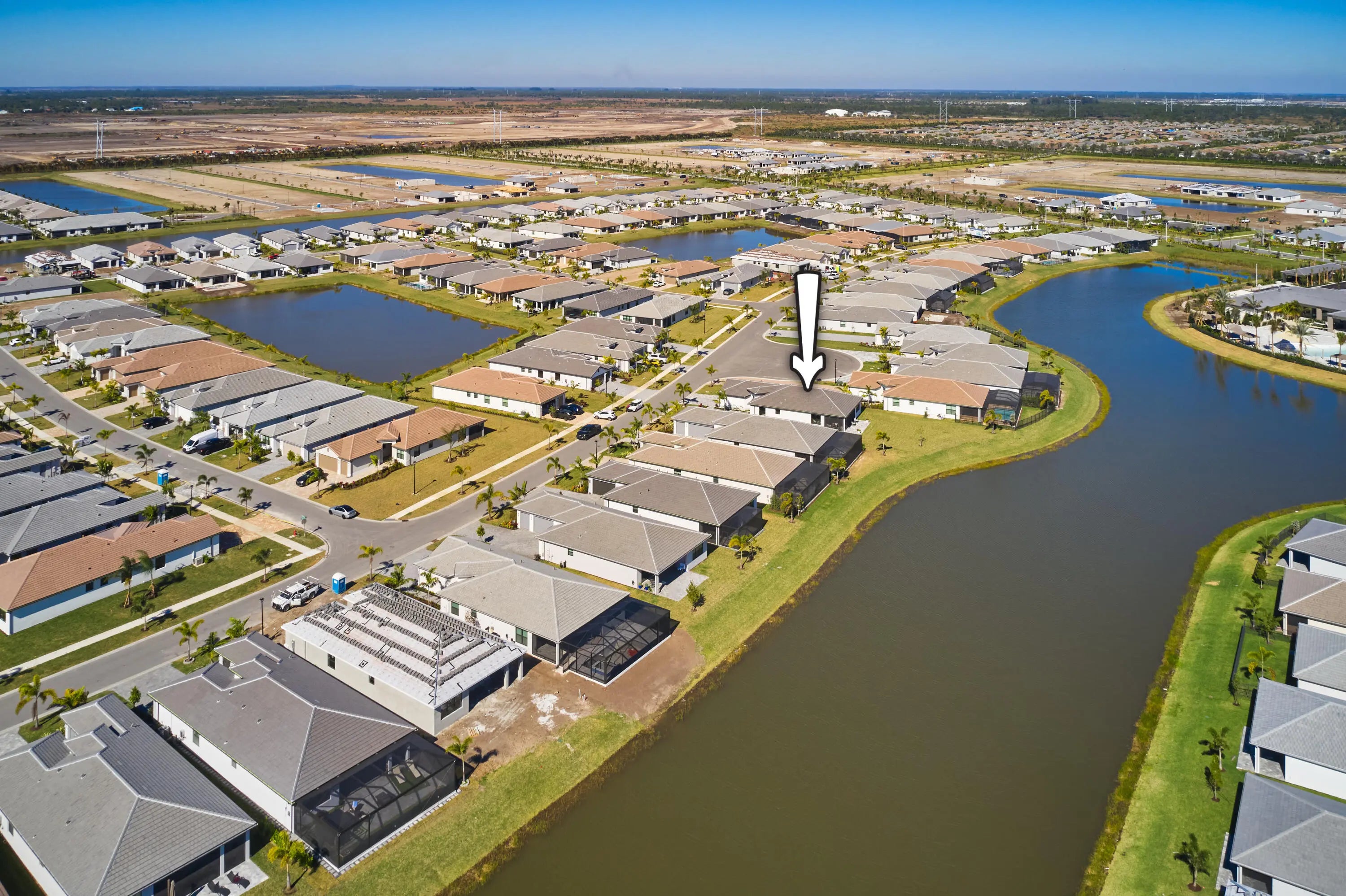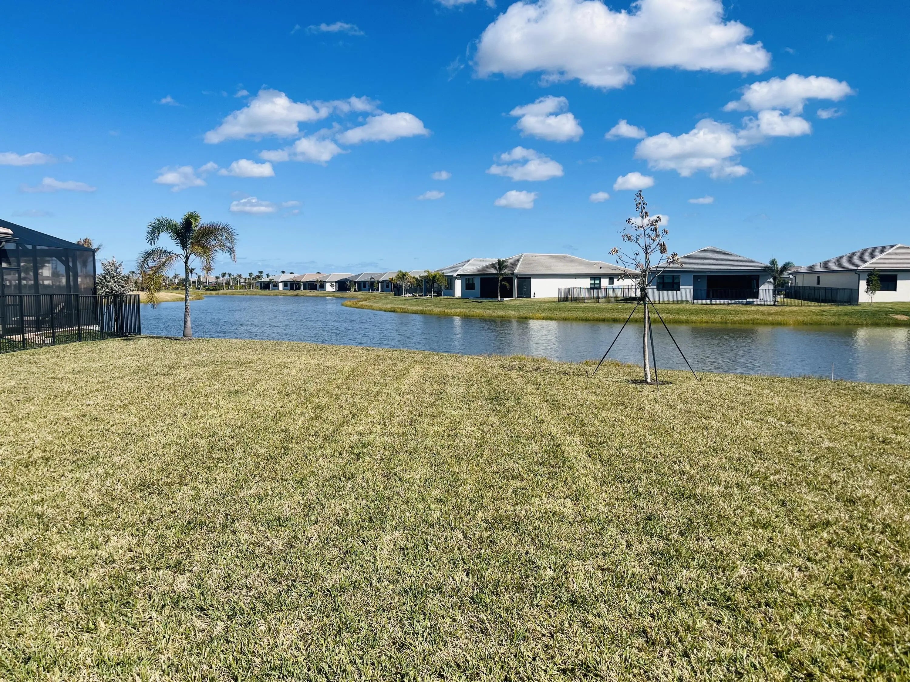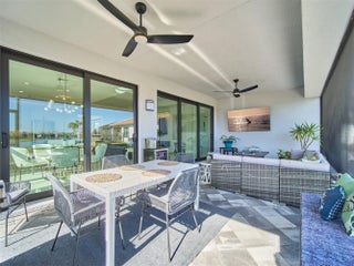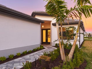 Stunning and better than new! This 2025-built residence in the prestigious Valencia Parc at Riverland is the epitome of ''picture-perfect'' living. Showing like a true model, this 3-bedroom plus den, 2.5-bathroom Palazzo home offers a rare combination of high-end interior luxury and an expansive outdoor footprint that is hard to find. Step through the elegant glass entry doors to find an open-concept sanctuary featuring large polished tile flooring and upgraded finishes throughout. The gourmet kitchen is a chef's dream, boasting bright white cabinetry with gold accents, quartz countertops, and a large social island. High-end GE appliances, premium over/under-mount lighting, and custom built-ins for the pantry make this space as functional as it is beautiful. The light-drenched living and dining areas feature soaring tray ceilings and massive sliders that lead to your private oasis. Retreat to the primary suite, where you'll find oversized windows with custom treatments and a luxurious en-suite bathroom complete with mirrors to the ceiling, a frameless shower with floor-to-ceiling tile, and a sparkling chandelier. The exterior is truly the "crown jewel" of this property. Enjoy serene, long lake views from your east-facing backyard, one of the largest in the community. The oversized covered and screened lanai has been upgraded with extended pavers and dual modern fans, providing the perfect spot for morning coffee or sunset entertaining. Enjoy access to the 34,000 sq ft clubhouse, boasting a grand social hall, state-of-the-art fitness center, card rooms, a café with indoor and outdoor dining, a resort-style pool, a covered patio with a fire pit, a sports lounge, and a full-time lifestyle director dedicated to enhancing your experience. Riverland, a 4,000-acre master-planned community, offers an unparalleled lifestyle. 1 Residents enjoy a 16-acre Sports & Racquet Club, a 51,000 sq ft Wellness & Fitness Center, a 5-acre Arts & Culture Center with an 11,550 sq ft Creativity Hub, multiple city parks, and a future Town Center, making this an exceptional place to call home.