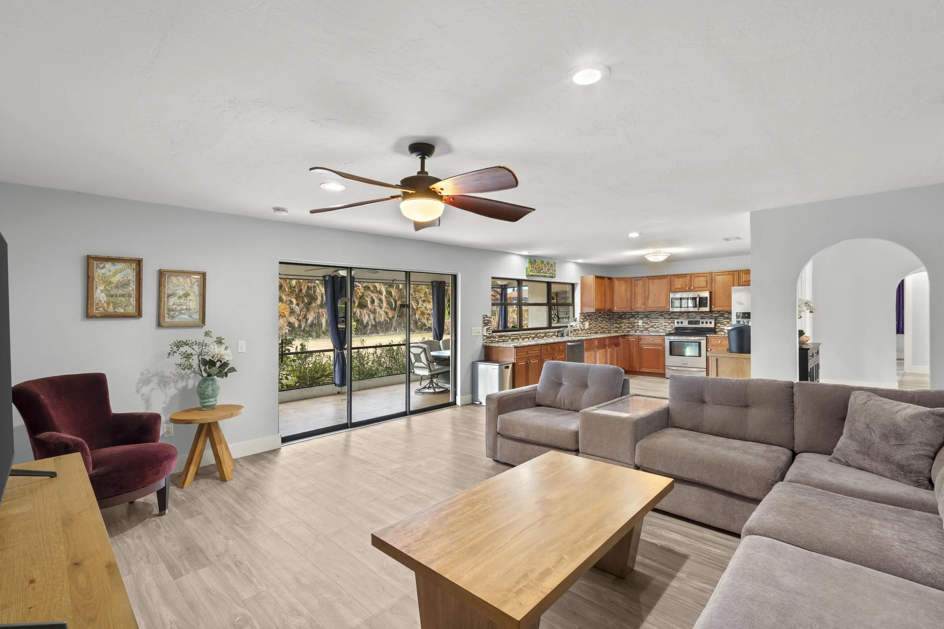 Welcome to this beautifully updated 3-bedroom, 2-bath home in the highly desirable Sandpiper Bay area of Port St. Lucie. Offering over 2,000 square feet of interior living space, this home features a spacious open floor plan designed for comfortable everyday living and easy entertaining. The interior has been completely refreshed with all-new luxury vinyl flooring and baseboards throughout, creating a clean, modern feel from room to room. The kitchen features granite countertops, stainless steel appliances, and a tile backsplash, blending style and function at the heart of the home. Step outside to enjoy the large covered back patio overlooking a newly fenced backyard with fresh landscaping — perfect for relaxing evenings, pets, or gatherings with family and friends. The property also includes a 2-car garage, dedicated RV pad, and a durable metal roof installed in 2015. Major updates provide peace of mind, including a new electrical panel (2024), generator hookup plug, irrigation pump (2024), water heater (2019), and AC system (2017). This move-in ready home combines space, updates, and an unbeatable location in one of Port St. Lucie's most established neighborhoods.