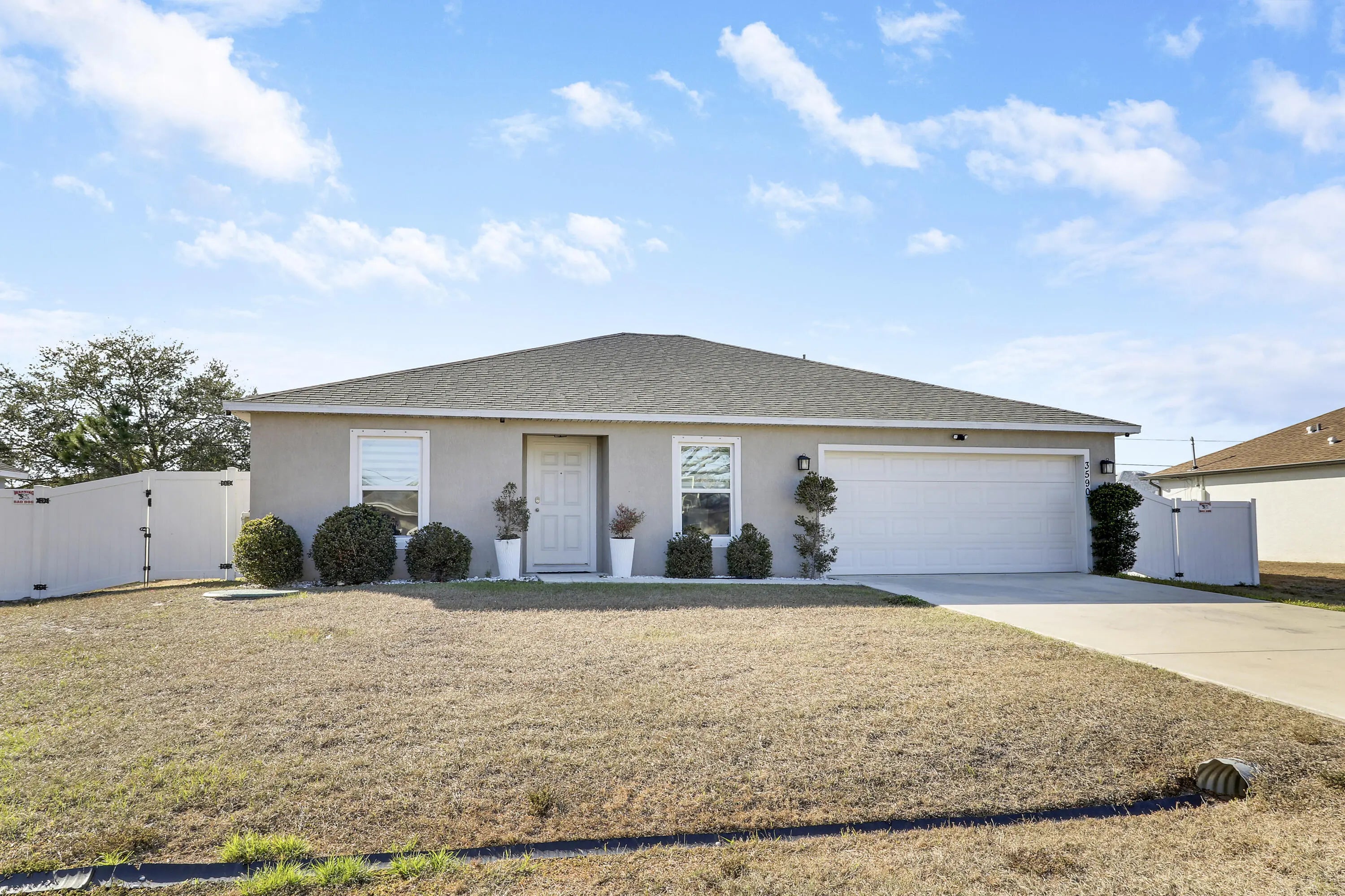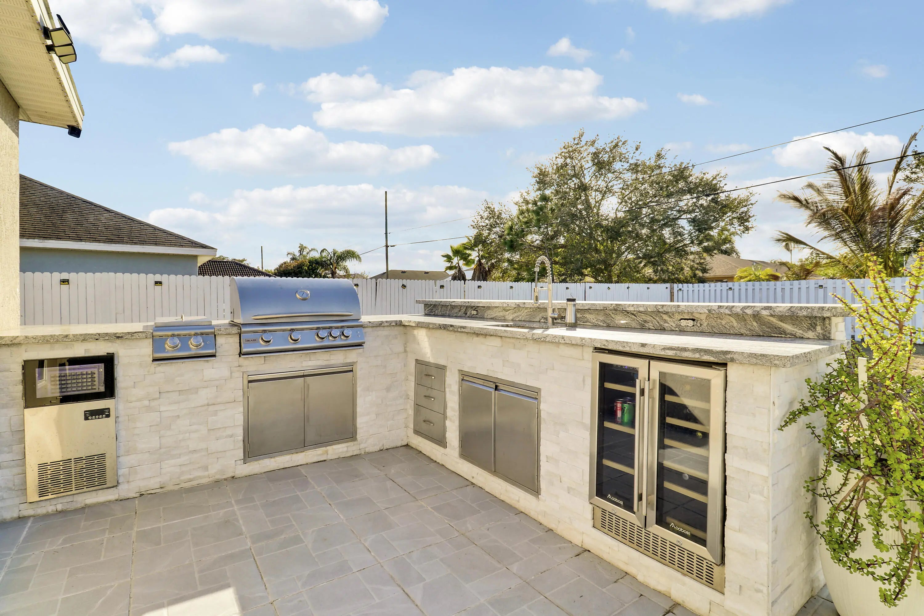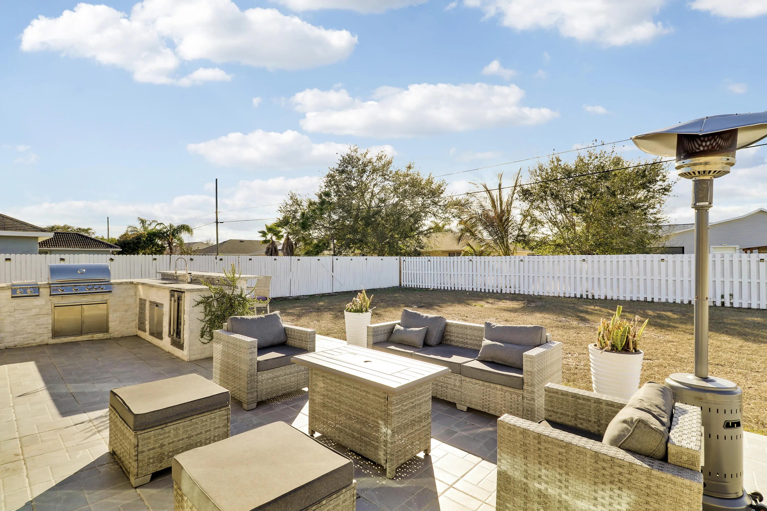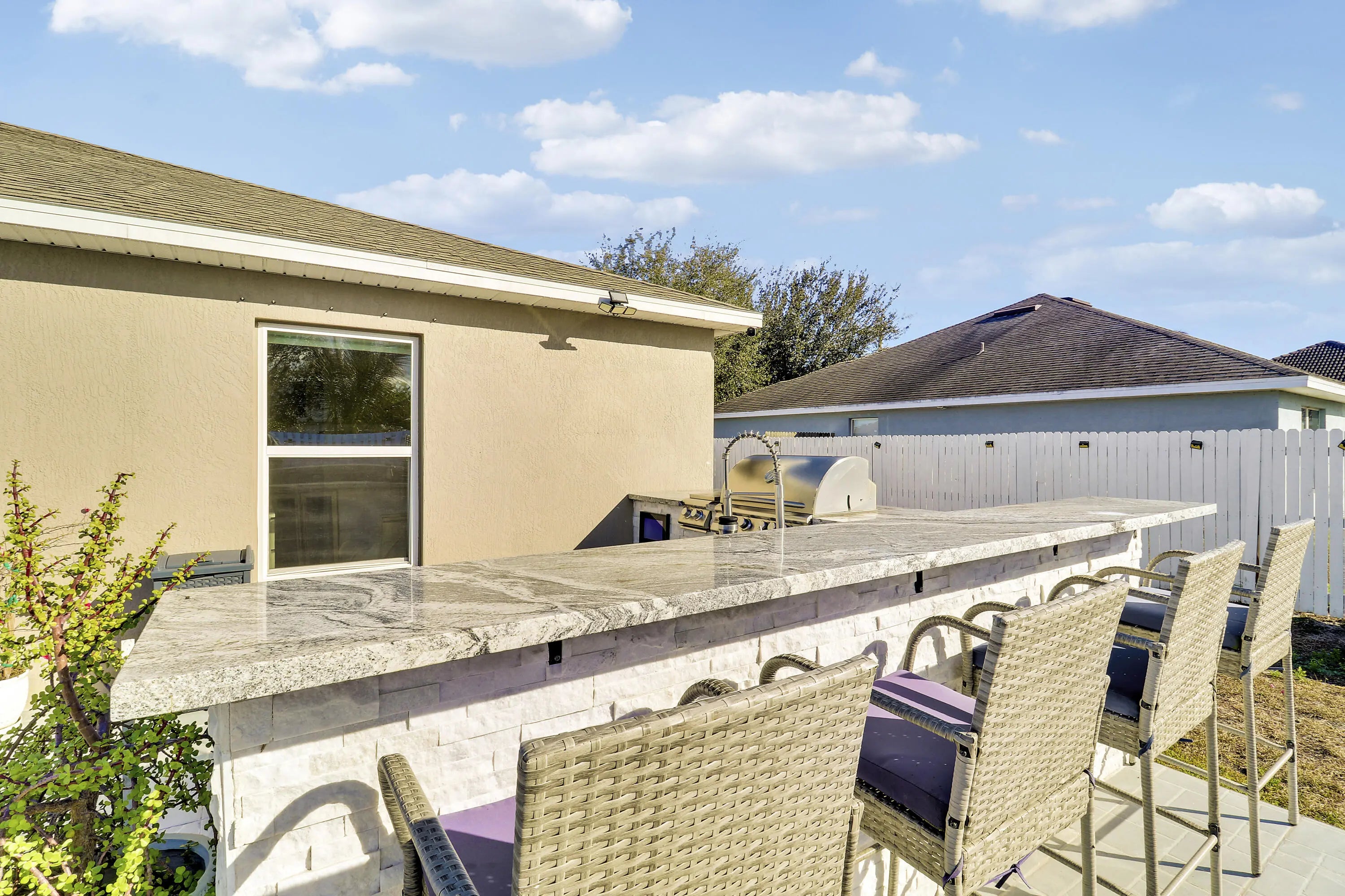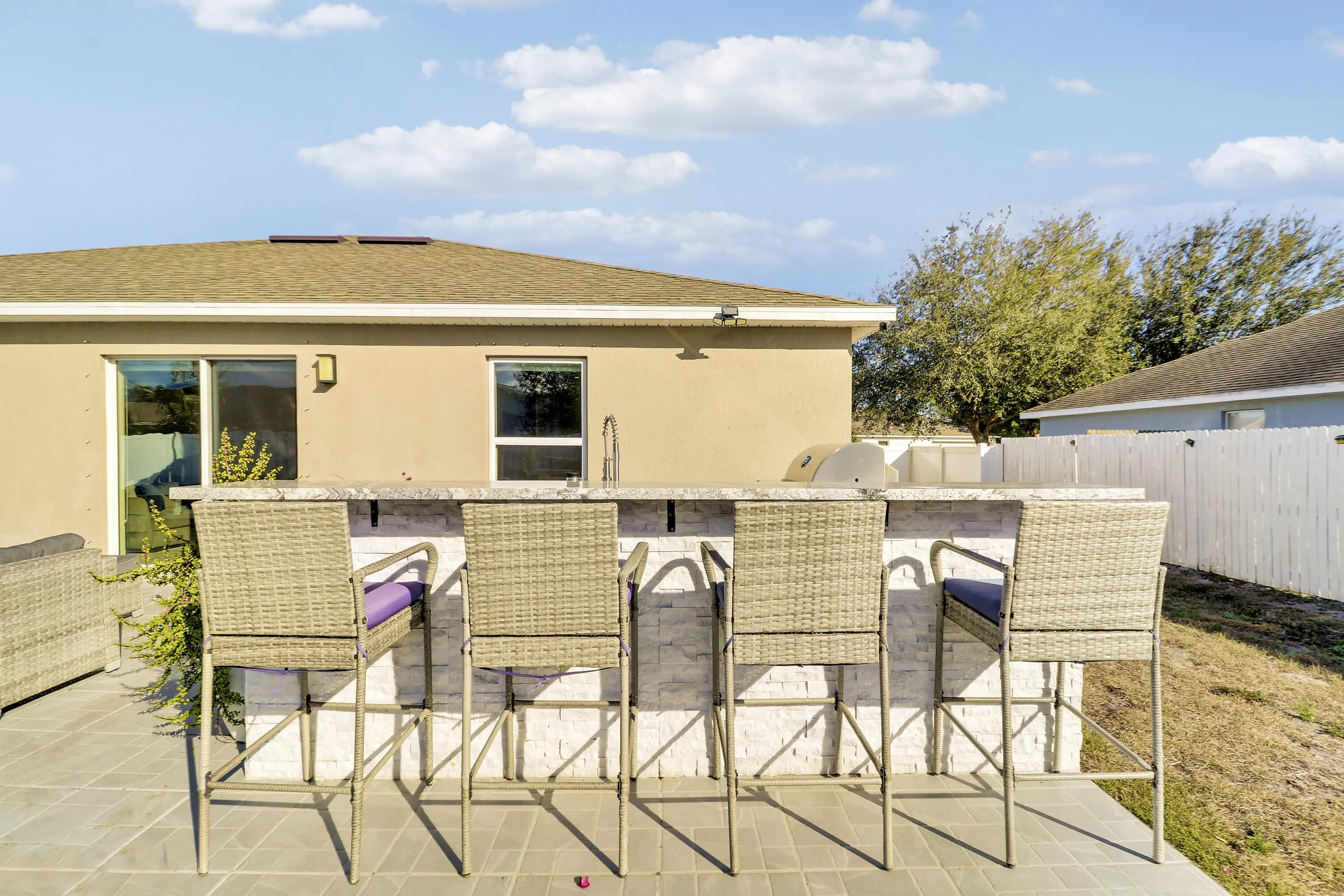 Welcome to this light and bright 3-bedroom, 2-bath home built in 2021 and thoughtfully maintained. The heart of the home features an extensively upgraded kitchen with high-end appliances, ideal for both everyday living and entertaining. Upgraded bathrooms add a modern, polished feel throughout. The spacious, fully fenced backyard is a true standout, offering a beautiful outdoor living area complete with a high-end Paradise Grills outdoor kitchen, bar area, and extended patio—perfect for gatherings and relaxing evenings. Located in a desirable neighborhood close to shopping, dining, and top-rated schools, this well-cared-for home is priced right and ready for a buyer to add their personal touch. Don't miss this opportunity.