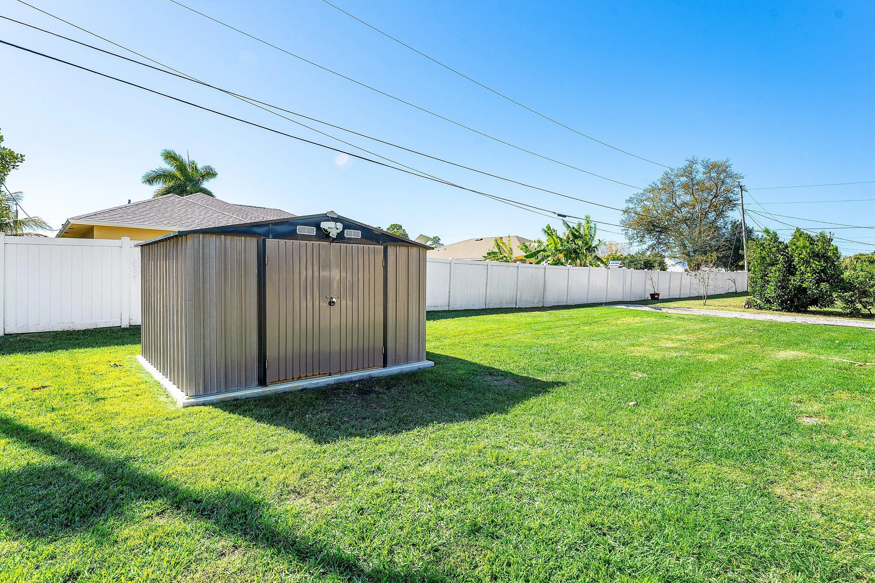 Your new home awaits! Welcome to this beautifully constructed LGI home in the heart of Port St. Lucie. Offering the freedom of NO HOA & modern living at its best, it's conveniently located less than 10min from the interstate, the turnpike, & a variety of local restaurants. This 4-bedroom, 2-bath home is perfect for both comfort & convenience. Step inside the open, thoughtfully designed layout featuring & contemporary finishes & a 2-car garage. With a 10'x10' aluminum shed on cement slab, & covered patio, you'll have ample storage & can entertain year-round. A standout feature is the RV hookup & dedicated parking RV pad--a rare find that adds incredible flexibility & value. With construction completed in Nov 2023, enjoy peace of mind knowing everything is modern, efficient, & move in ready!