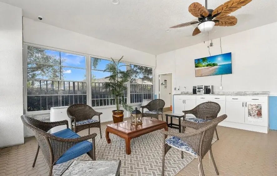Welcome to this beautifully updated 2BR/2BA villa in Sun Terrace, St. Lucie West! This Divosta quad is move-in ready & showcases stylish LVT flooring throughout the main living areas. The modern kitchen features quartz countertops & comes complete with all appliances. In-unit laundry is conveniently tucked away in a utility closet. Property also has an exterior storage shed for additional space. Relax & enjoy extra living space on the covered and screened lanai, perfect for year-round use. The exterior was freshly painted in November 2025. HOA dues cover lawn care, basic cable, exterior maintenance including the roof, and access to community amenities such as two swimming pools and tennis courts. A perfect opportunity for low-maintenance living in St Lucie West!