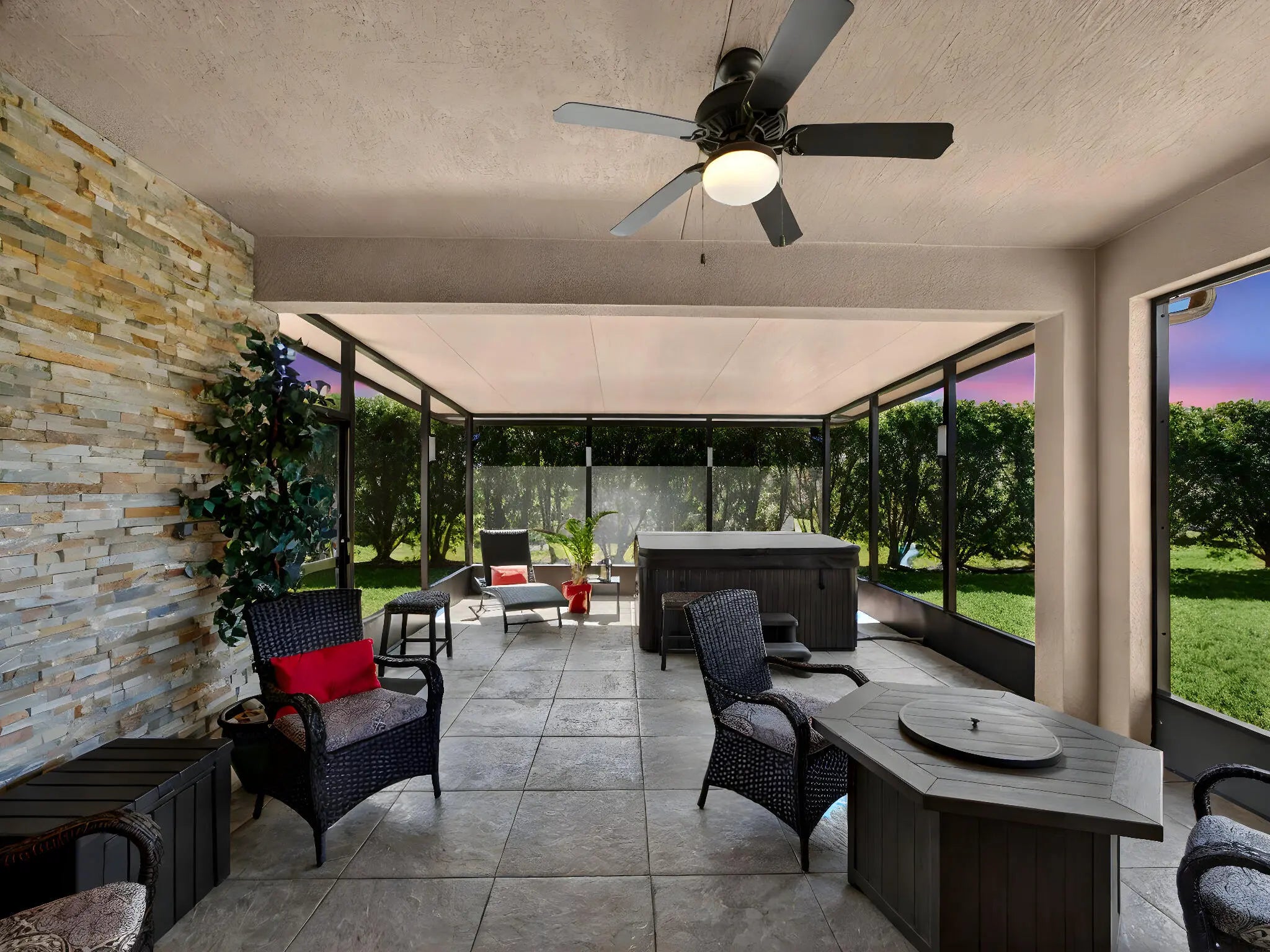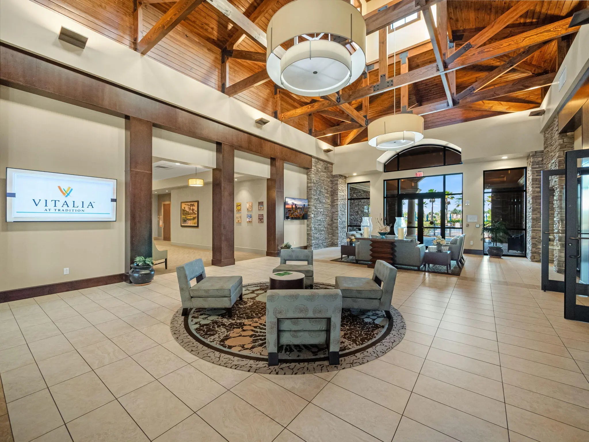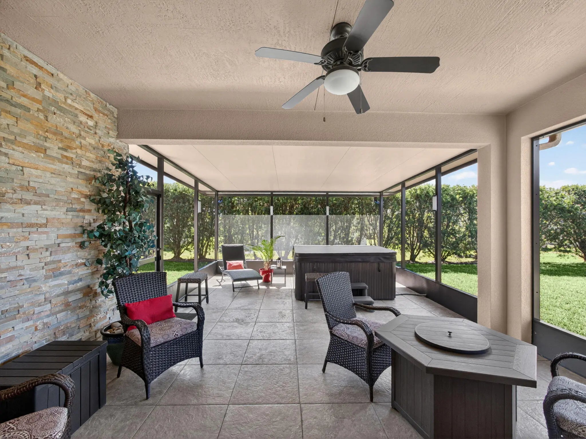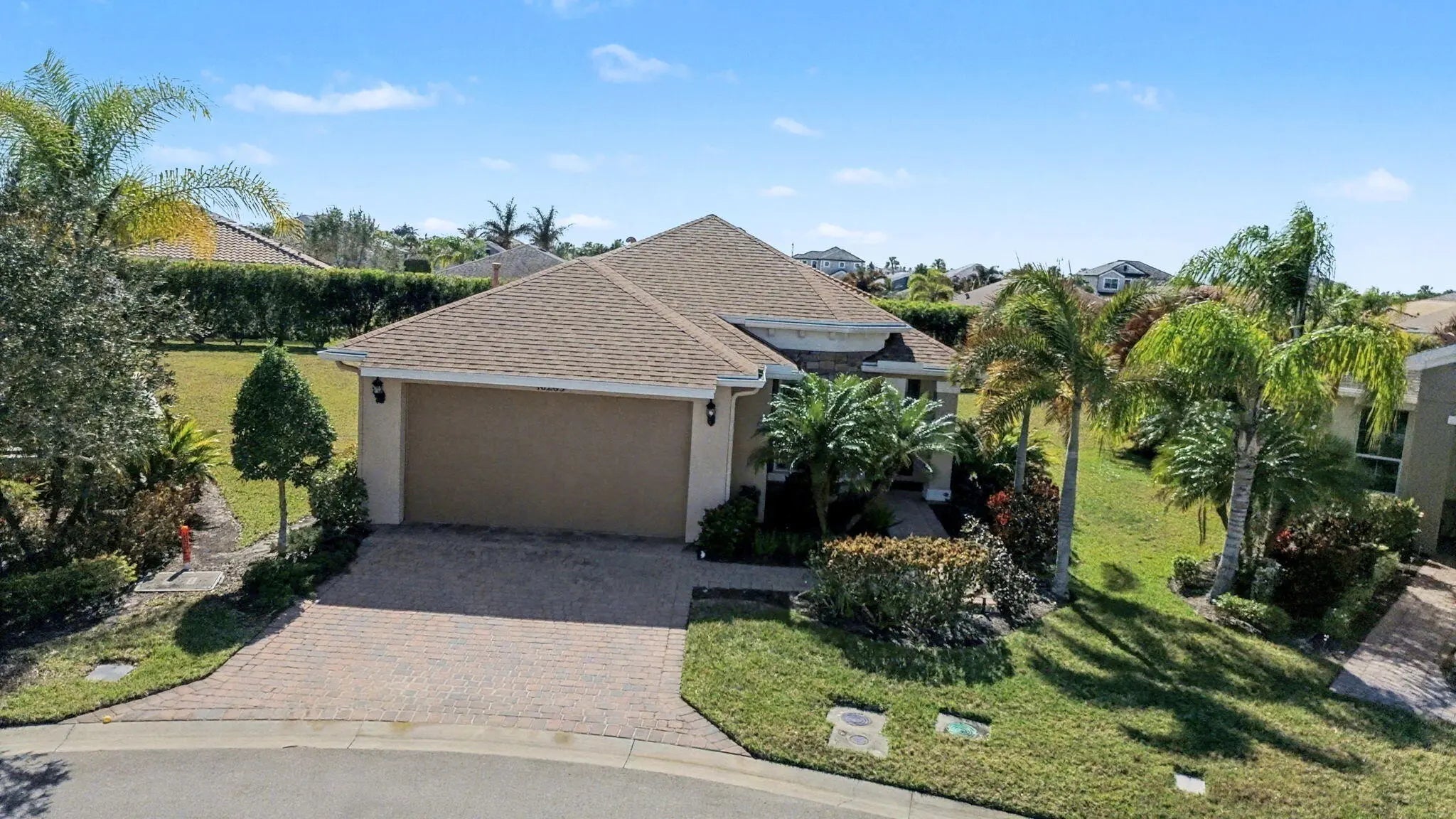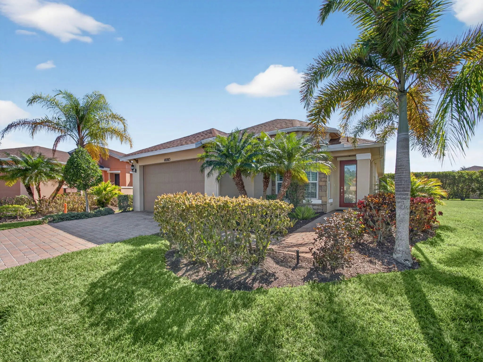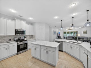 Immaculate and truly move-in ready, this beautifully renovated home is nestled on a quiet cul-de-sac within the highly sought-after 55+ community of Vitalia. The light, bright, and open floor plan has been thoughtfully updated from top to bottom, featuring new flooring, a remodeled kitchen with updated countertops and backsplash, plantation shutters, gas appliances, and a new washer and dryer (2024). The home was freshly painted in 2025, adding a crisp, modern feel throughout. The layout offers two generously sized bedrooms, two full bathrooms, and a versatile nook ideal for a home office, reading area, or hobby space. Step outside to your private lanai and enjoy the oversized back and side yard—perfect for entertaining, hosting family and friends, or simply relaxing. Residents will appreciate the convenient access to the vibrant Tradition area just minutes away, offering shopping, dining, local cafés, seafood markets, entertainment, scenic lakes, nearby beaches, and abundant wildlife. Vitalia residents enjoy a truly maintenance-free lifestyle with cable, high-speed internet, landline phone service, alarm monitoring, and lawn care included, along with access to a stunning resort-style recreational facility. Experience relaxed, resort-style living and embrace the Florida lifestyle from the comfort of your own private paradise.