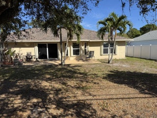 This is a perfect location for a commuter or a family that wants to be close to Tradition and St Lucie West without HOA fees and high taxes! 3/2/2 CBS just painted inside, with updated kitchen and baths sinks and cabinets, new refrigerator 2026, tile and vinyl plank flooring, roof 2018, garbage disposal 2023, microwave 2024, W/H 2025, total home water system 2018, A/C 2019, Accordion Storm Shutters 2020, and a white vinyl privacy fenced backyard large enough for a pool! Come and see this fantastic property.