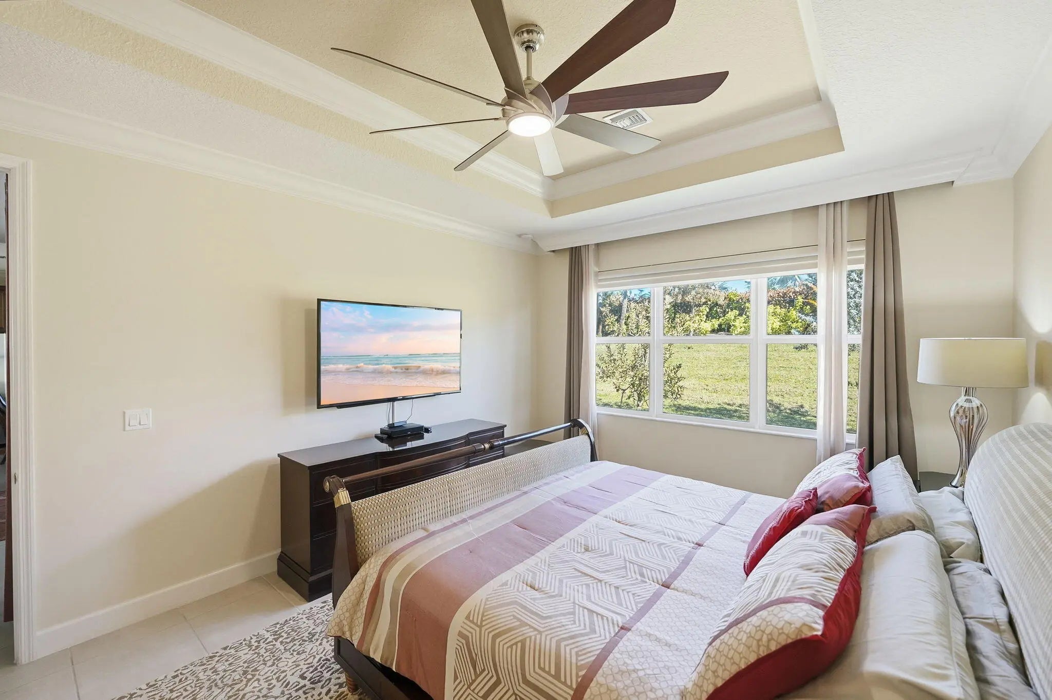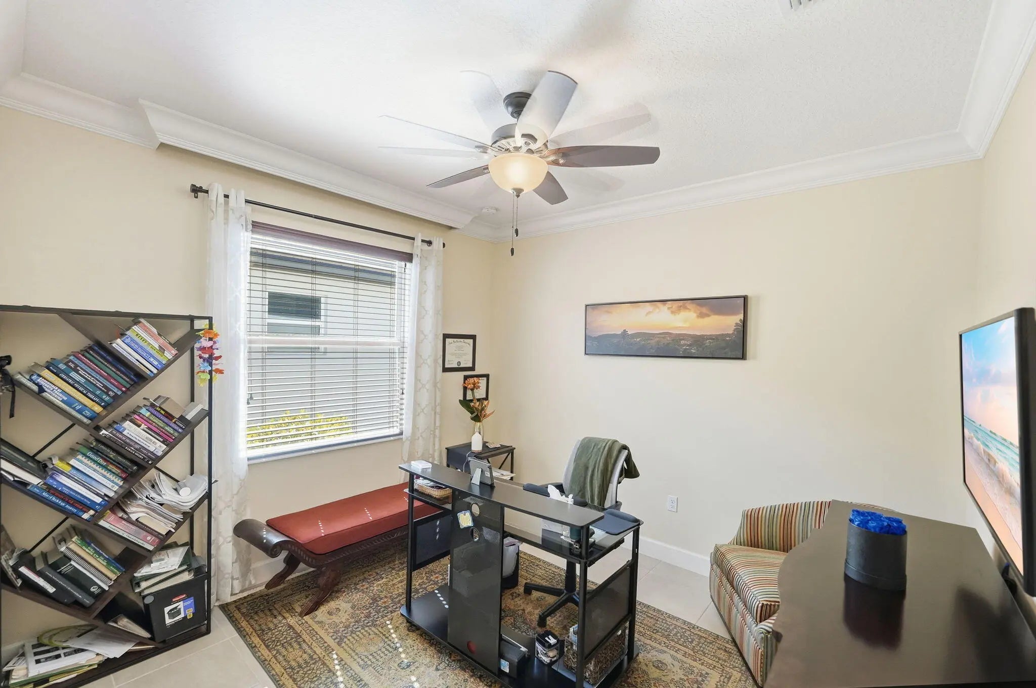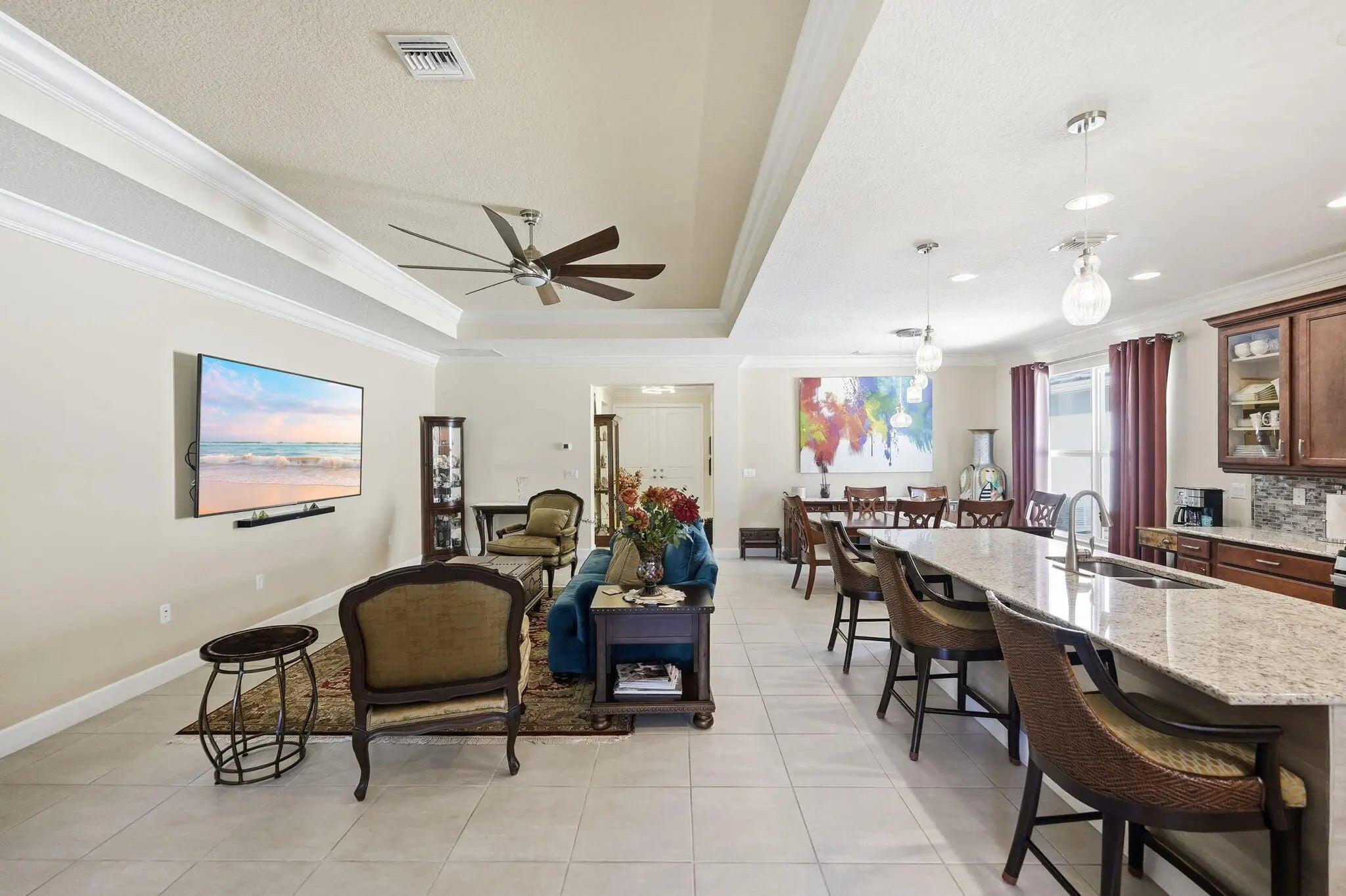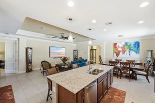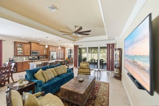 Located in the prestigious Riverland 55+ community, this upgraded single-family home offers nearly $50K in enhancements. Featuring 3 bedrooms, 2.5 bathrooms, plus a separate office/den, the open-concept layout is ideal for comfortable living. The upgraded galley kitchen includes ample cabinetry, a large eat-in island, gas stove, breakfast nook, and formal dining area. The primary suite features custom built-in closets and a spacious bath with dual sinks, separate walk-in shower, and private water closet. Additional highlights include impact windows, Hunter Douglas custom shades, crown molding, upgraded tile in the garage and entry, and a large screened, custom-tiled porch. Situated on a premium berm-backed lot for added privacy. HOA includes pest control, Xfinity cable, trash, clubhouse and community amenities.
