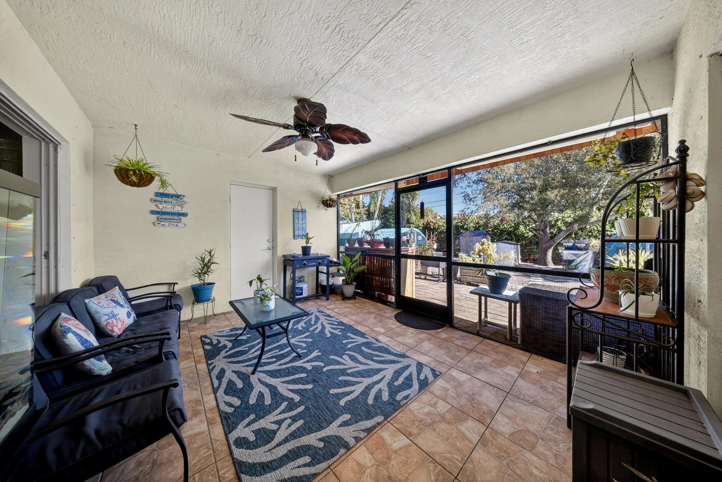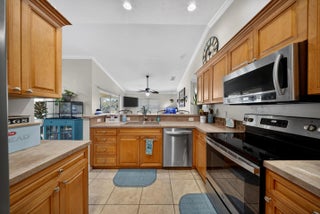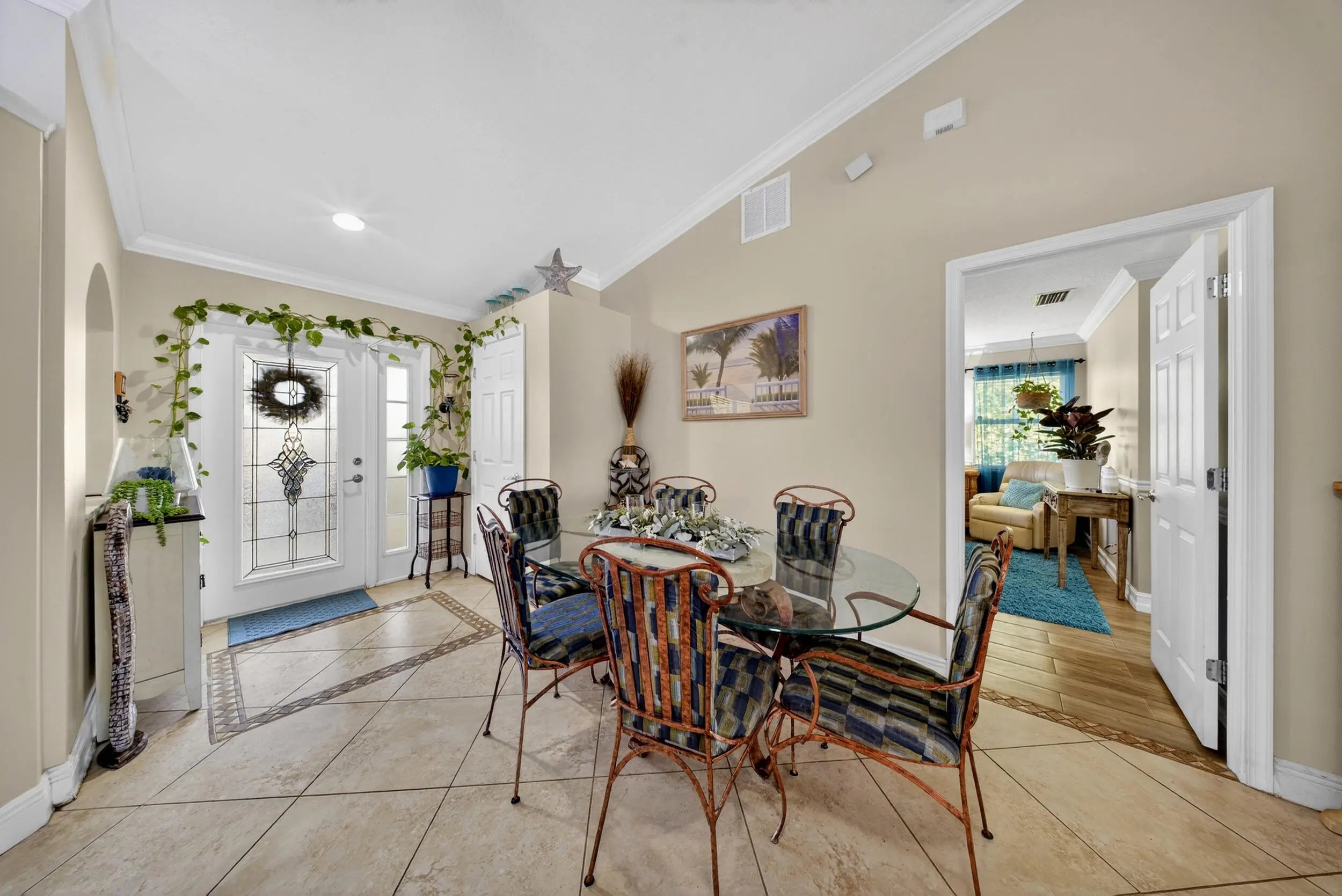 Charming and beautifully maintained Key West-style tropical home offering 3 bedrooms, 2 bathrooms, and an oversized 2-car garage. With 1,655 sq. ft. of living space and 2,568 total square feet, this home features an open, inviting layout designed for comfortable everyday living. Vaulted ceilings, crown molding, chair rails, and tile flooring throughout create a bright, cohesive space that's both stylish and easy to maintain. The spacious master bathroom has dual sinks, a separate shower, and a relaxing spa tub. Enjoy Florida's indoor-outdoor lifestyle on the tiled, screened-in back porch, or unwind on the covered front porch swing accented by a charming white fence railing that enhances the home's curb appeal. The fully fenced backyard, lined with lush clusia plants, offers exceptional privacy and includes a storage shed for added convenience. Recent upgrades provide peace of mind, including a brand-new roof (2024), A/C replacement (2022), newer appliances, fresh interior paint, and a new side entry door. Ideally located near I-95 and the Florida Turnpike for easy commuting, and just a few blocks from Peacock Park, soon to feature a new playground and walking trails opening this summer! Seller offering a $2,000 closing credit to Buyer to be applied toward backyard landscaping, allowing the new owner to customize the outdoor space.