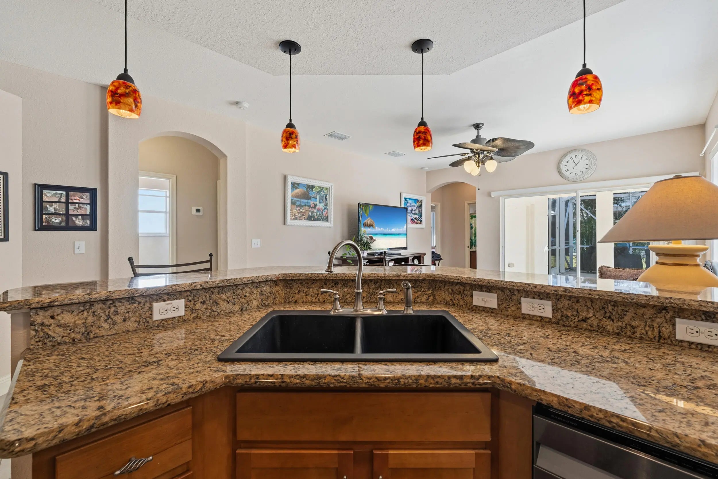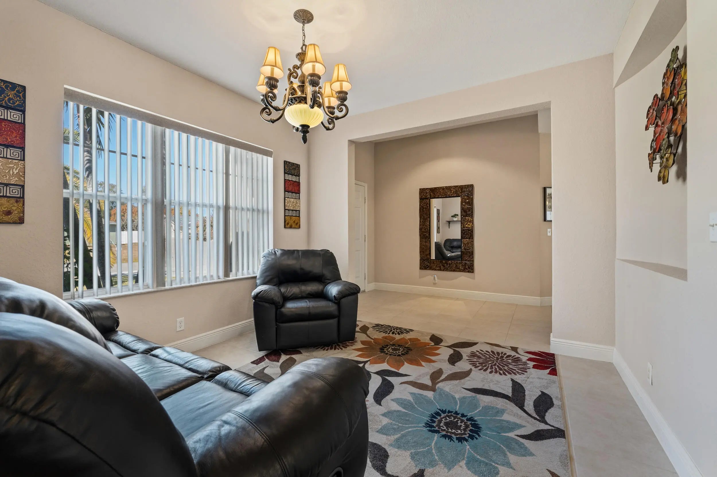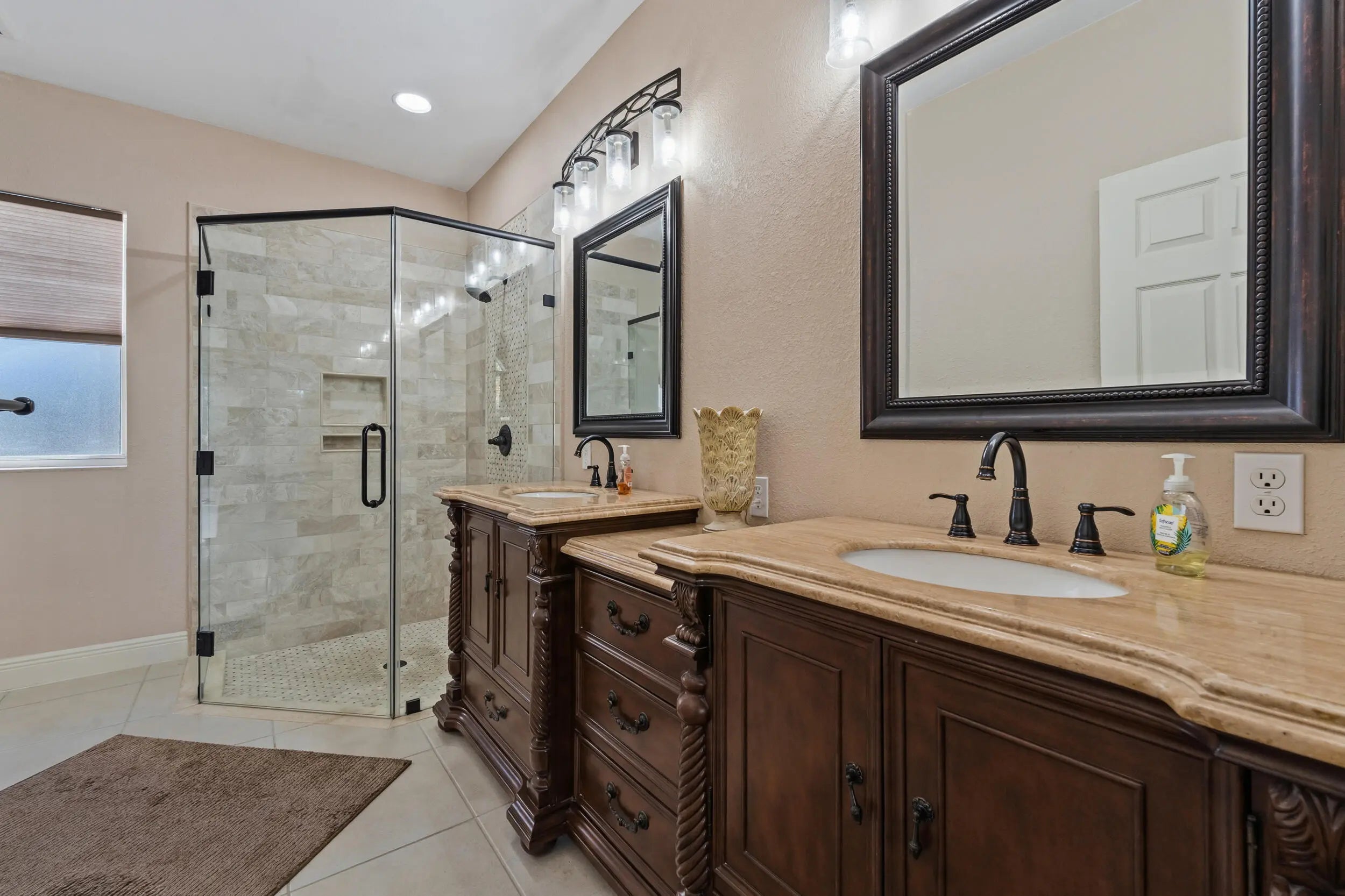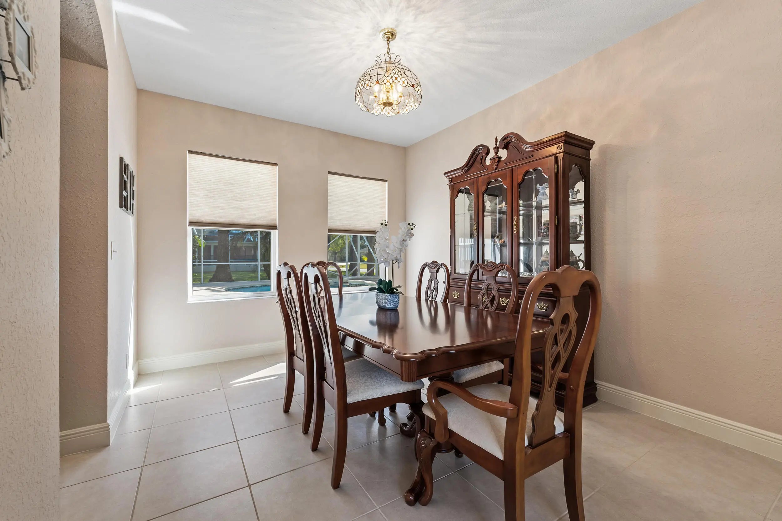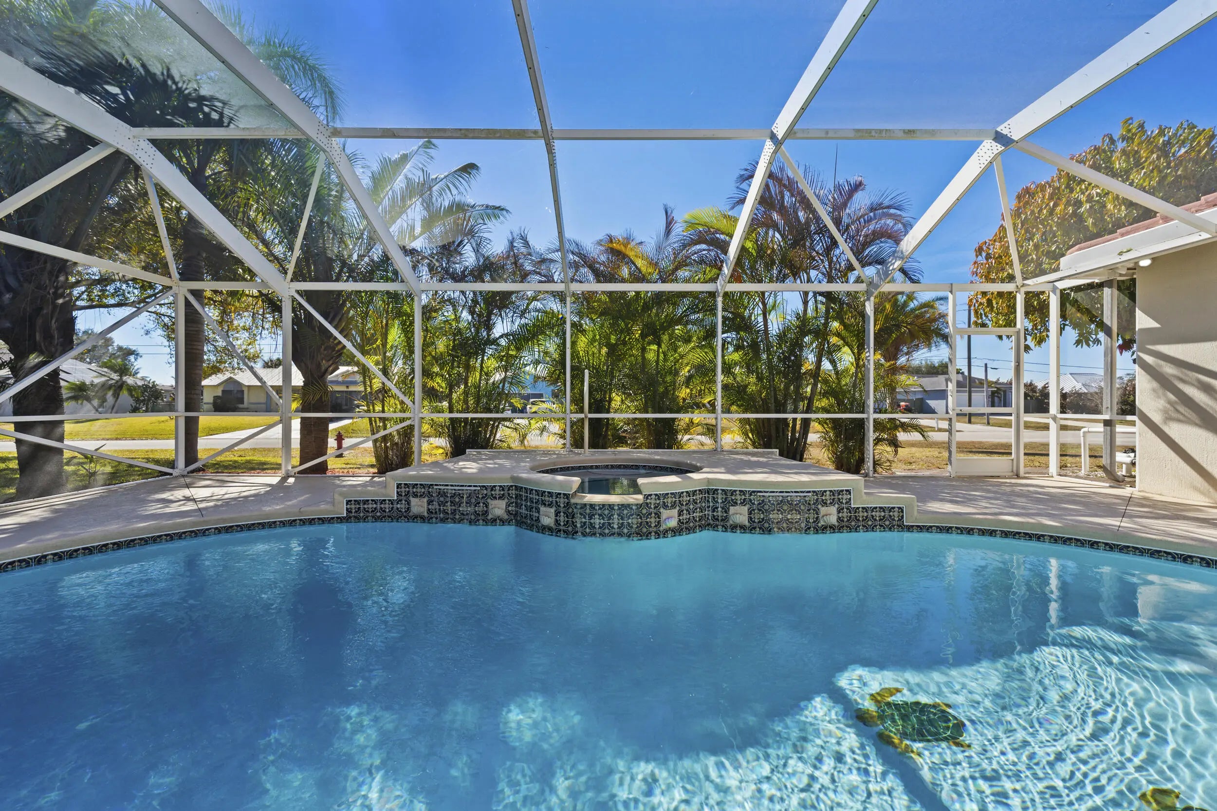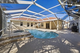 Impeccably maintained and thoughtfully updated, this stunning 4-bedroom, 3-bath, 2-car garage pool home sits on an oversized corner lot in a prime Port St. Lucie location. The backyard is a true showstopper, featuring a gorgeous heated saltwater pool and spa—perfect for entertaining, relaxing, and enjoying Florida living year-round—complete with a rescreened enclosure, extended rear patio awning, under-truss patio, and convenient cabana bath. Inside, the home offers a spacious foyer, formal living and dining rooms, and an oversized Florida/family room designed for comfortable everyday living and gatherings. The luxurious primary suite showcases elegant herringbone tile flooring, a walk-in closet, and a spa-inspired bathroom with glass shower enclosure, marble countertops, double vanities. The kitchen is beautifully appointed with Samsung appliances, an updated backsplash, and modern pendant lighting. Major upgrades provide exceptional peace of mind, including a brand-new barrel tile roof (2025), new A/C unit (2024), upgraded 200-amp electrical service (2024), and a new water heater (2024). Additional highlights include a 20' x 51' concrete driveway with new culvert, hurricane panels, hard-wired Bose speakers, security and Ring cameras, a wired shed, and underground neighborhood utilities. Ideally located near shopping, major groceries, Tradition Square, Cleveland Clinic, I-95, St. Lucie West, Mets Stadium, and the beaches, this home offers the perfect blend of luxury, comfort, and location, an ideal setting for the entire family.