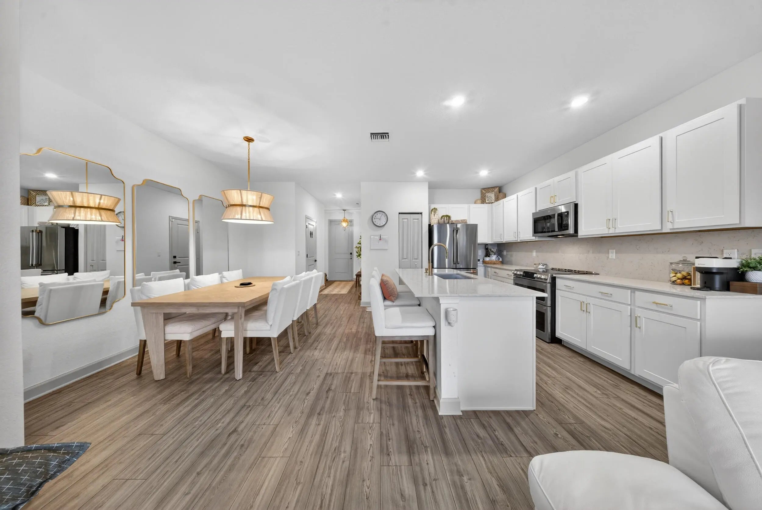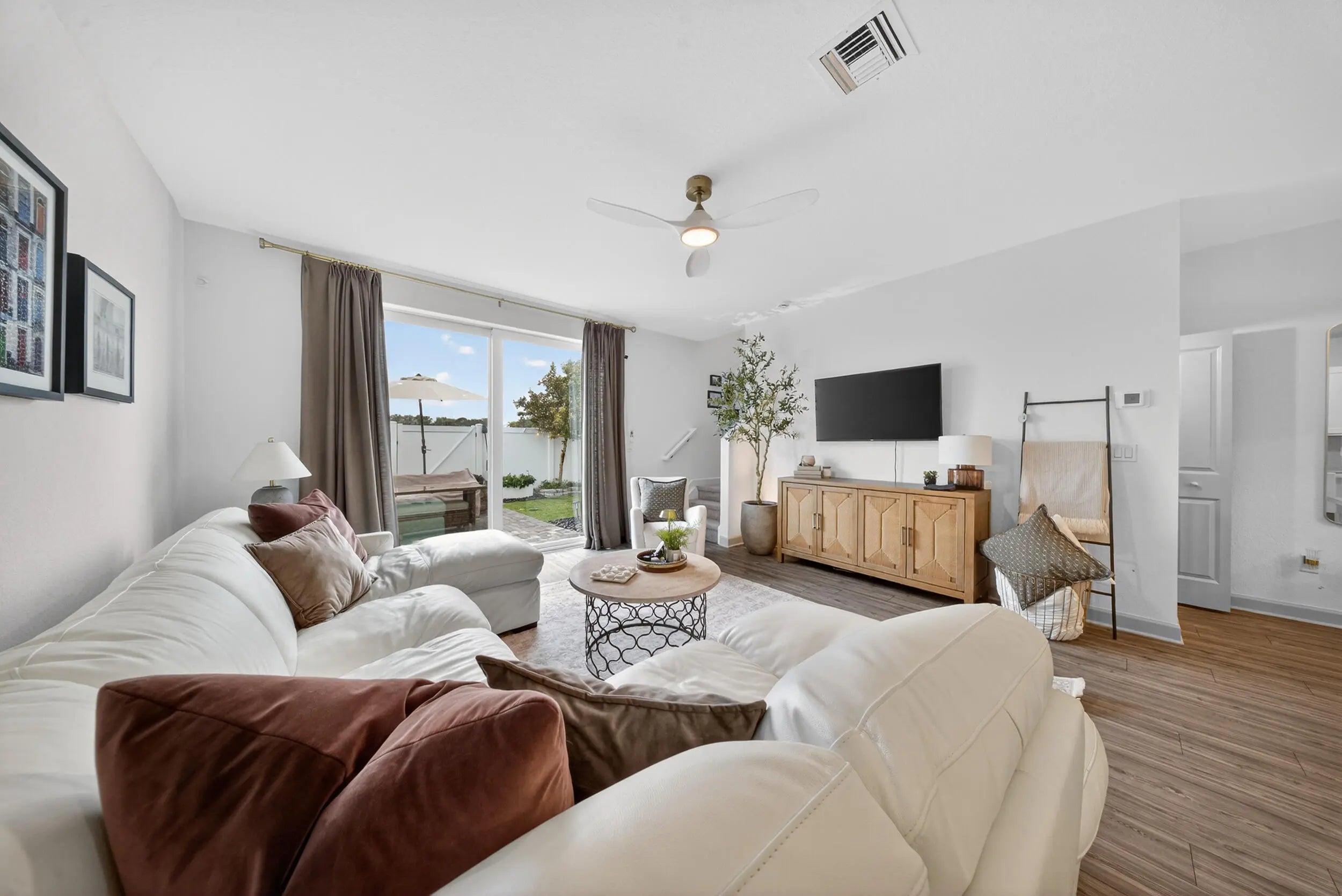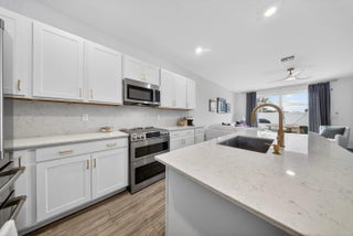 Welcome to this beautifully maintained 2024 construction townhouse located in the highly desirable Veranda Landing community in Port St. Lucie. This 3-bedroom, 2.5-bath home offers 1,632 square feet of living space and a 1-car garage, blending modern style with everyday functionality. The home features a sleek, modern kitchen with upgraded GE Café appliances, including an induction cooktop, quartz countertops and full backsplash, stylish cabinetry with under cabinet lighting, and an open-concept layout ideal for entertaining. Spacious living and dining areas flow seamlessly to an extended paver patio, creating an inviting indoor-outdoor living experience. Enjoy a fenced and meticulously landscaped backyard, while the second floor offers peaceful canal views that provide privacy and a relaxing backdrop. Upstairs, the well-appointed bedrooms offer versatility, with the primary suite featuring a large walk-in closet and spa-style shower. Convenient upstairs laundry adds to the thoughtful design. Additional highlights include impact windows, a guest half bath, low HOA fees, and access to a gated community with a resort-style pool. Ideally located less than one mile from Florida's Turnpike and adjacent to a brand-new hospital, this home is also just minutes from parks, shopping, dining, and downtown Stuart. This move-in-ready home delivers the best of modern Florida living in one of Port St. Lucie's most sought-after communities. Schedule your private showing and experience it for yourself.